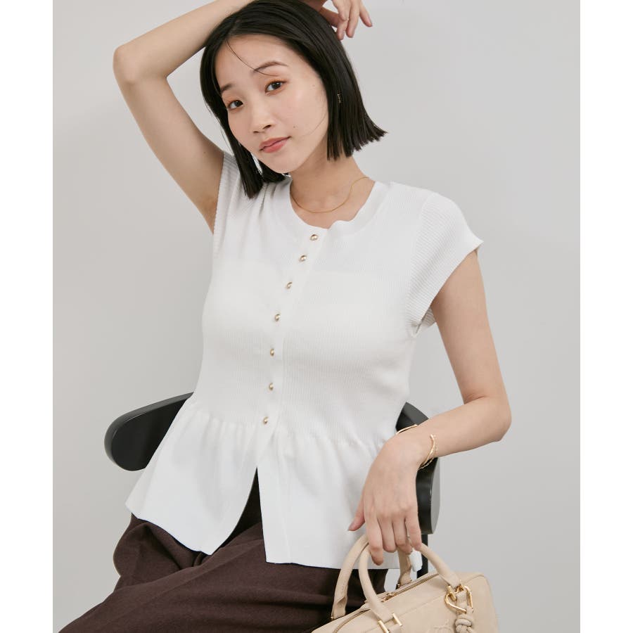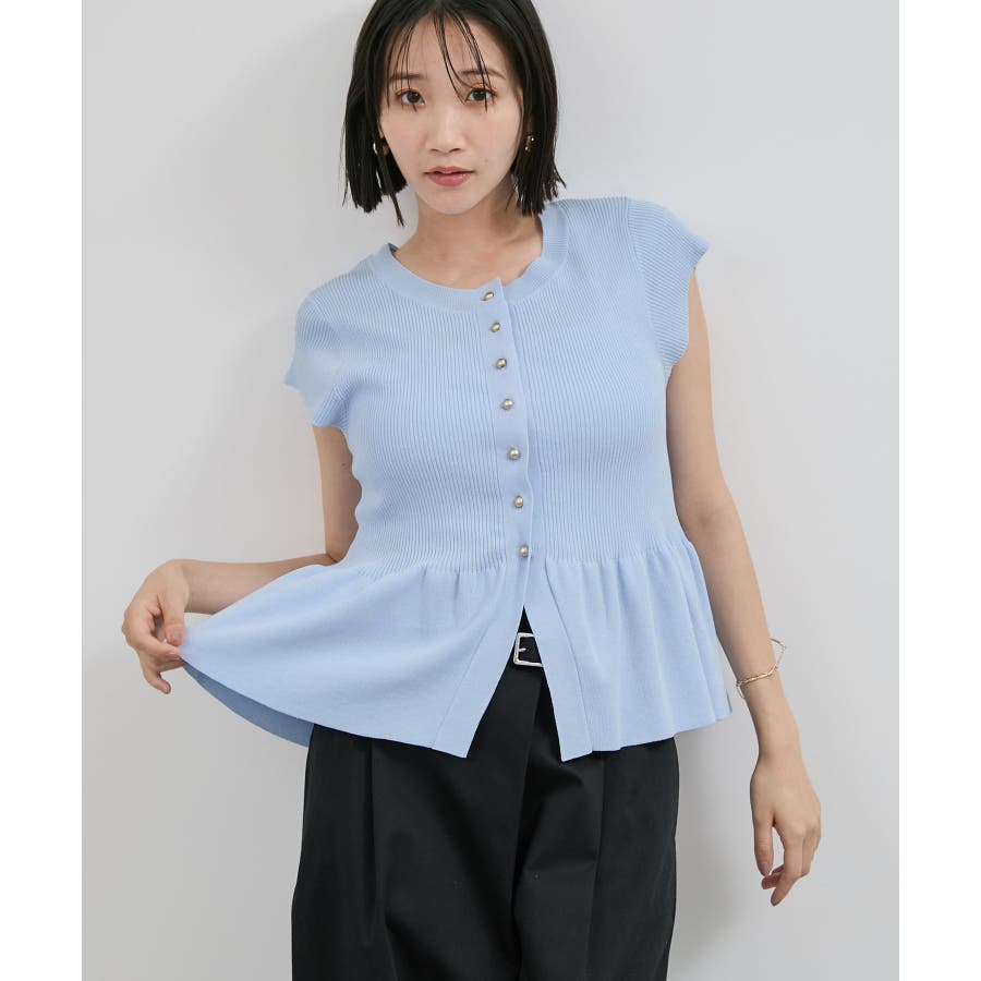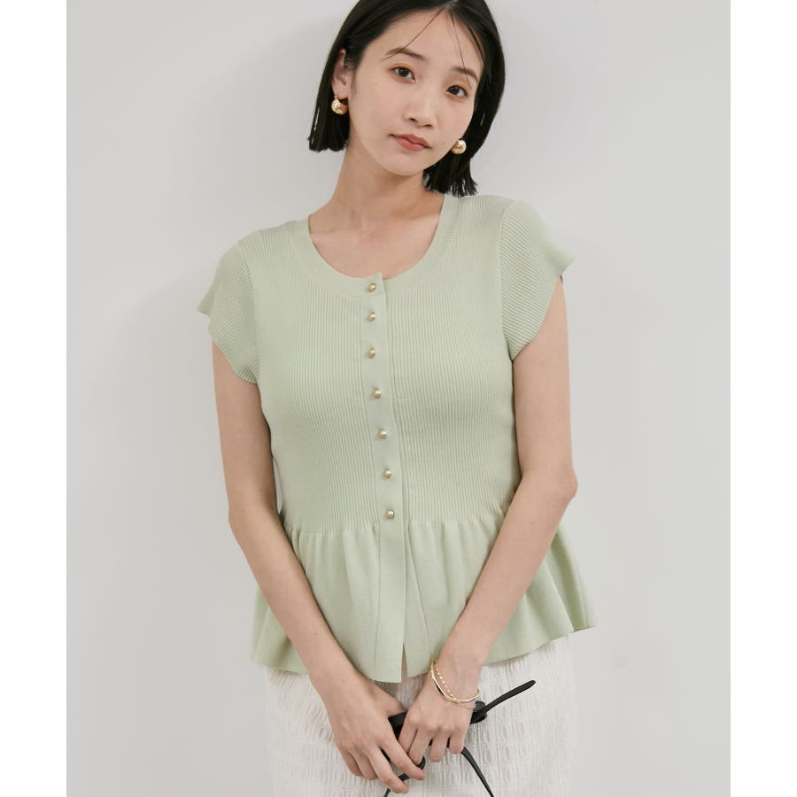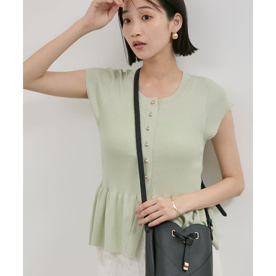 【アンチピリング/洗える】美SMARTショートスリーブペプラムニット
