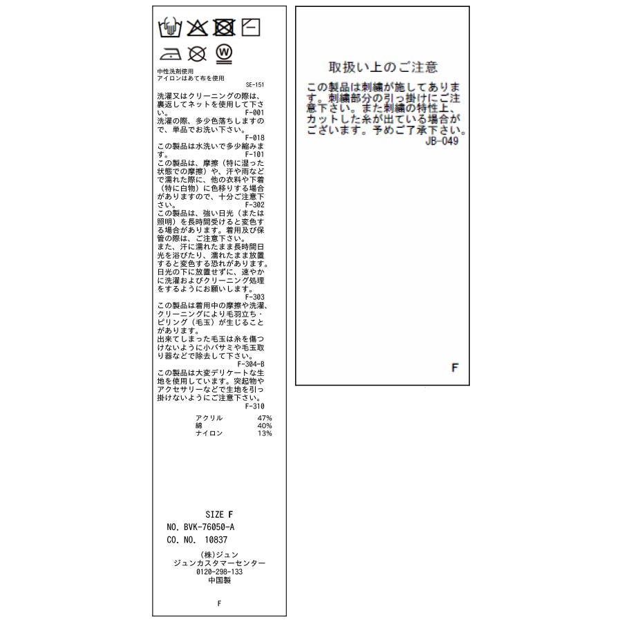 F:着丈48 肩幅37 バスト82 そで丈57 その他(アームホール)40 (袖口)18