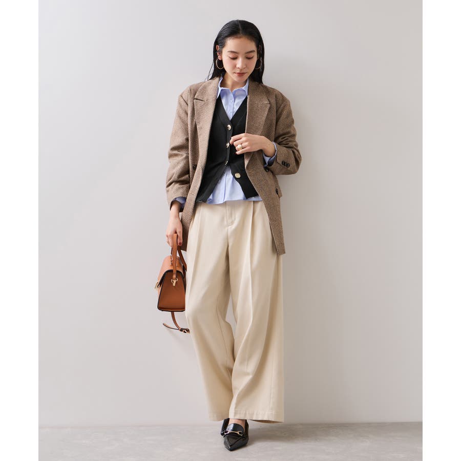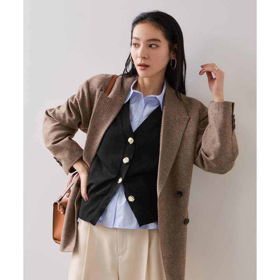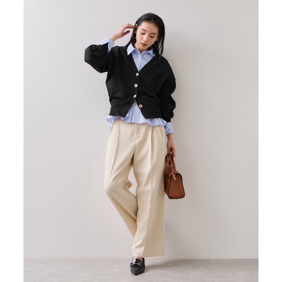 通勤にはテーパードパンツやフレアスカートと合わせてきれいめに、休日はデニムやワイドパンツでカジュアルダウンもおすすめ。インナーにタートルやブラウスを合わせて、秋冬らしいレイヤードスタイルも楽しめます。ボタンを閉めて1枚で着ても、羽織として開けてもサマになるデザインなので、気温やシーンに合わせてアレンジ自在です。