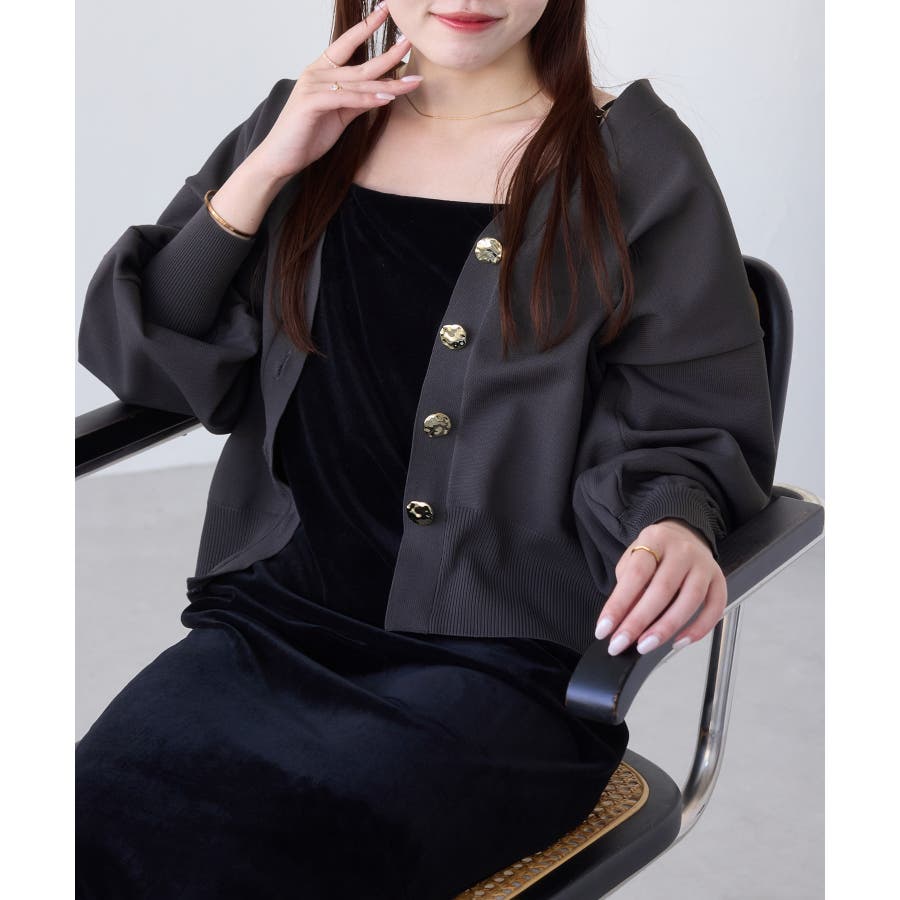 ・ニュアンス立体感のあるゴールドボタンが上品な華やかさをプラス。