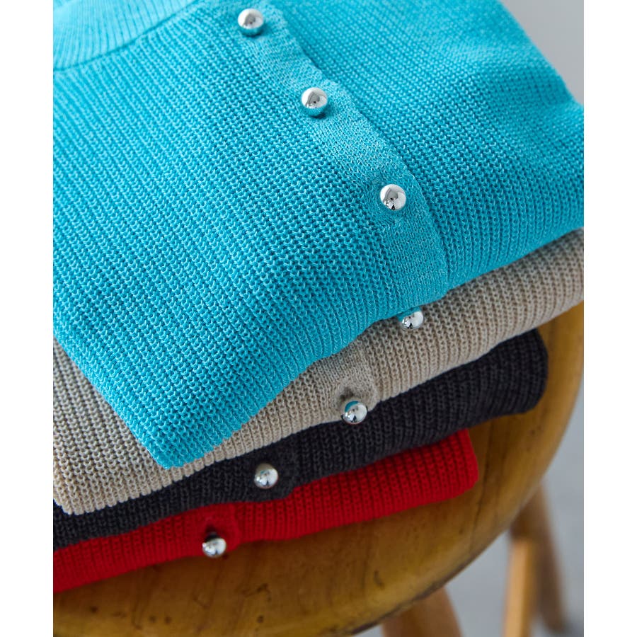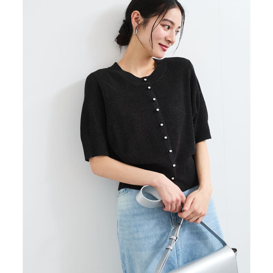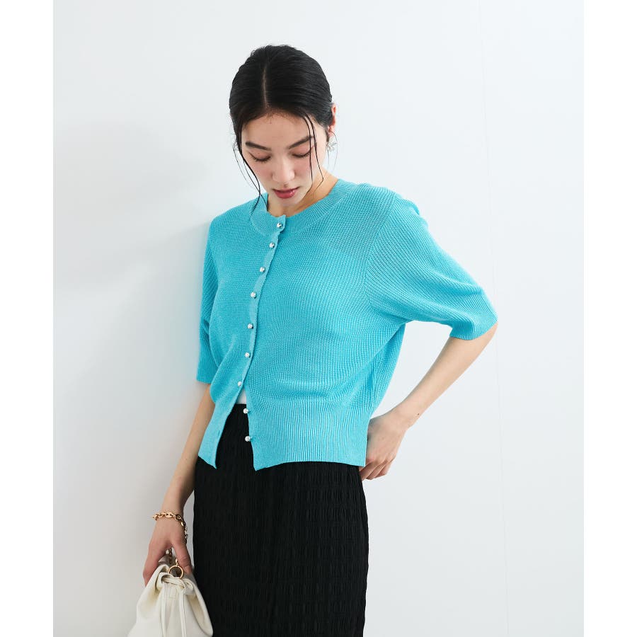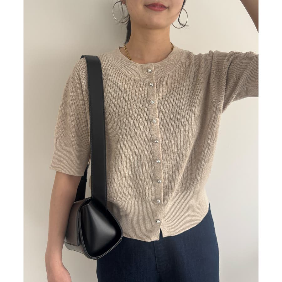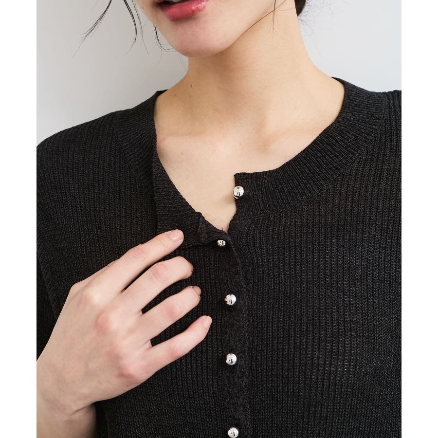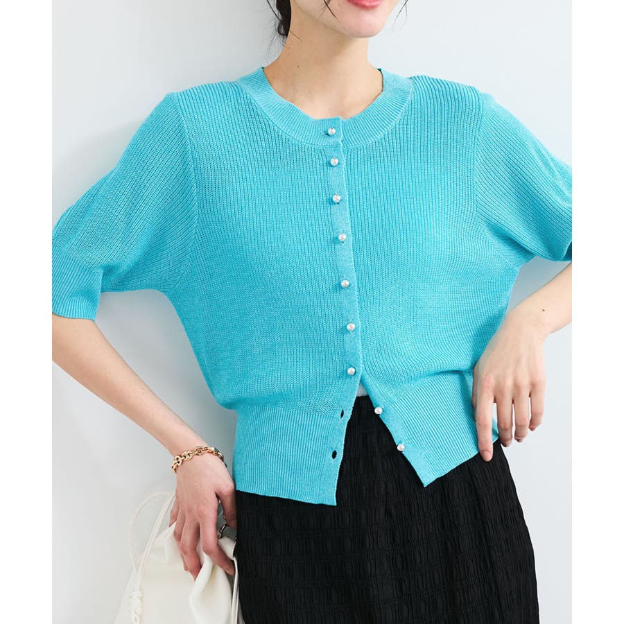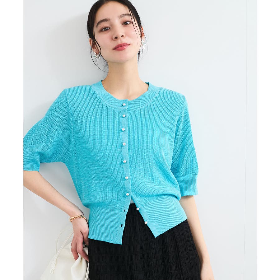 ・艶っとした多釦がスタイリングのアクセントになり、レディライクにもカジュアルな印象に着こなせるサマーニットカーディガン。