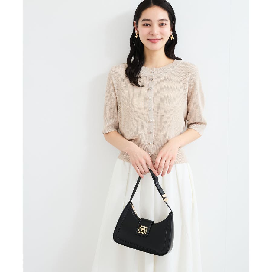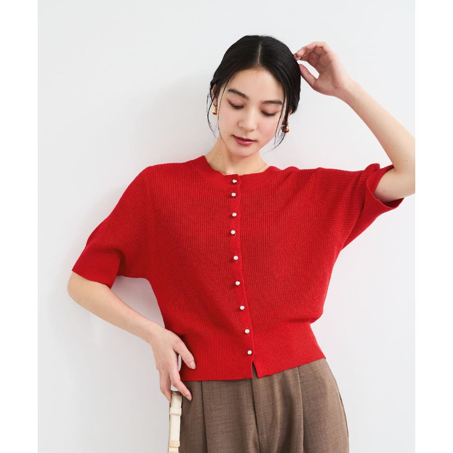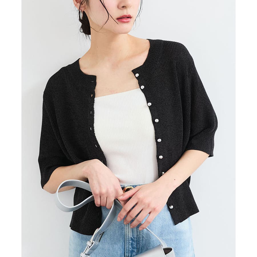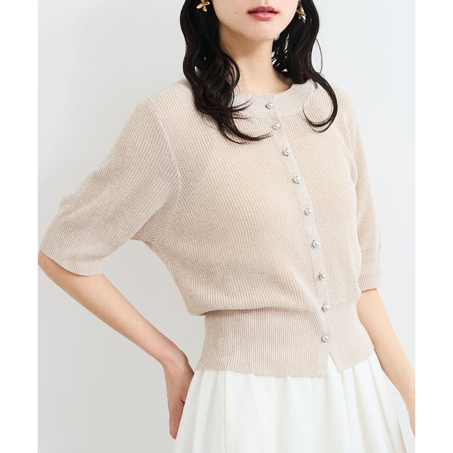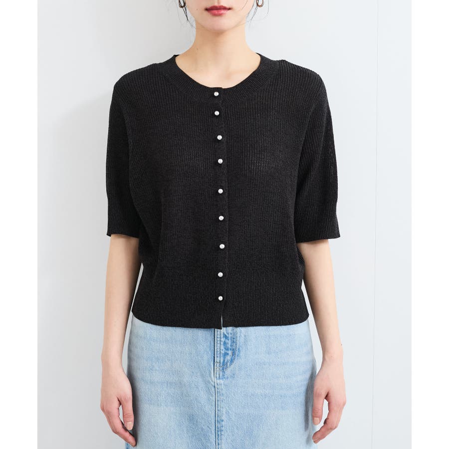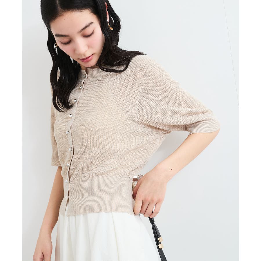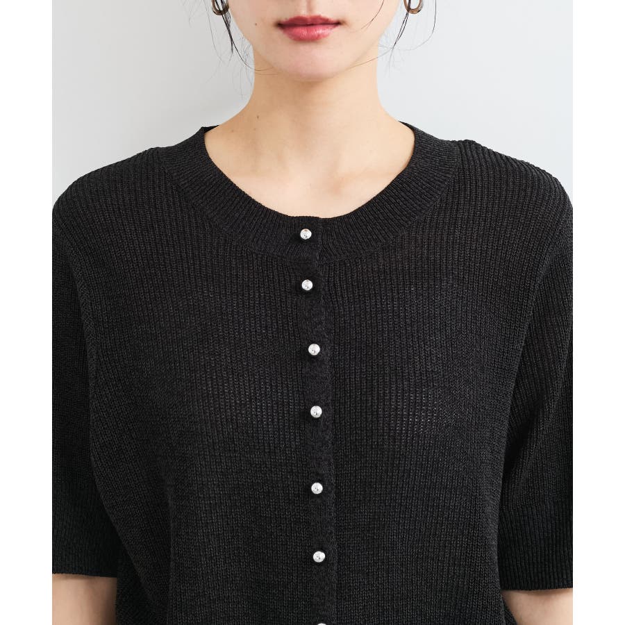 ・艶っとした多釦がスタイリングのアクセントになり、レディライクにもカジュアルな印象に着こなせるサマーニットカーディガン。