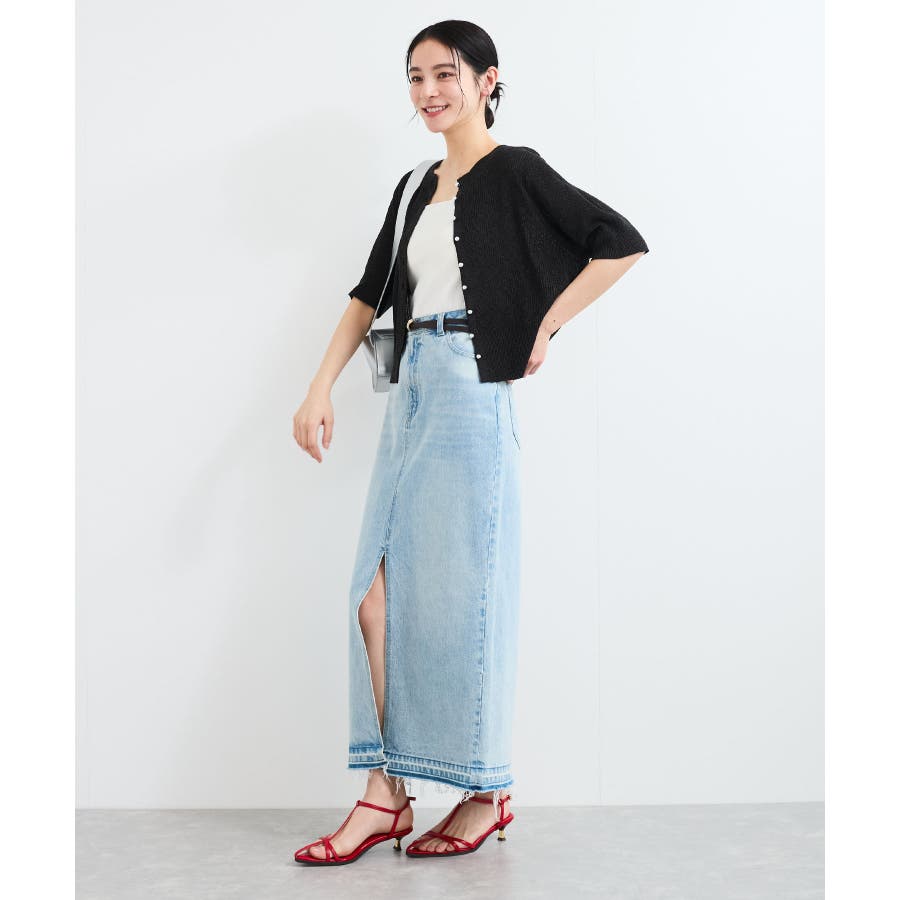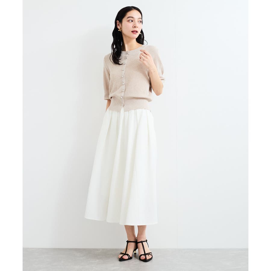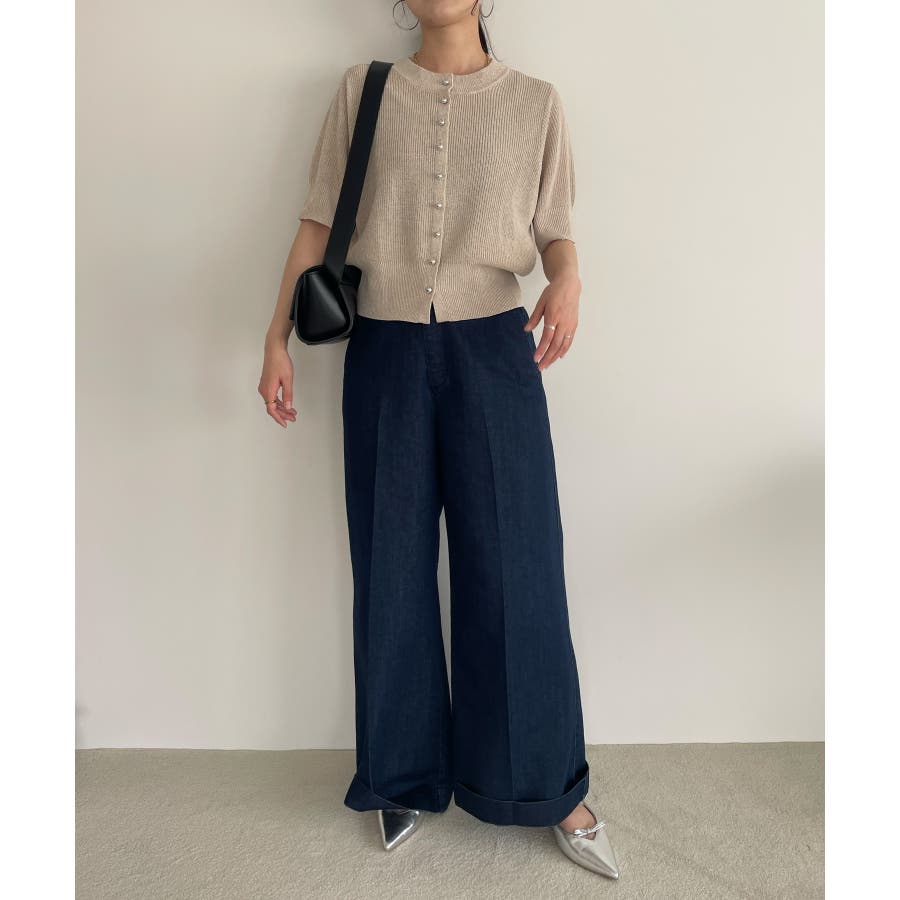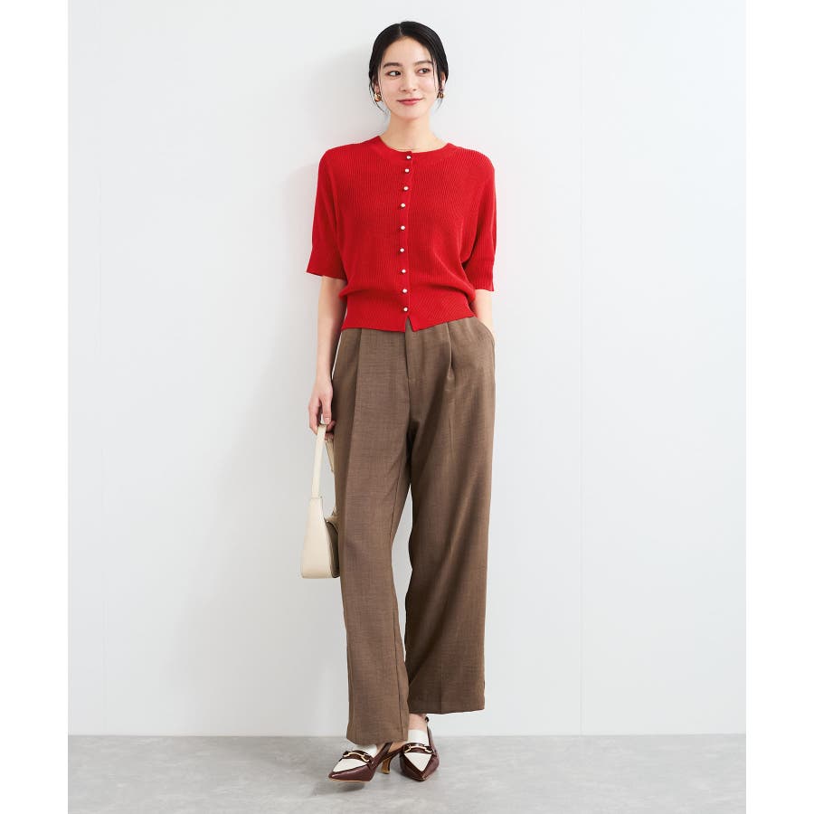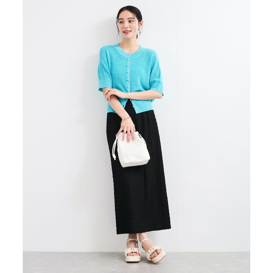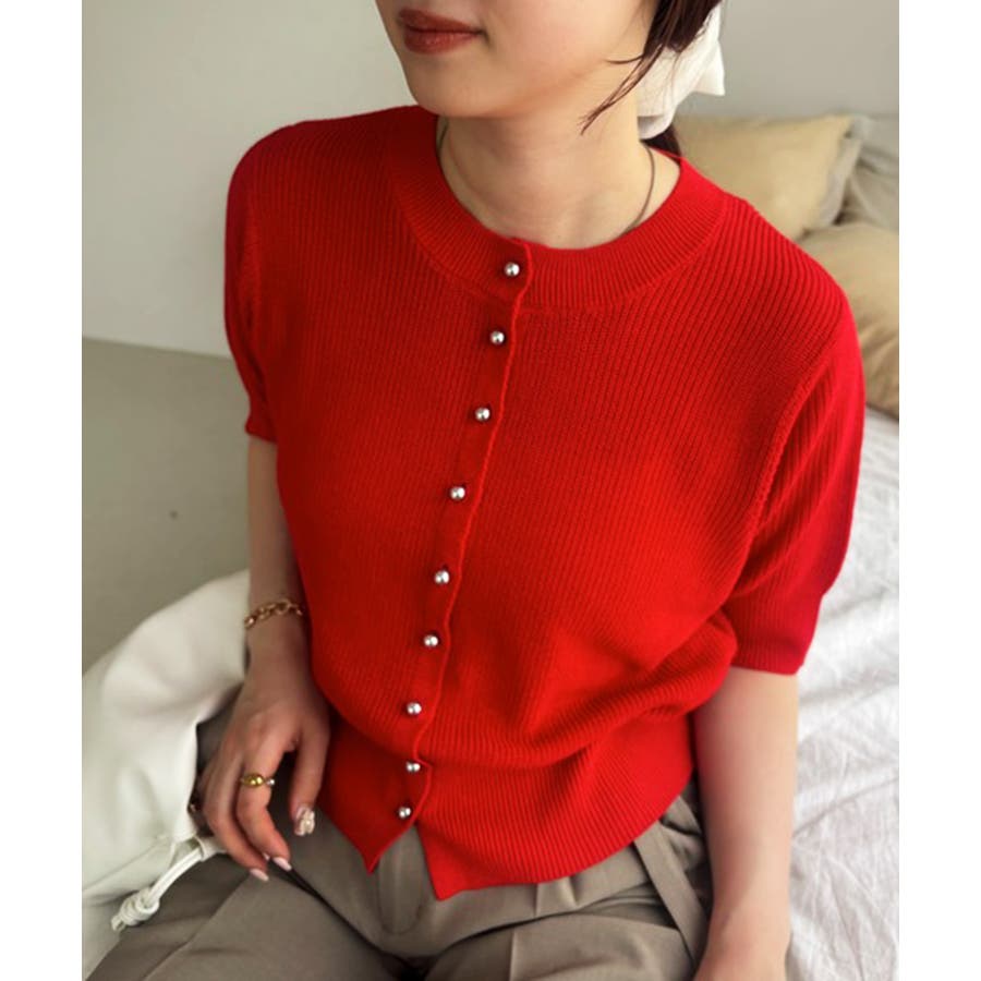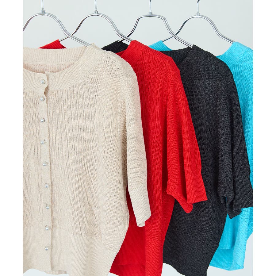 ・艶っとした多釦がスタイリングのアクセントになり、レディライクにもカジュアルな印象に着こなせるサマーニットカーディガン。