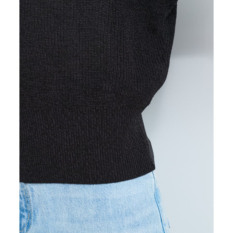 ・やや透け感がある軽やかな着心地のニット素材で、季節の変わり目や暑い時期にも着やすいアイテム。
