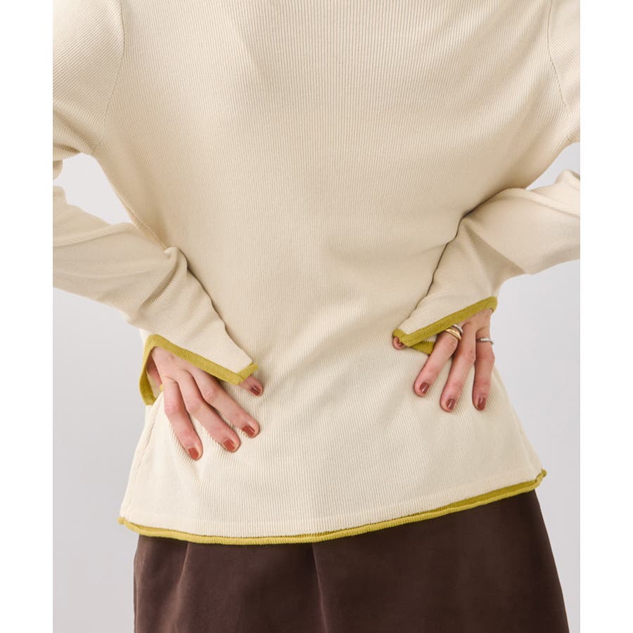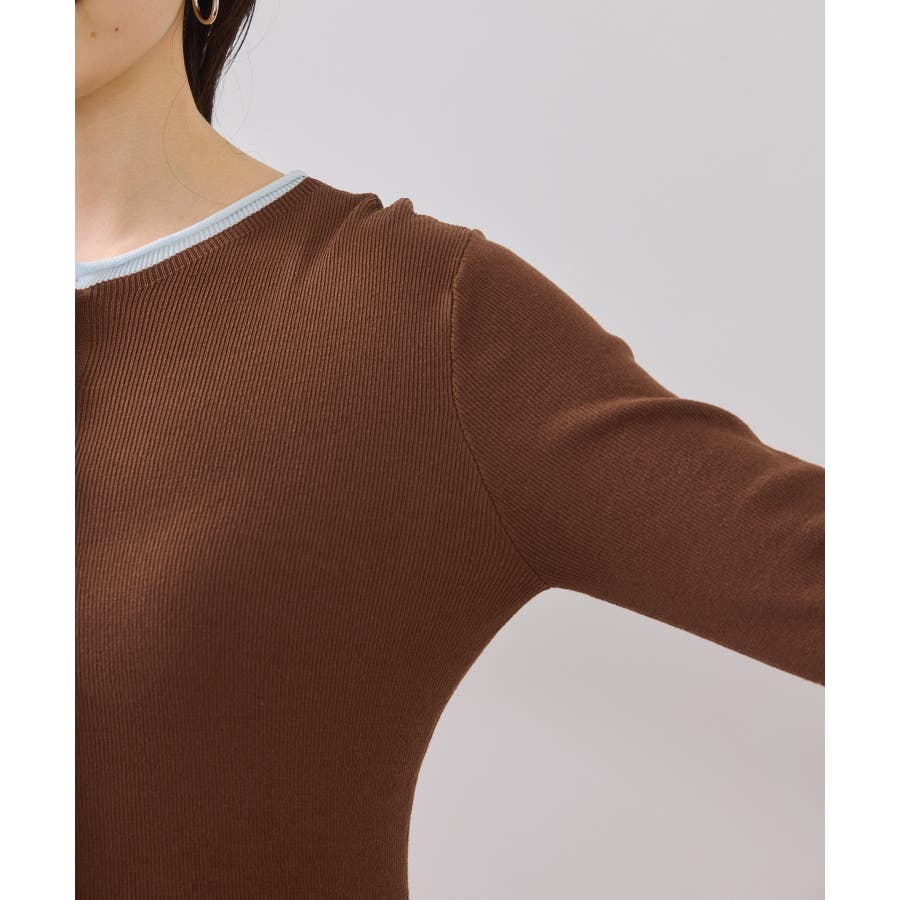 しっとりと肌に馴染む、柔らかく伸縮性に富んだリブニット素材を使用。優しい肌あたりでストレスフリーな着心地。