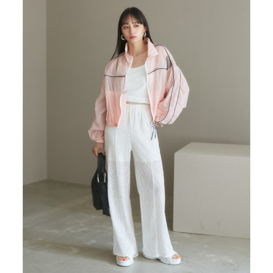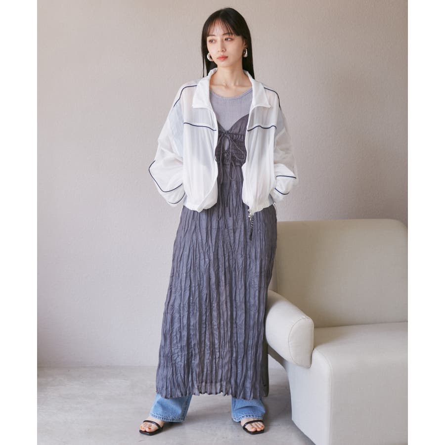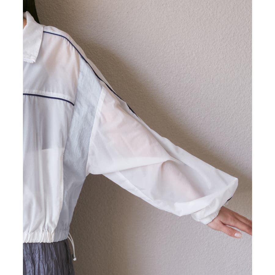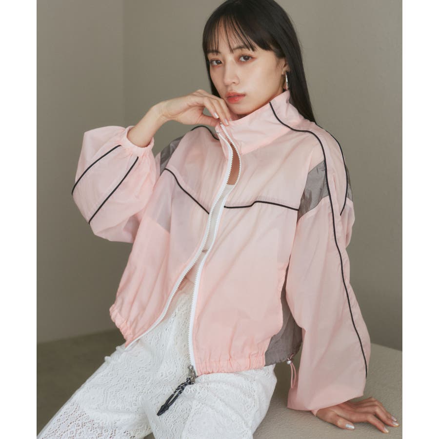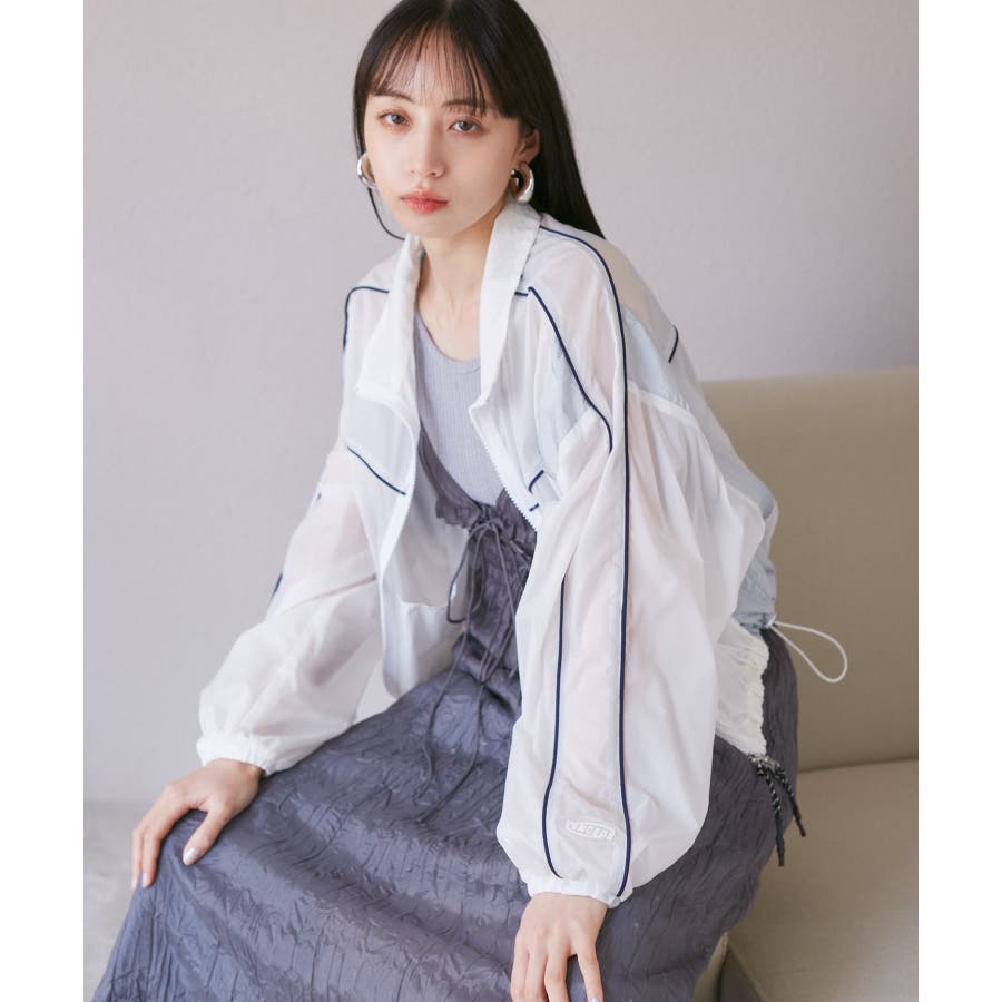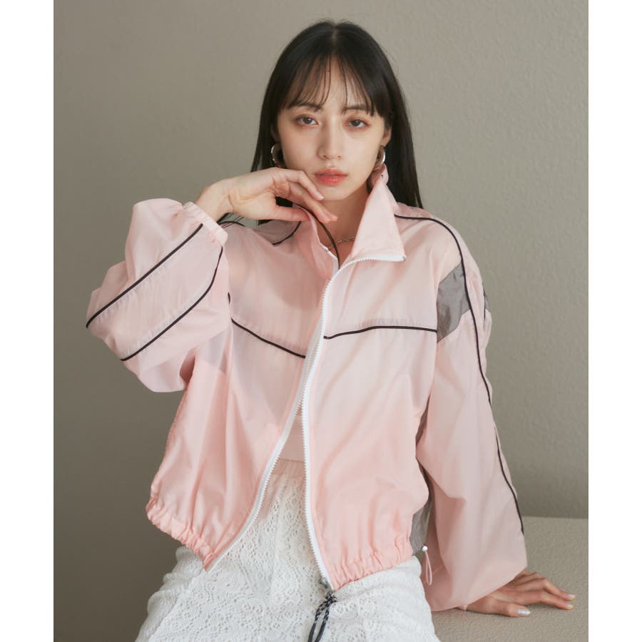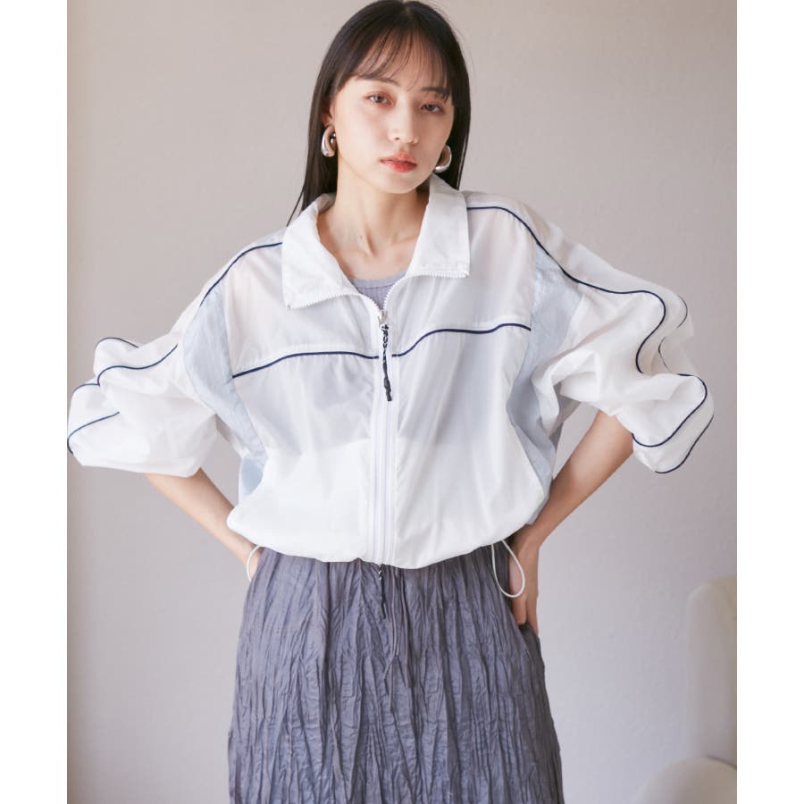 ◆2024春夏◆ 【デザイン・シルエット】 トレンドのトラックブルゾンがシアー素材で登場! 裾を絞ってコンパクトにもまとまる初夏に向けて軽めな羽織アイテム。
