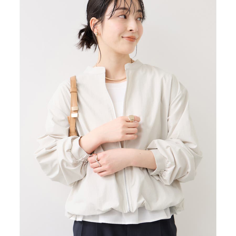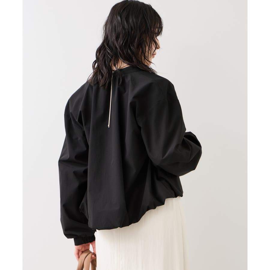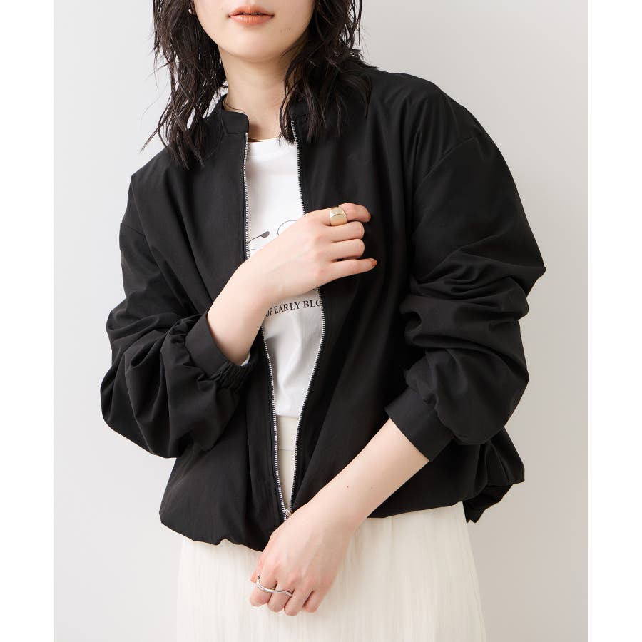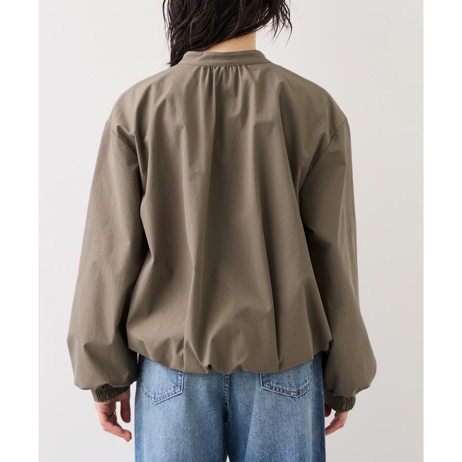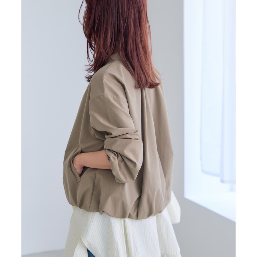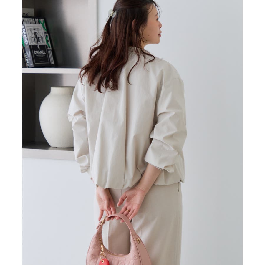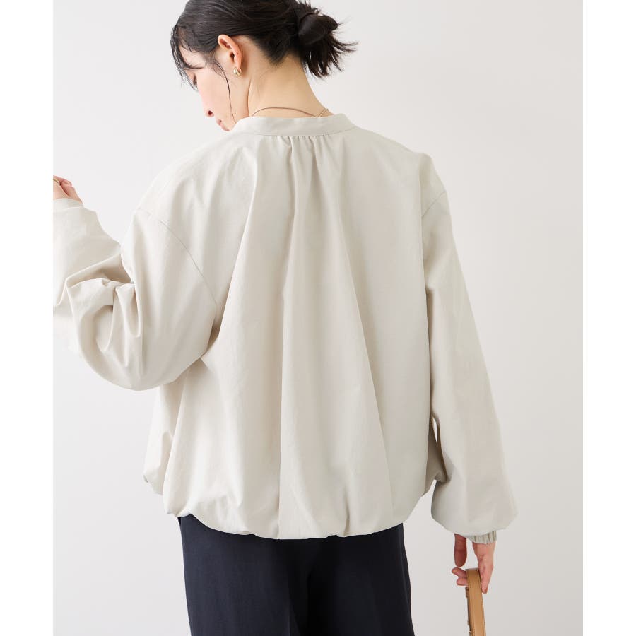 気温の変化が大きく体温調整が難しい春先から長くご着用いただけます。軽く、表面感のある素材感でしわを気にせず出先でバッグにたたんで気軽に持ち運べるのも嬉しいポイント。たっぷりとボリュームのあるバルーンシルエットでボトムやシーン選ばず、オンオフで着まわせるアイテムです。日差しが気になる時期の羽織としても◎袖口カフスは後ろ側をゴム仕様にしているのでたくし上げることもできます。