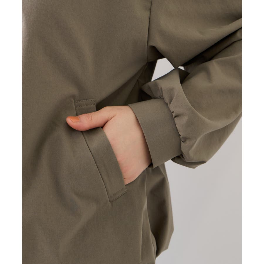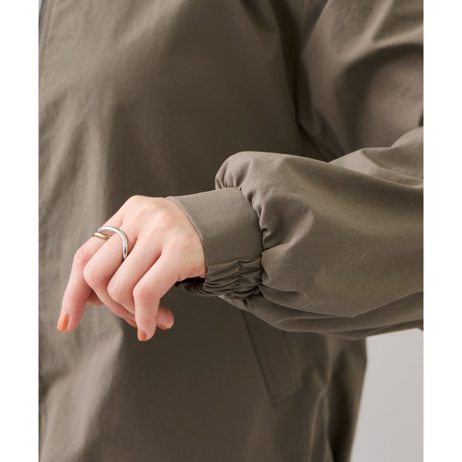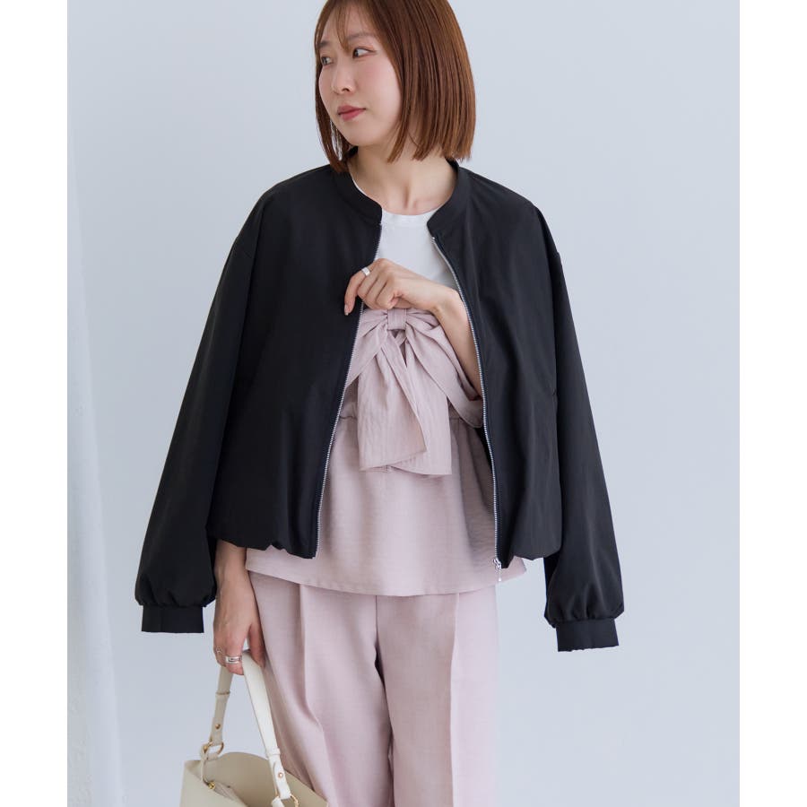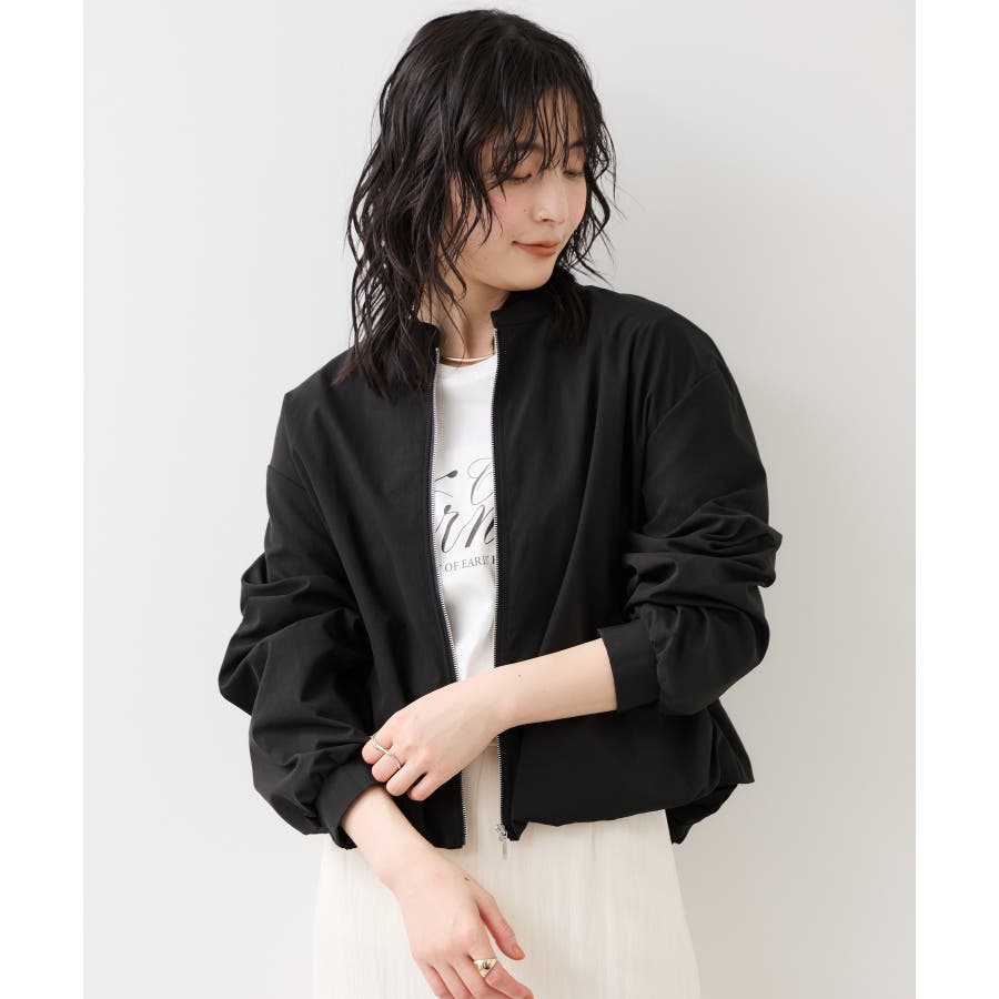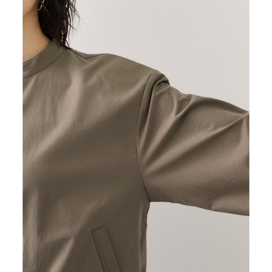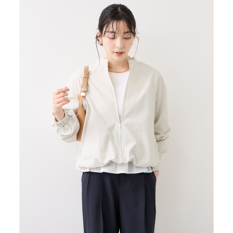 気温の変化が大きく体温調整が難しい春先から長くご着用いただけます。軽く、表面感のある素材感でしわを気にせず出先でバッグにたたんで気軽に持ち運べるのも嬉しいポイント。たっぷりとボリュームのあるバルーンシルエットでボトムやシーン選ばず、オンオフで着まわせるアイテムです。日差しが気になる時期の羽織としても◎袖口カフスは後ろ側をゴム仕様にしているのでたくし上げることもできます。
