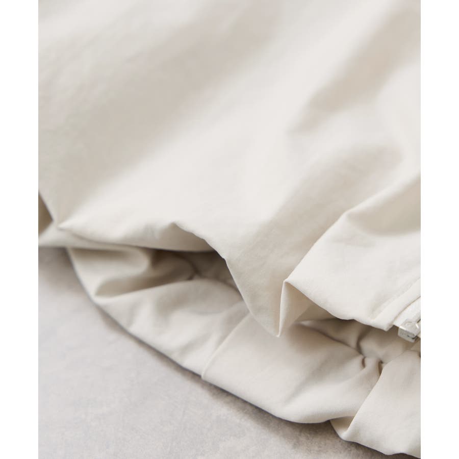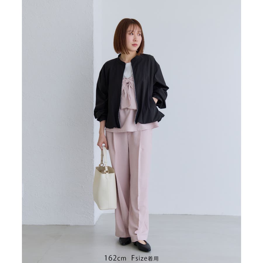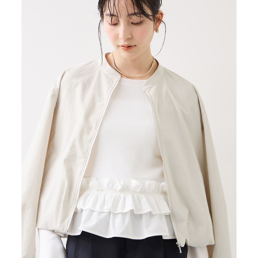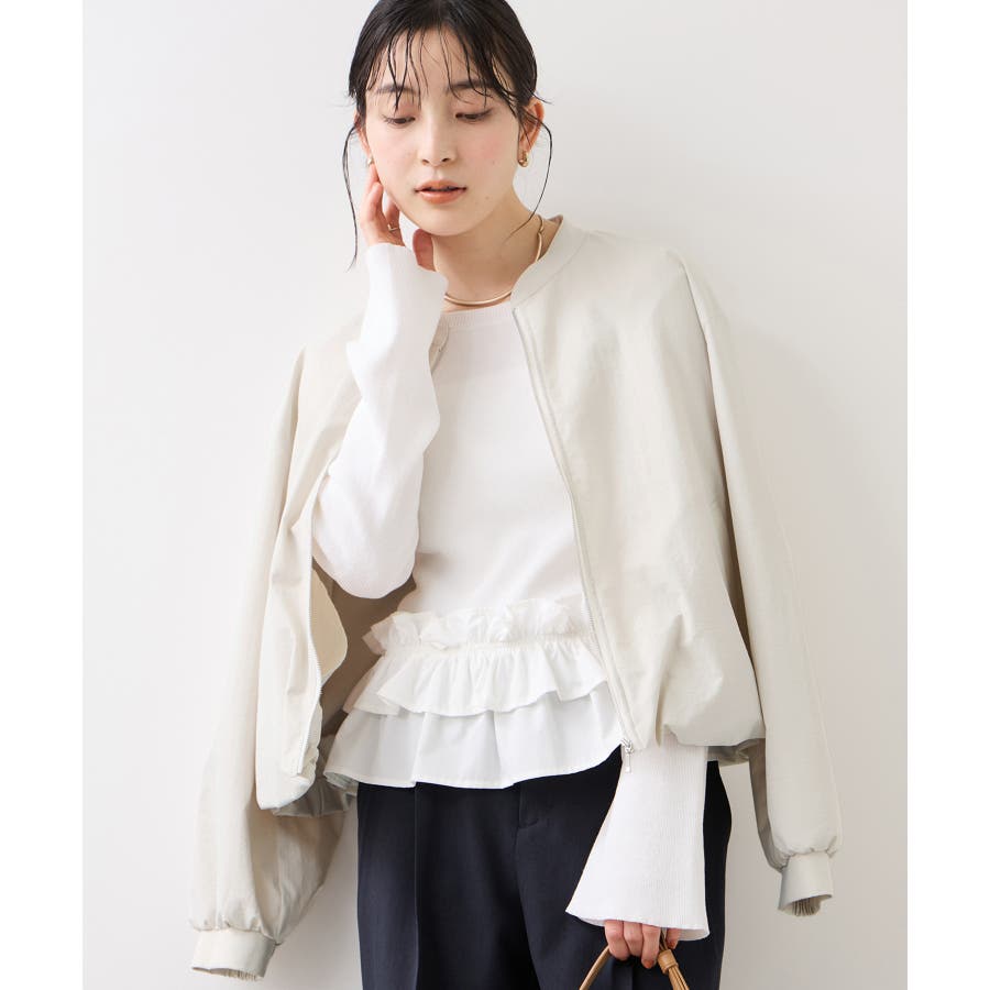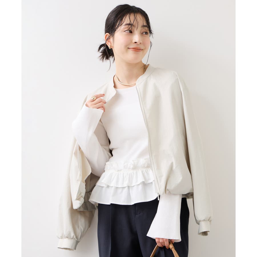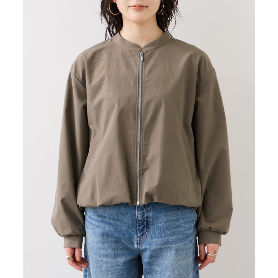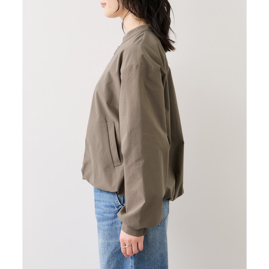 気温の変化が大きく体温調整が難しい春先から長くご着用いただけます。軽く、表面感のある素材感でしわを気にせず出先でバッグにたたんで気軽に持ち運べるのも嬉しいポイント。たっぷりとボリュームのあるバルーンシルエットでボトムやシーン選ばず、オンオフで着まわせるアイテムです。日差しが気になる時期の羽織としても◎袖口カフスは後ろ側をゴム仕様にしているのでたくし上げることもできます。