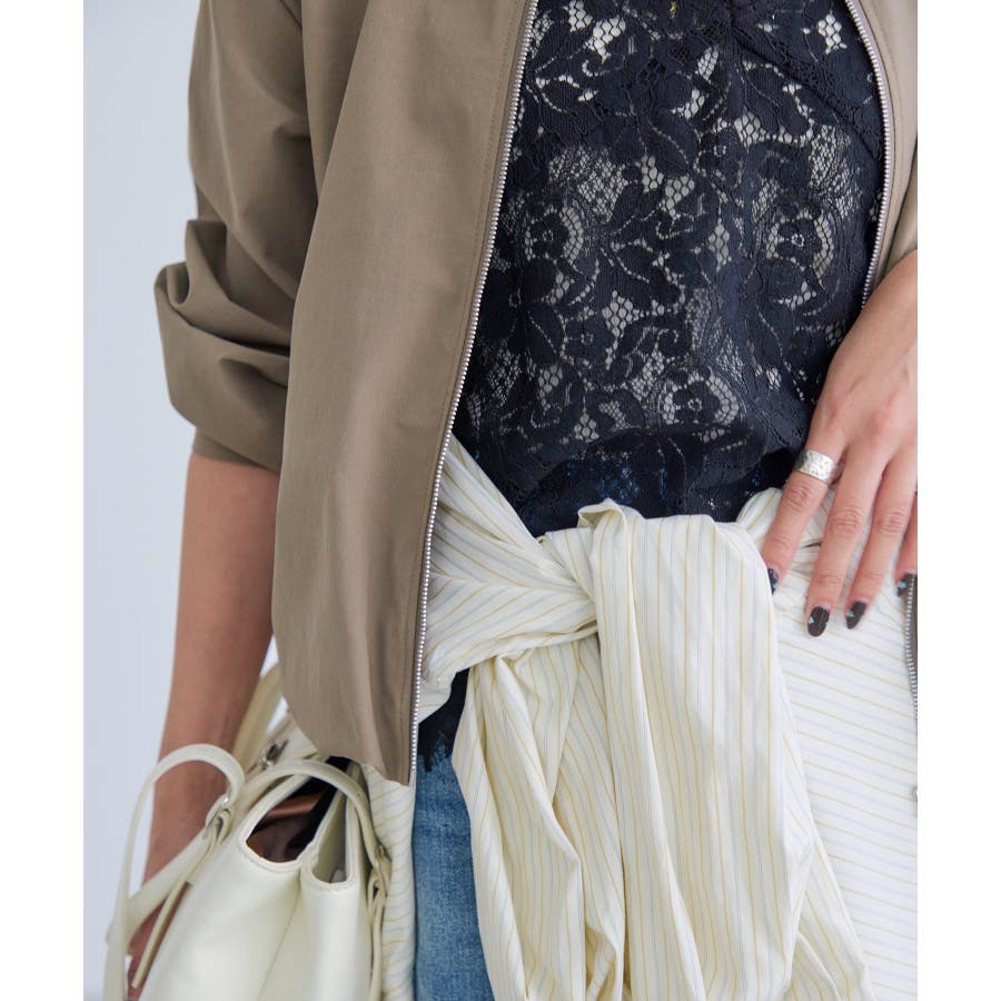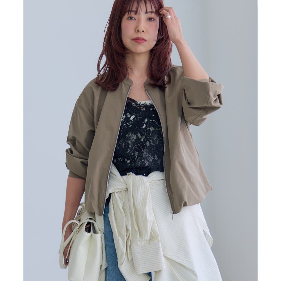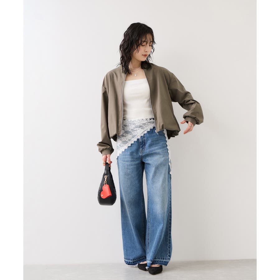 トレンドのレース素材をスパイスに一辺倒になりやすいブルゾンのスタイリングを女性らしくアップデートするのがおすすめです!