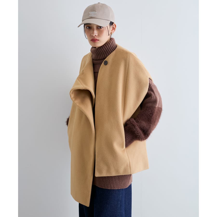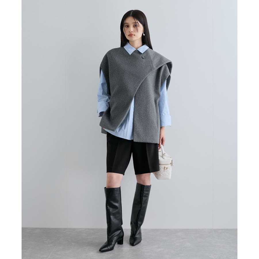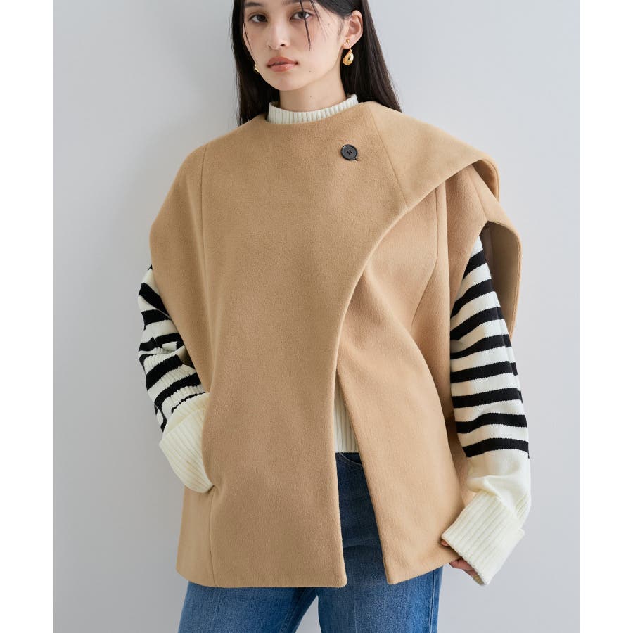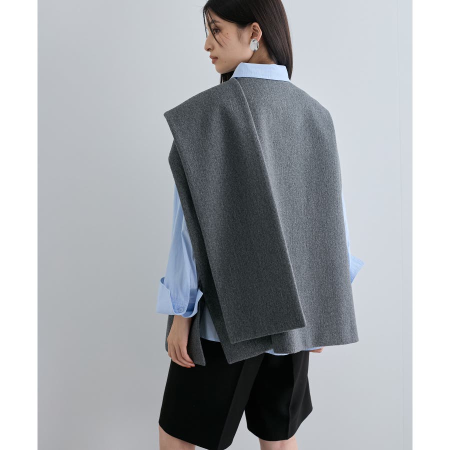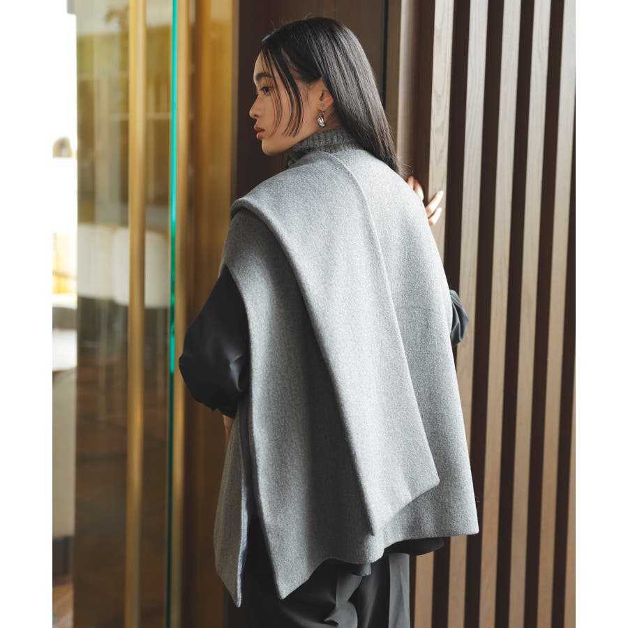 ◆2024-25秋冬◆ 【デザイン・シルエット】 トレンドアイテム!!ウール見えのマフラーみたいに巻けるラペルのポンチョベスト