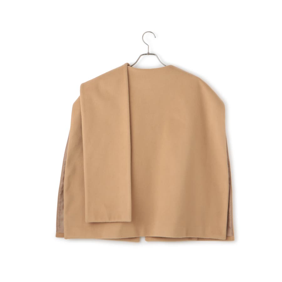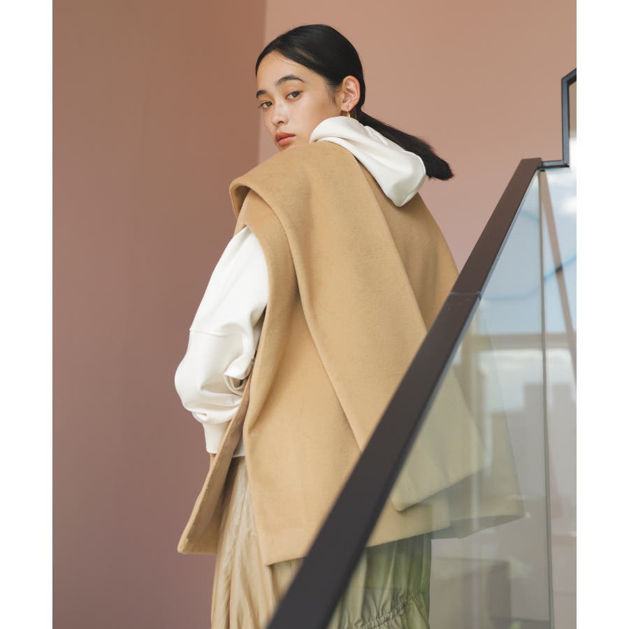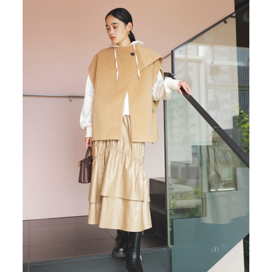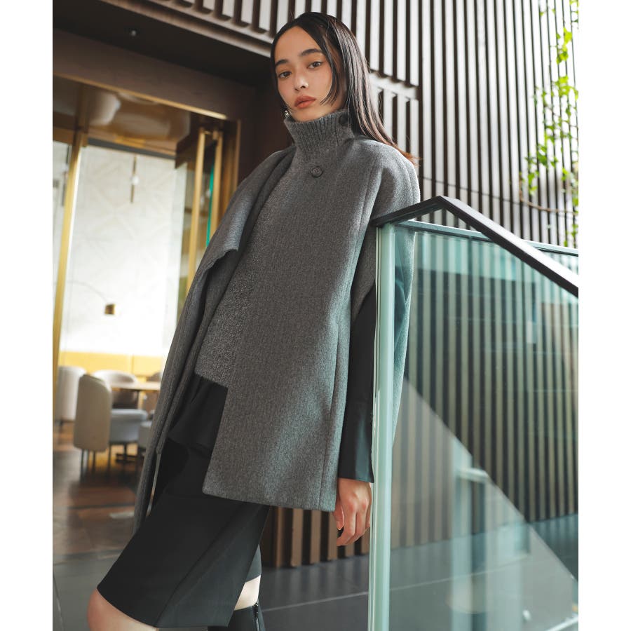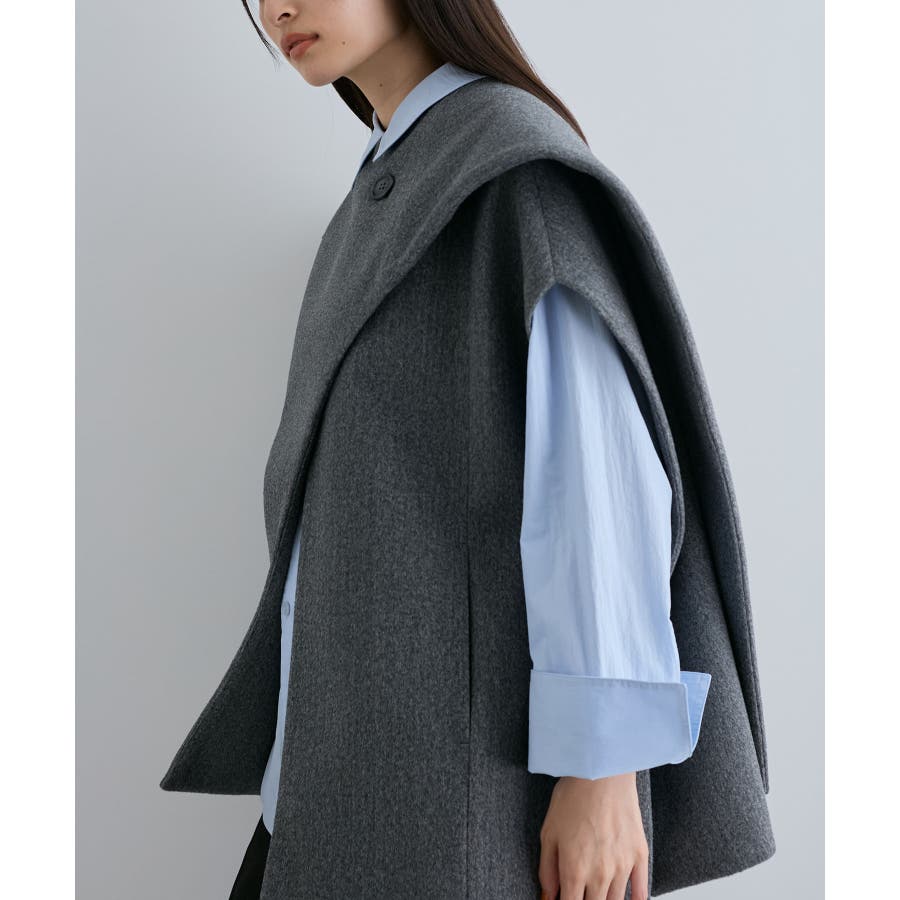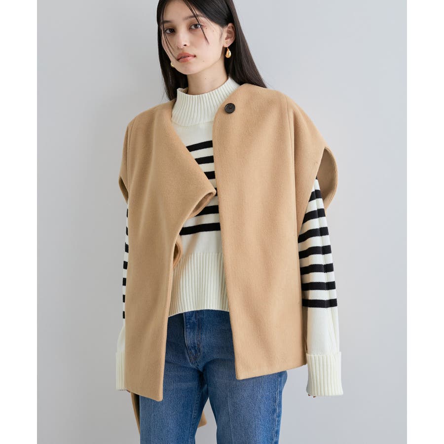 ◆2024-25秋冬◆ 【デザイン・シルエット】 トレンドアイテム!!ウール見えのマフラーみたいに巻けるラペルのポンチョベスト