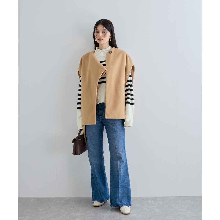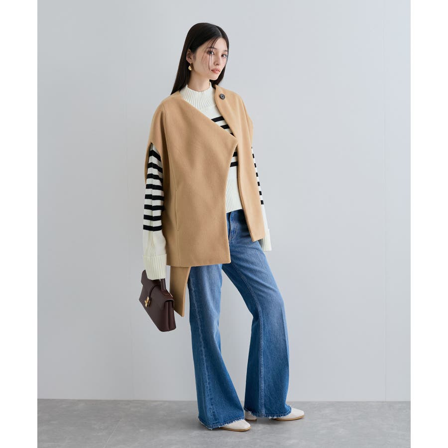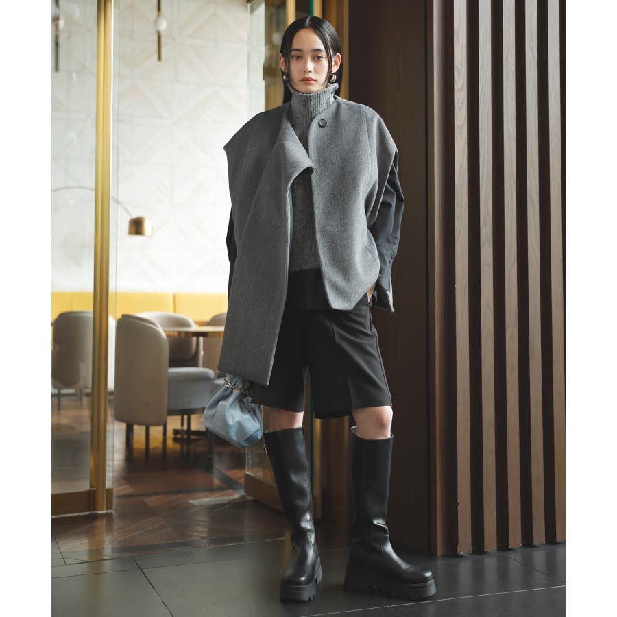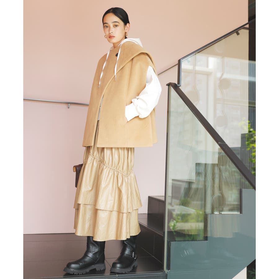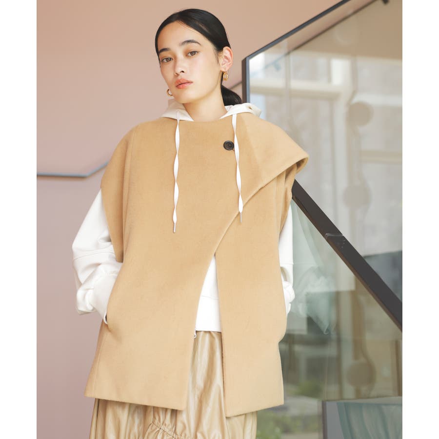 ◆2024-25秋冬◆ 【デザイン・シルエット】 トレンドアイテム!!ウール見えのマフラーみたいに巻けるラペルのポンチョベスト
