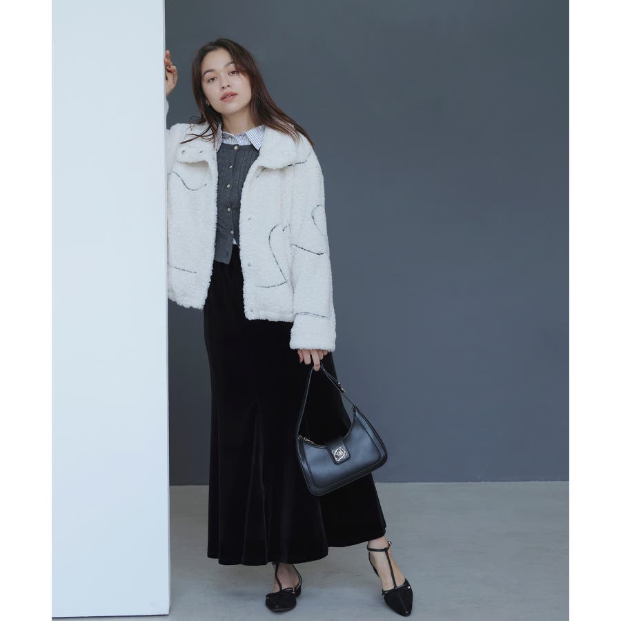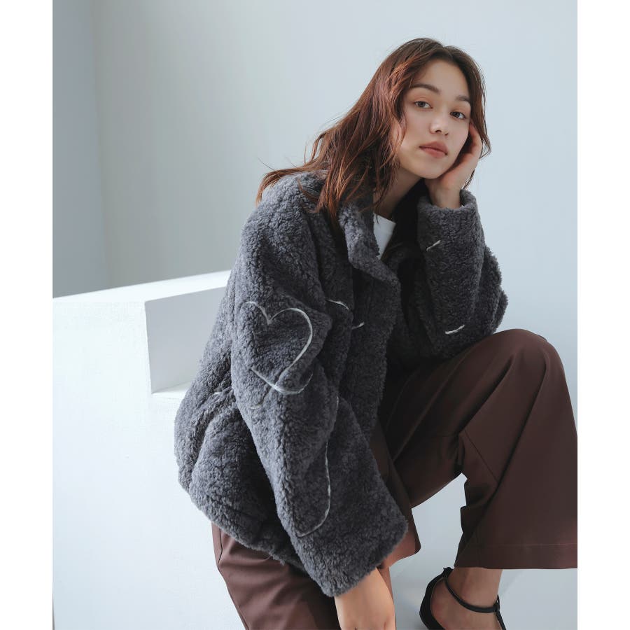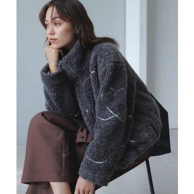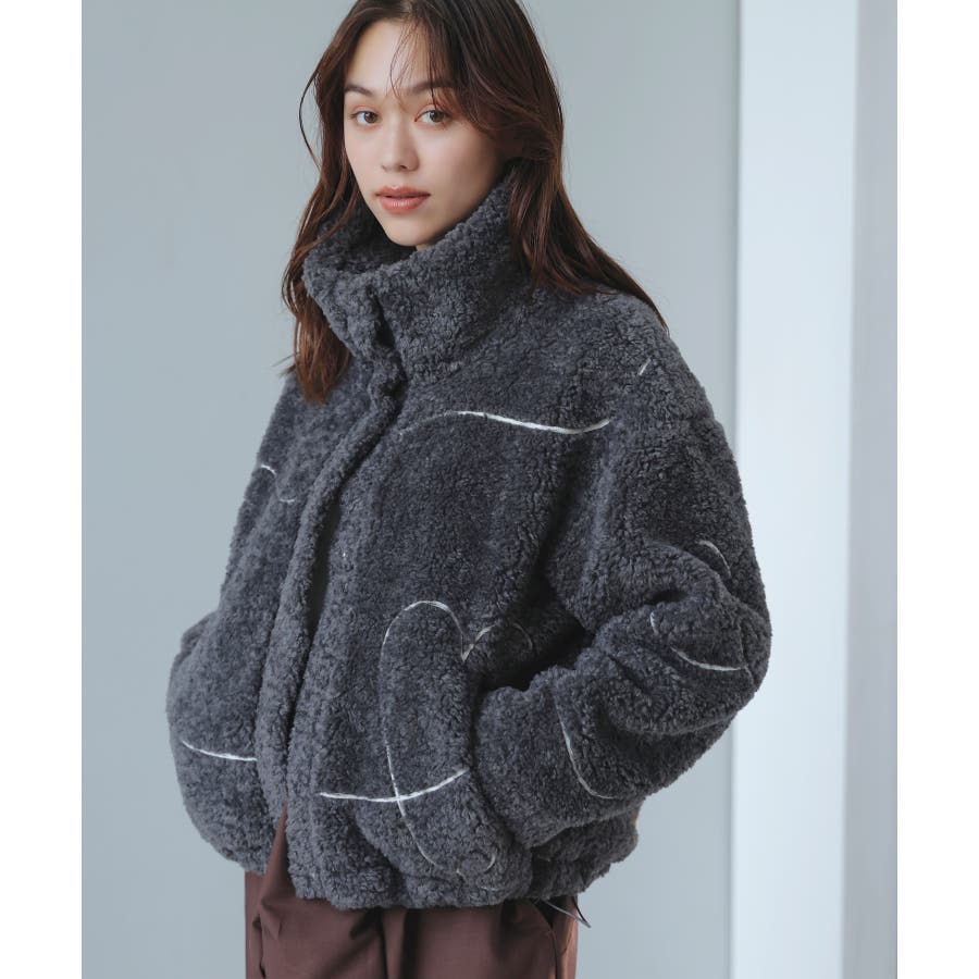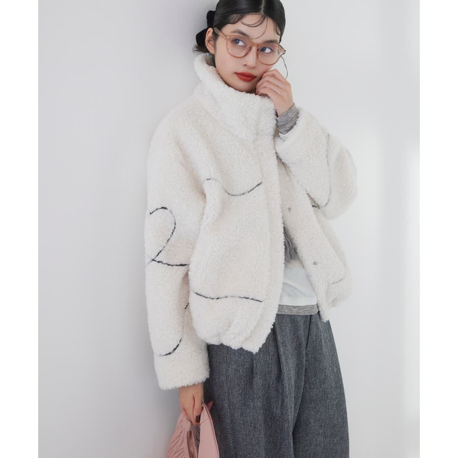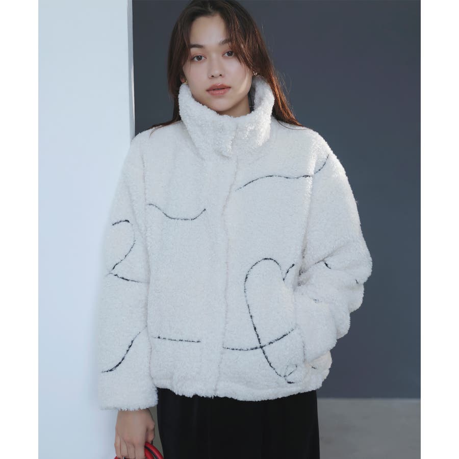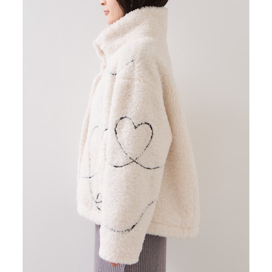 くるくるボアの刺繍アクセントのブルゾンは1着で映えること間違いなしです。前面と腕にだけほどこした程よいバランスの刺繍にはさり気なくハートが。