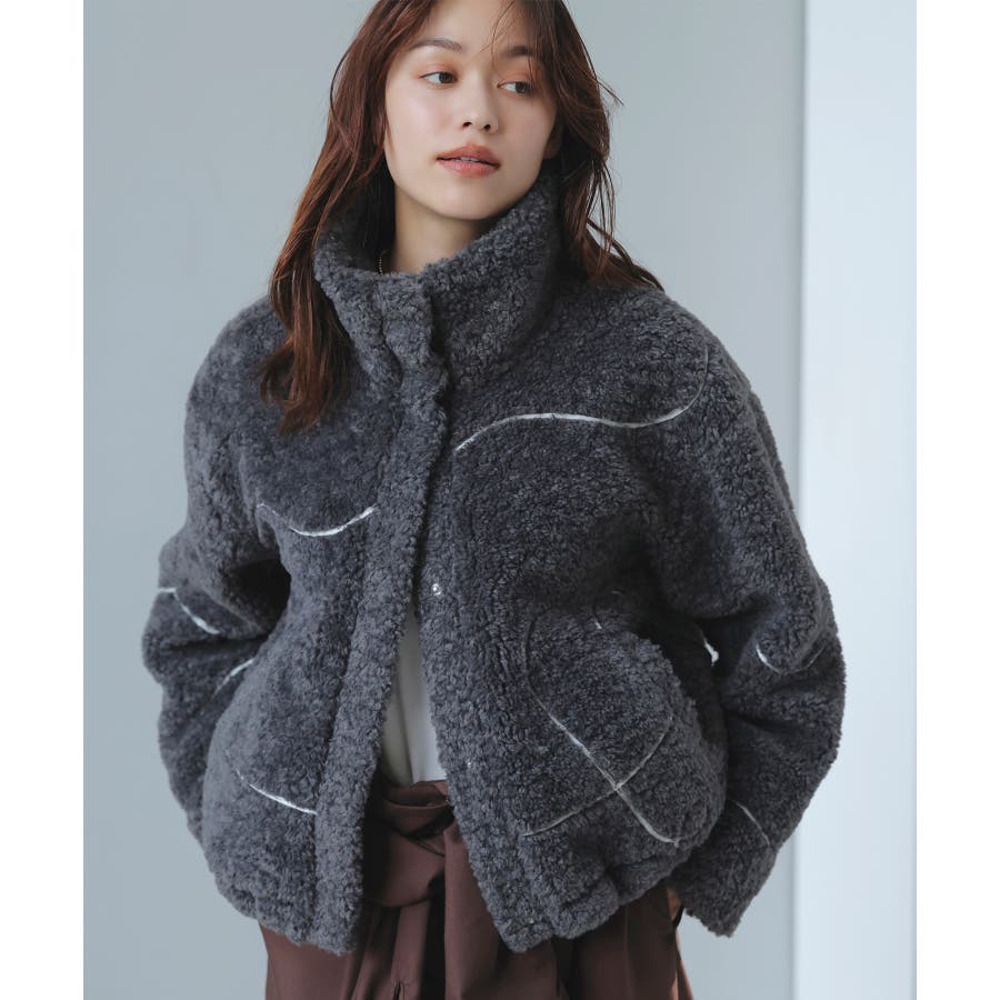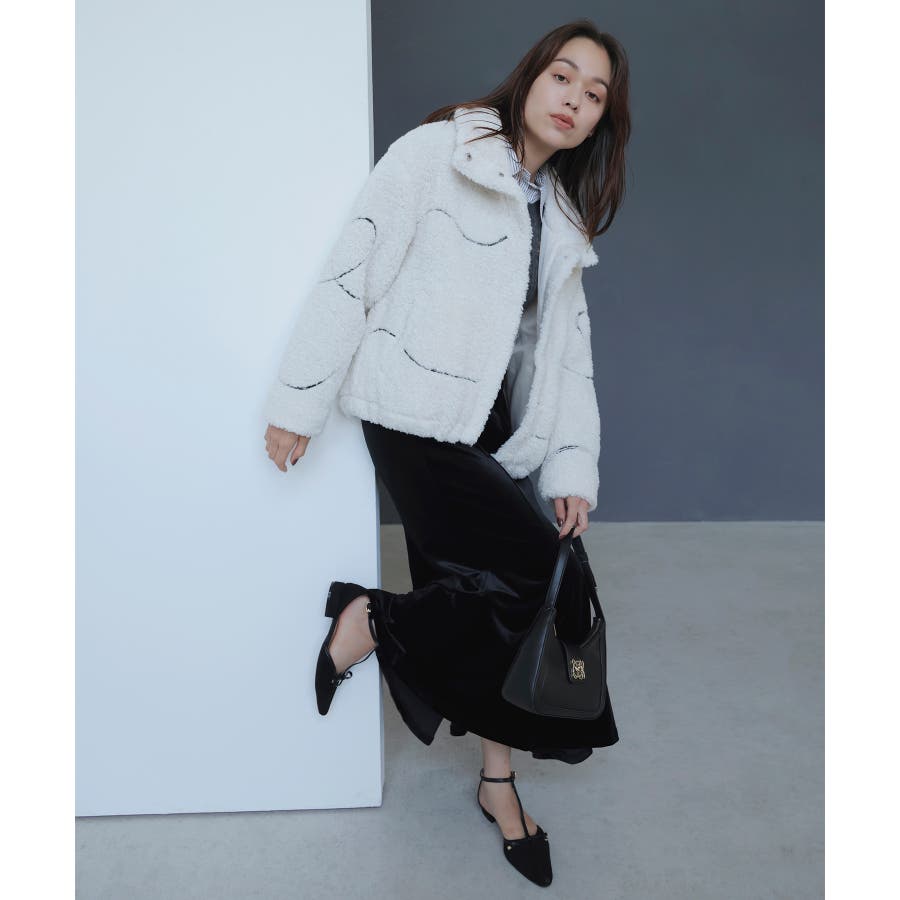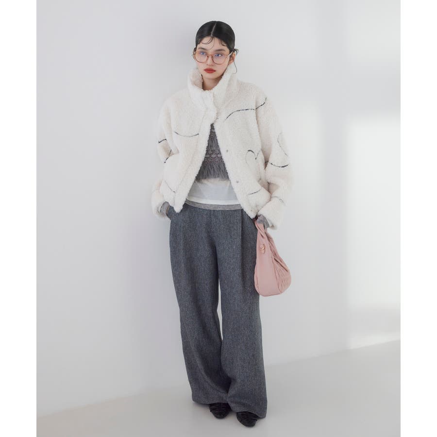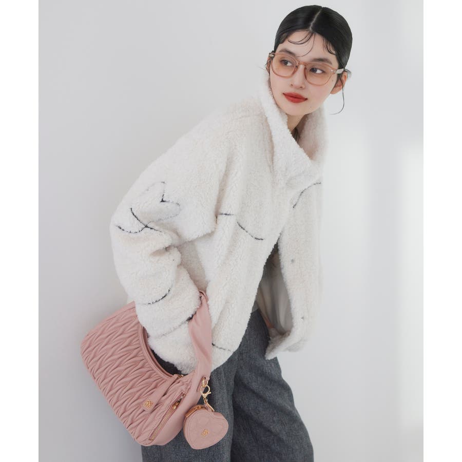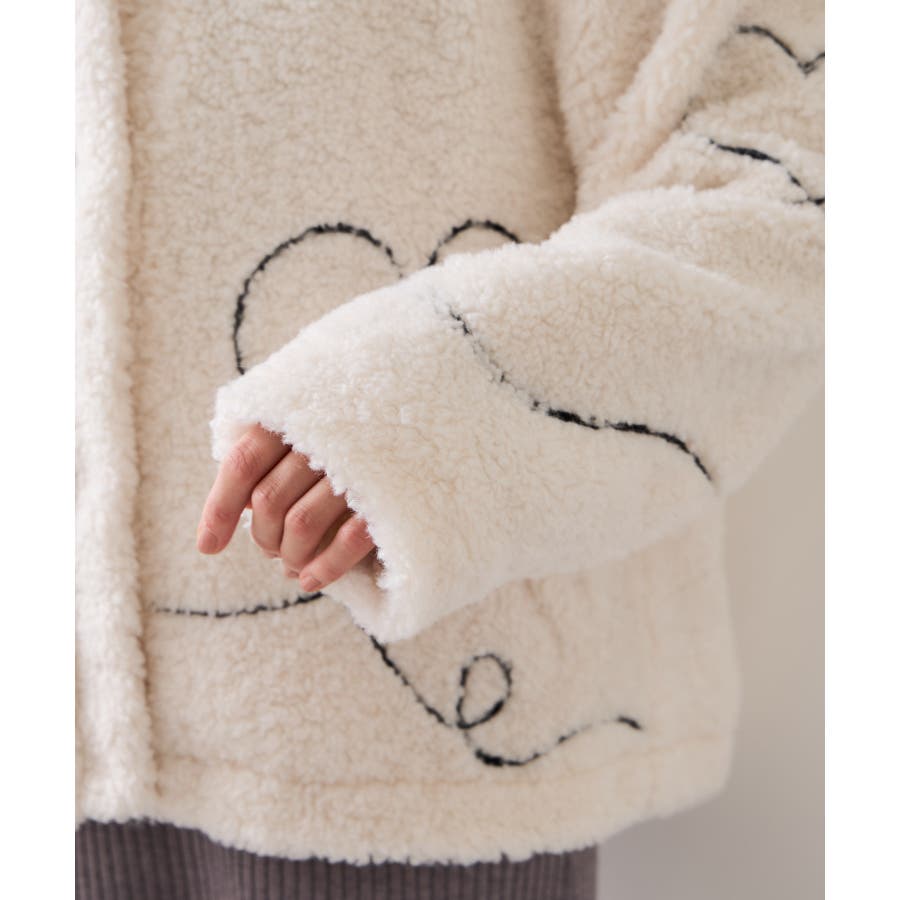 くるくるボアの刺繍アクセントのブルゾンは1着で映えること間違いなしです。前面と腕にだけほどこした程よいバランスの刺繍にはさり気なくハートが。