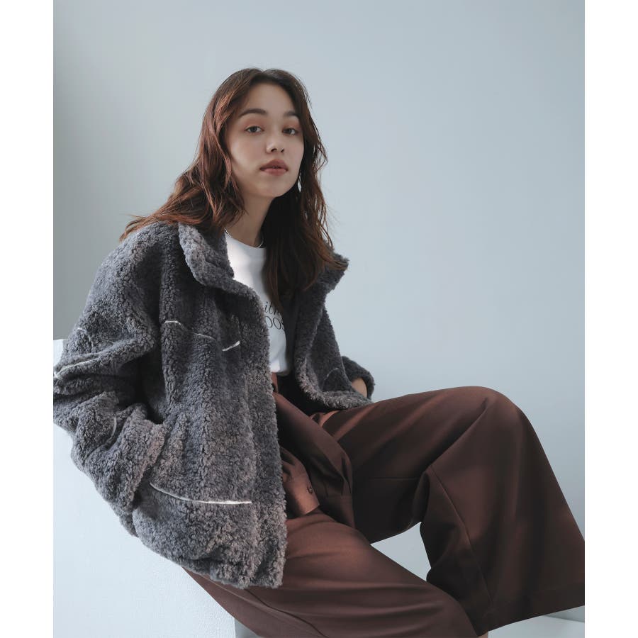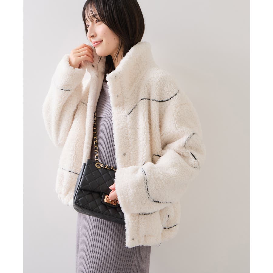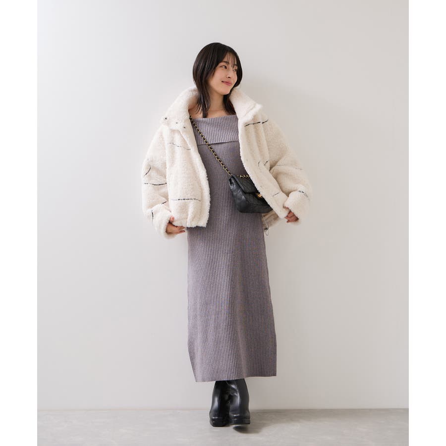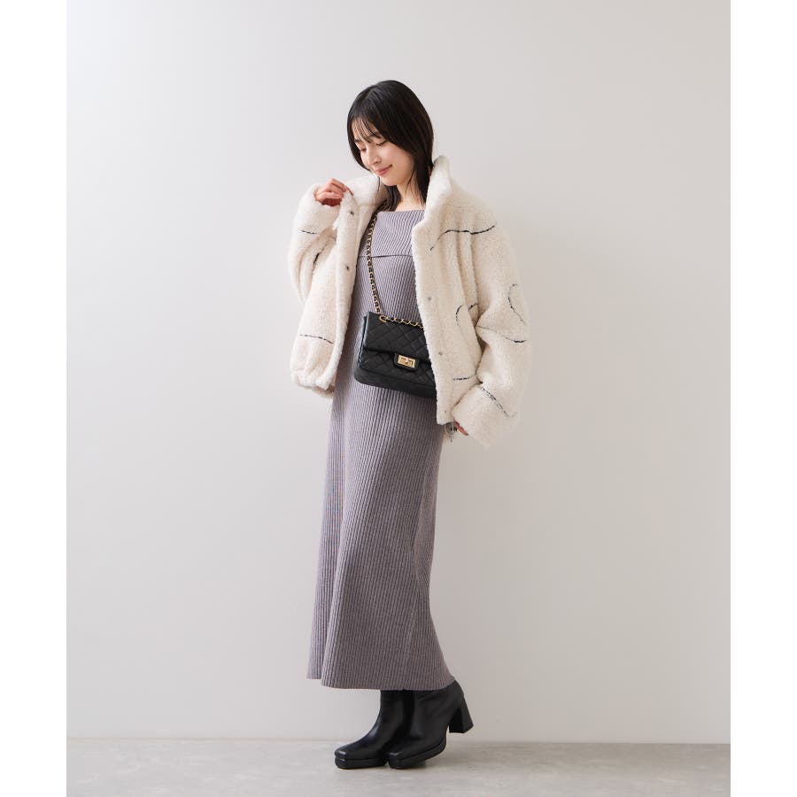 ボアブルゾンはカジュアルな雰囲気なので、ミニ丈×ブーツで肌見せポイントを作ってもらうのがおすすめ。