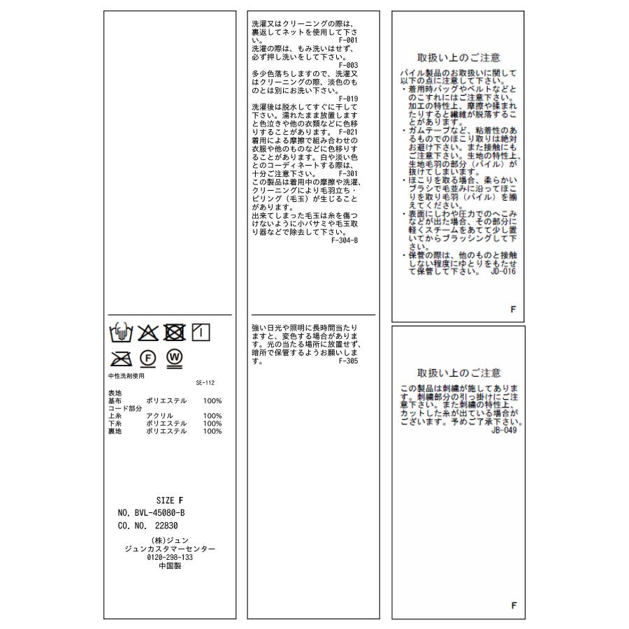 | 素材 | (表地) (基布) ポリエステル 100% (コード部分) (上糸) アクリル 100% (下糸) ポリエステル 100% (裏地) ポリエステル 100% |