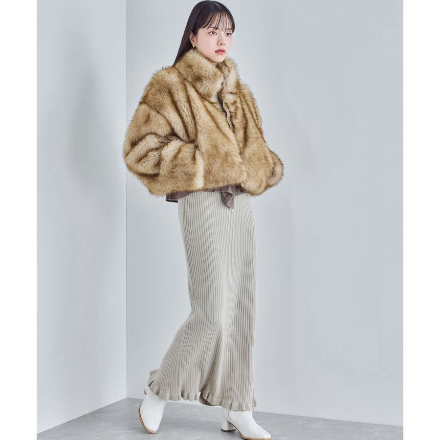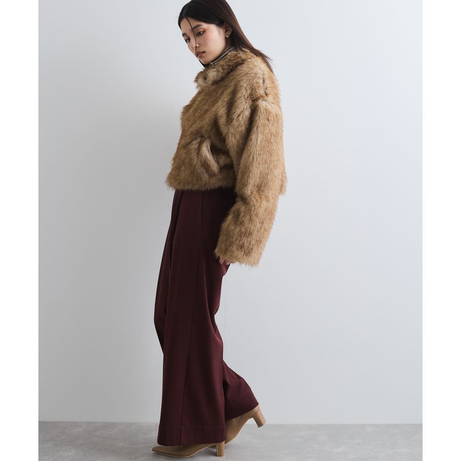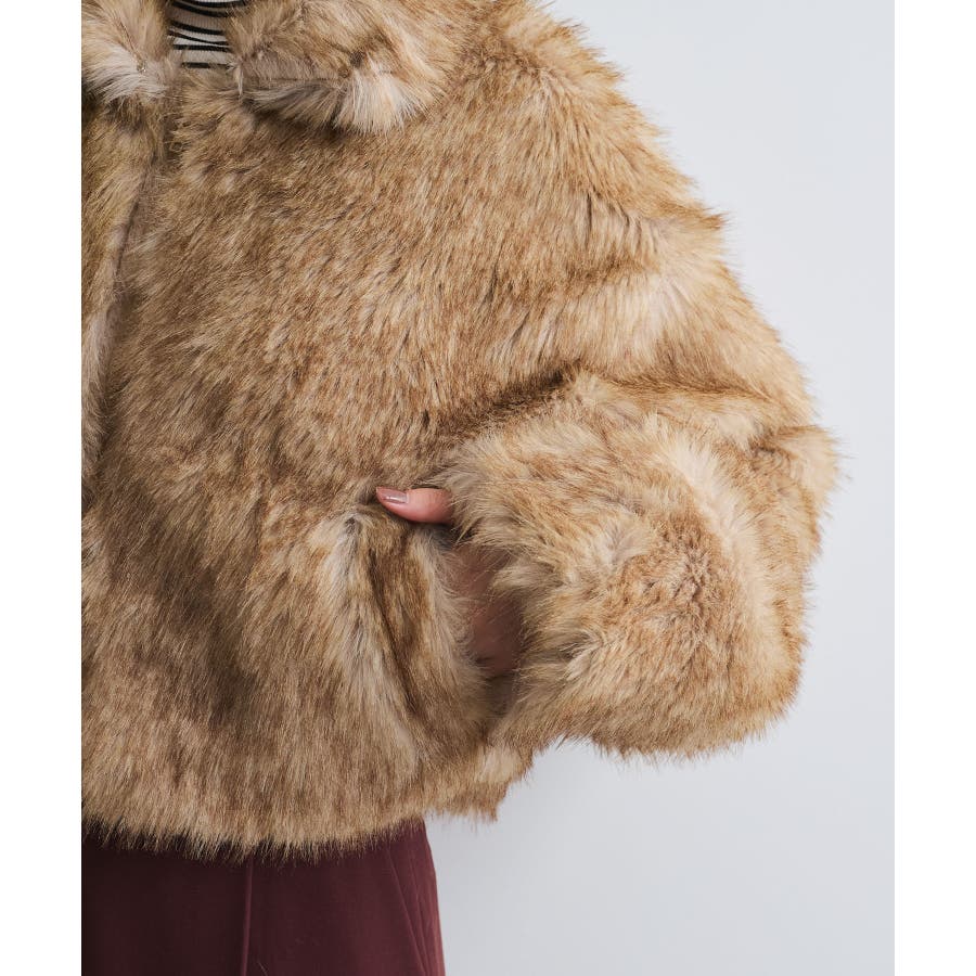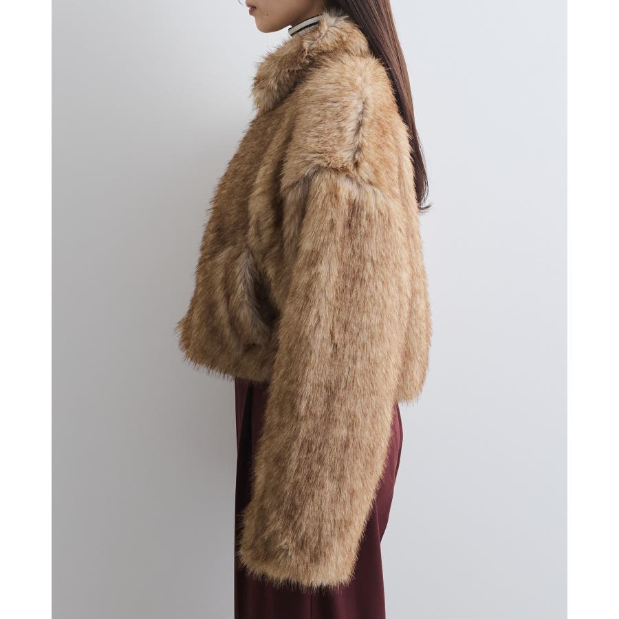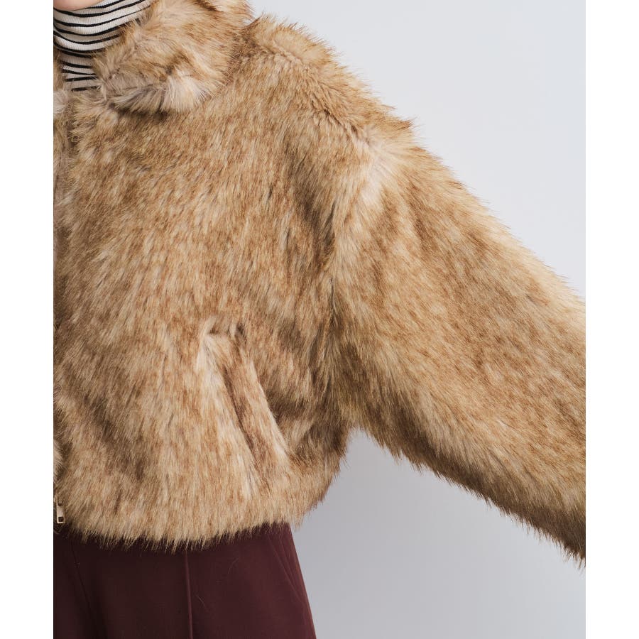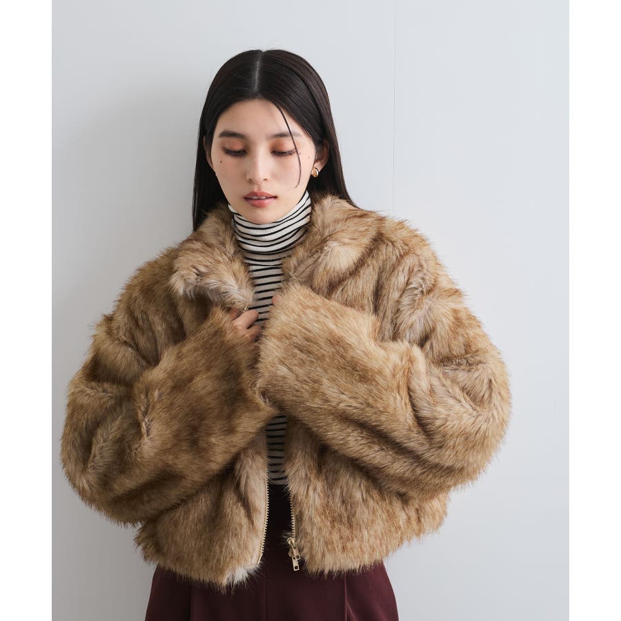 ◆2024-25冬◆ 【デザイン・シルエット】 ボリューム感たっぷりのエコファーブルゾン。 ボリュームはありつつ、ショート丈の為コンパクトにまとまり、コーディネートの主役級のアウター! 袖まわりはゆとりがあり、厚手のインナーを着用してもごわつかず動きやすいサイズ感。 首元のフックを留めて、スタンドカラー風に着用すると暖かさ&小顔効果も狙えます。 【素材】 柔らかい肌触りのエコファー素材。 ドライクリーニングのみのお取り扱いになります。(アイロン仕上げ処理はNG) 【カラー】 コーデに映えるブラウン系の1色展開。 【おすすめのスタイリング】 スカートやワンピ合わせで足元はブーツと合わせるとアウターの重さとバランスがよく、コーデがまとまります。 カジュアルにデニムアイテムとも相性がいいです! 女性らしい華やかなお出かけスタイル、カジュアルコーデの外しアイテムとしてもおしゃれにまとまるコーディネートが完成します。 ----------------------------- 裏地:なし 光沢感:なし ファスナー:Wジップ ポケット:あり ボタン:なし 生地の厚さ:やや厚手 その他仕様:首元2箇所フックあり 季節:秋、冬 ----------------------------- 【モデル着用サイズ】 モデル身長:164cm、骨格:ナチュラルとストレートのミックス、着用サイズ:F (画像最後のモデル身長:163cm、着用サイズ:F) ※画像の商品はサンプルです。 実際の商品と仕様、加工、サイズが若干異なる場合がございます。 ※重量はサンプルFサイズの測量になります。サイズによって多少異なる場合があります。 ※画像によっては実際の色味と異なる場合があります。正しい色味は生地アップ画像をご確認ください。