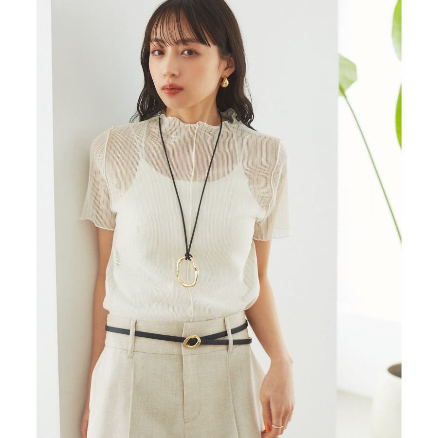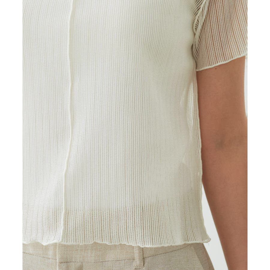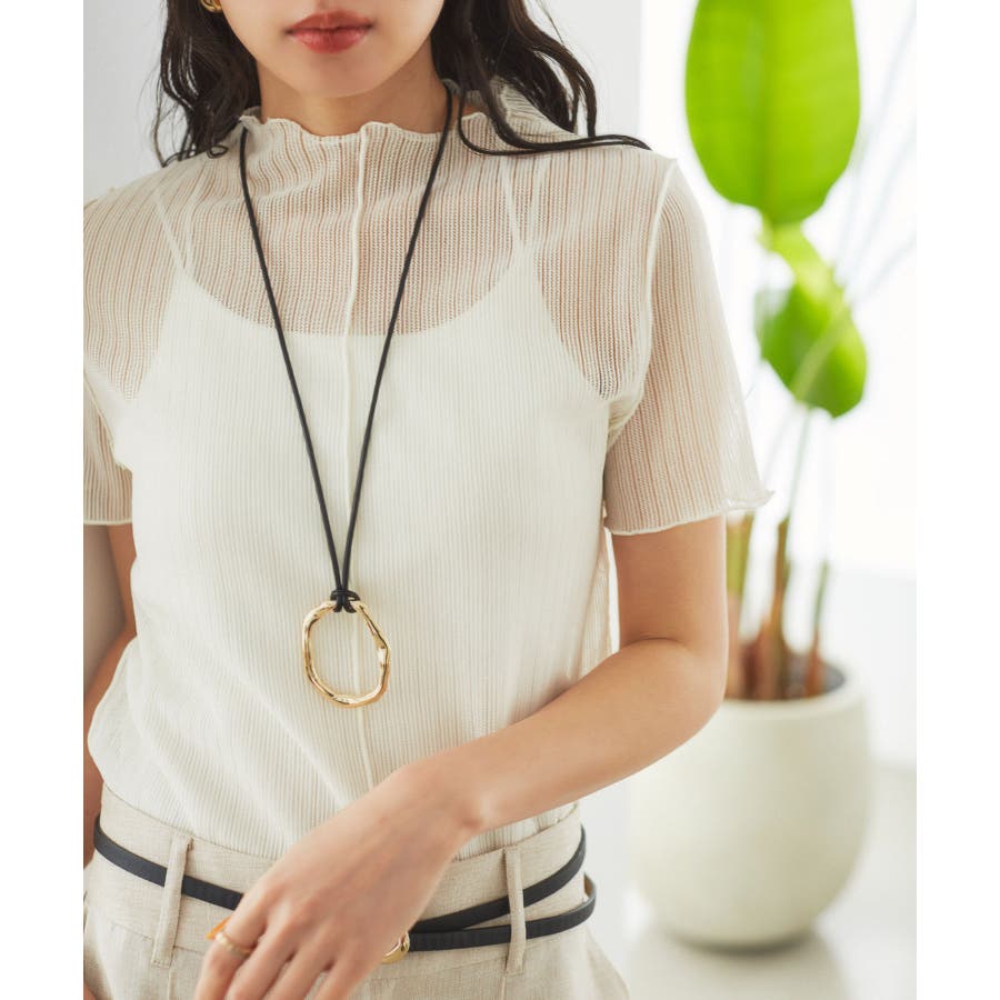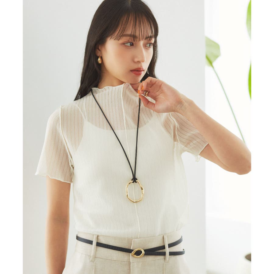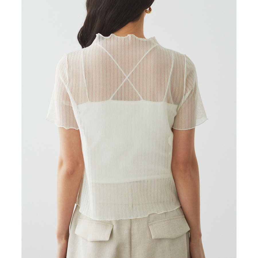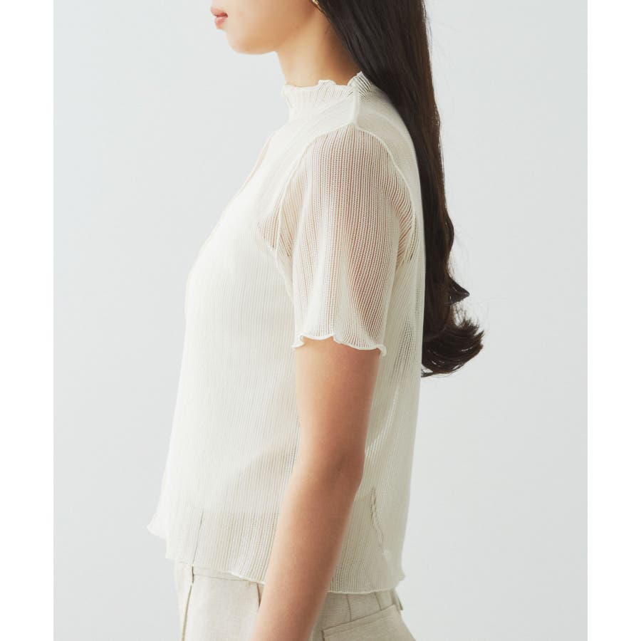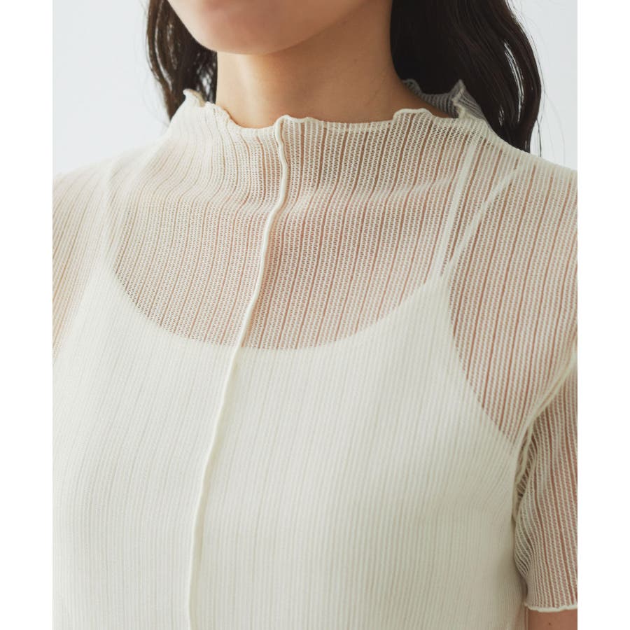 ◆2024春夏◆ 【デザイン・シルエット】 細かい縦のラインとうねりのある縁取りが特徴のシアーカットソー。 ややハイネックに設定し、触り心地もドライタッチで春から夏のレイヤードスタイルに万能アイテムです。