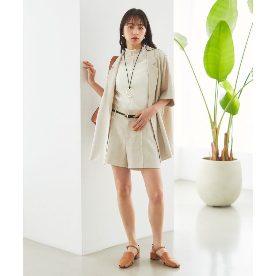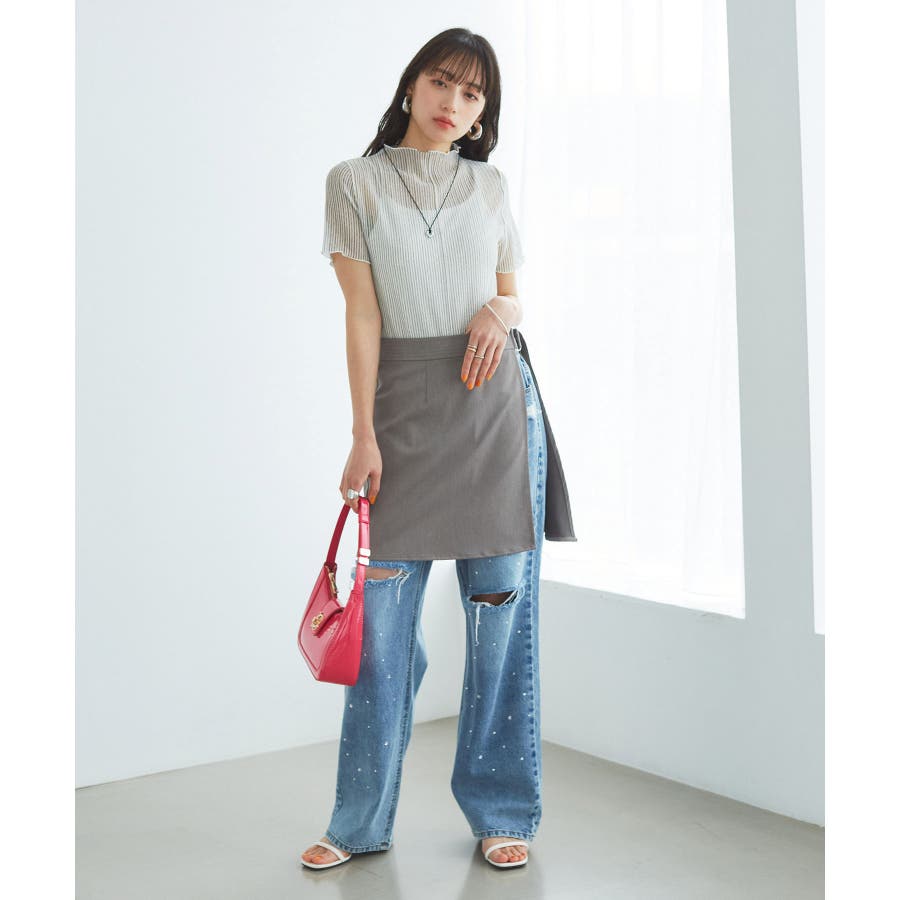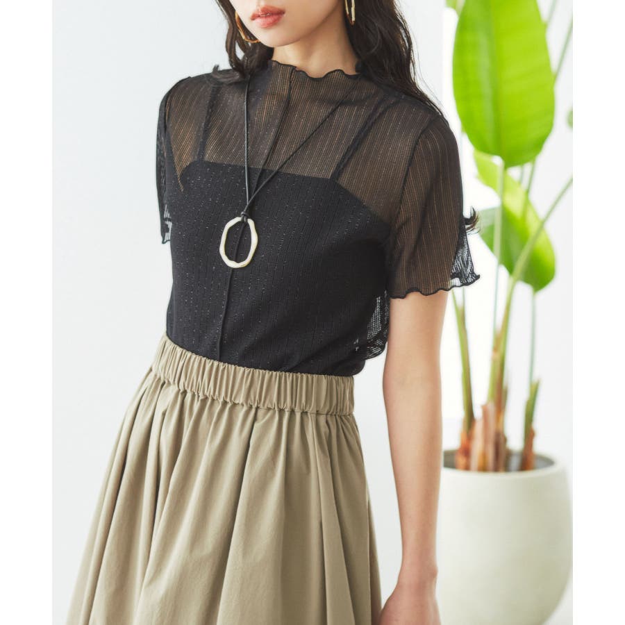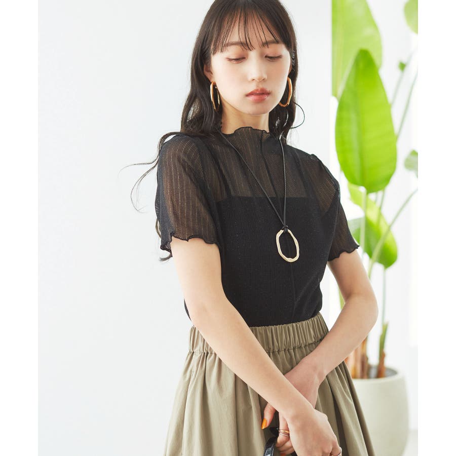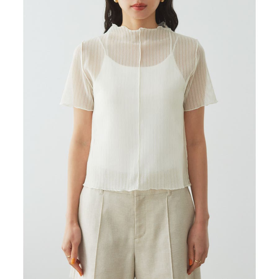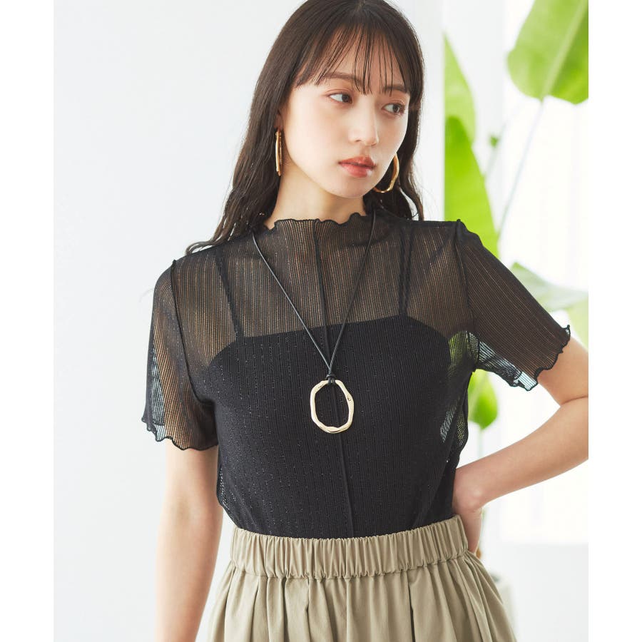 ◆2024春夏◆ 【デザイン・シルエット】 細かい縦のラインとうねりのある縁取りが特徴のシアーカットソー。 ややハイネックに設定し、触り心地もドライタッチで春から夏のレイヤードスタイルに万能アイテムです。
