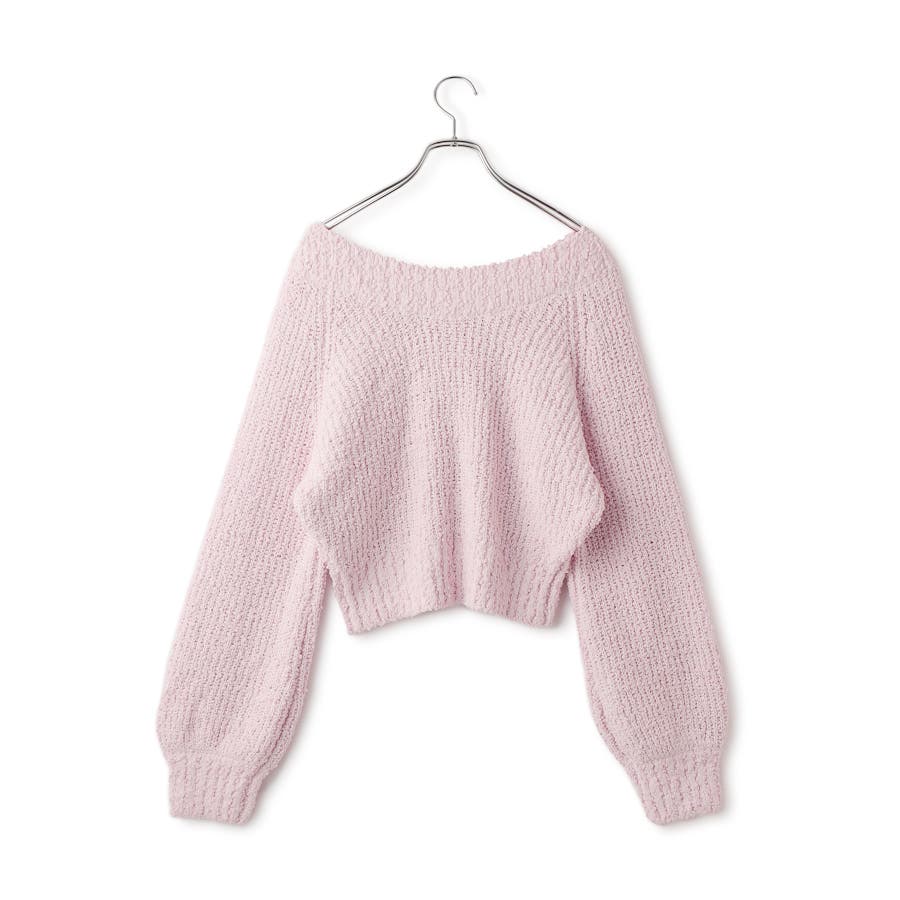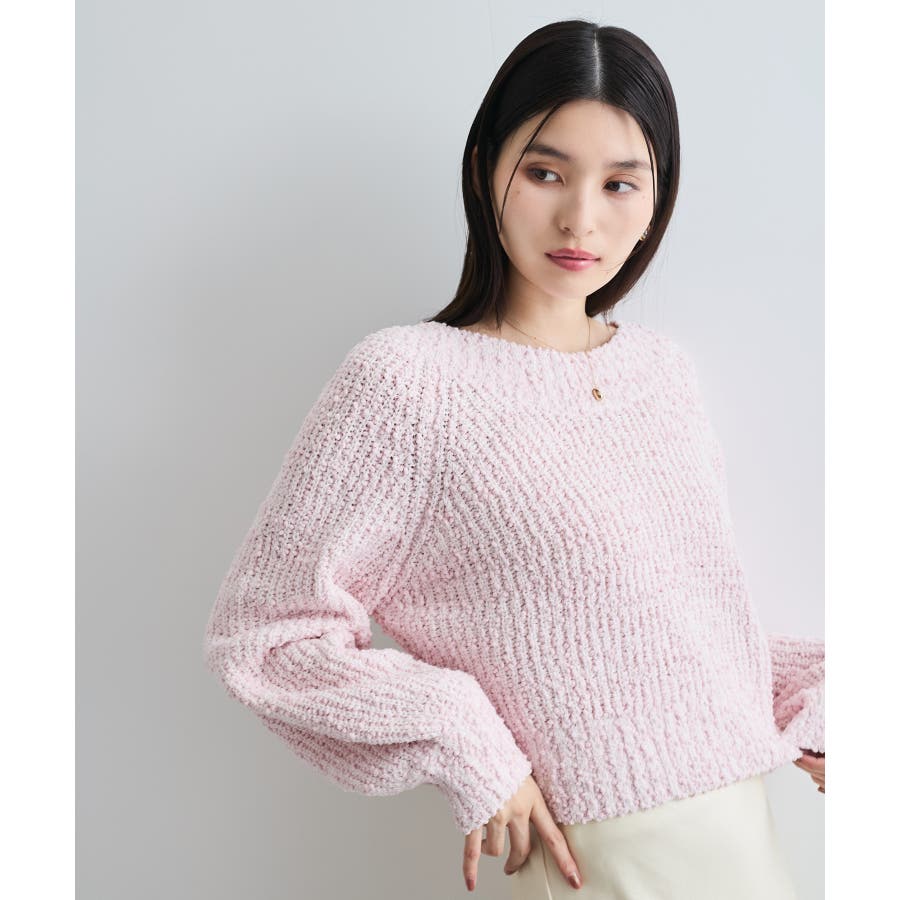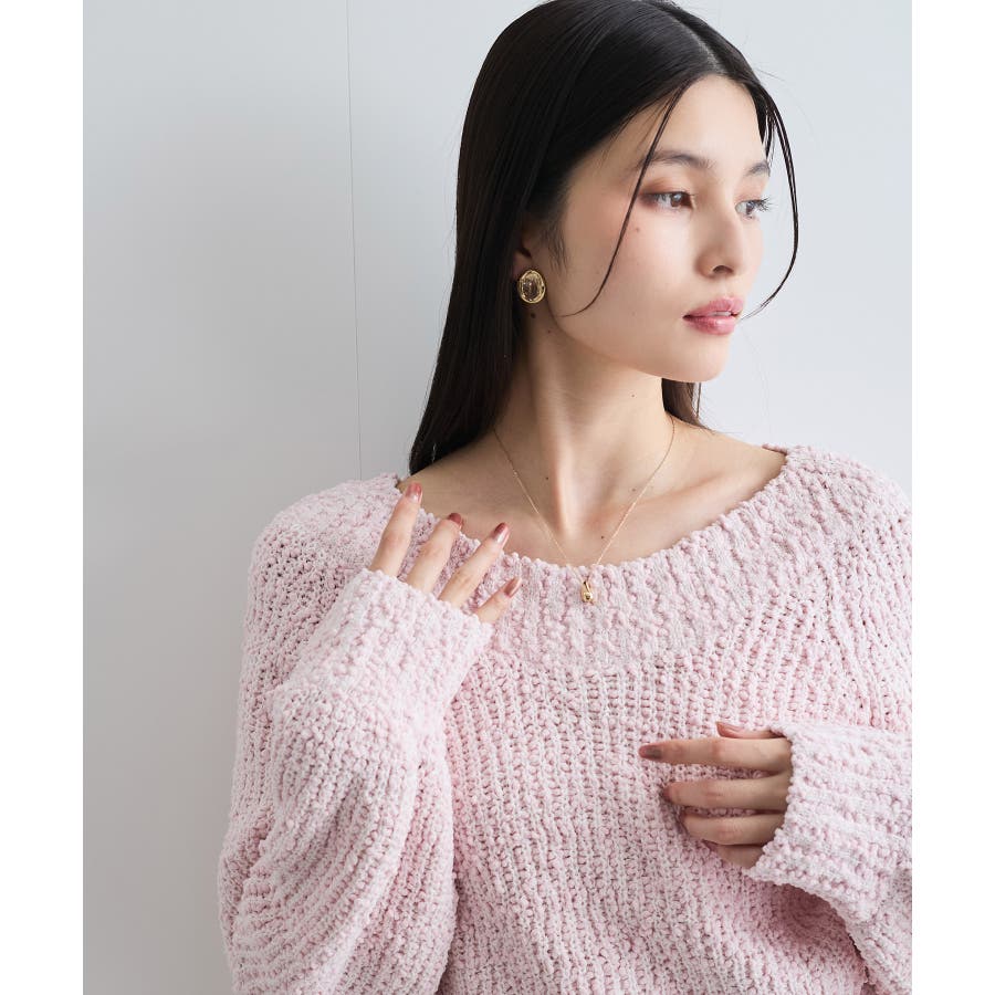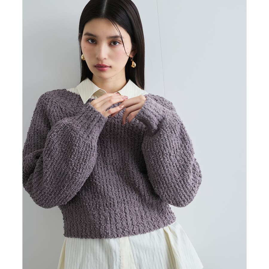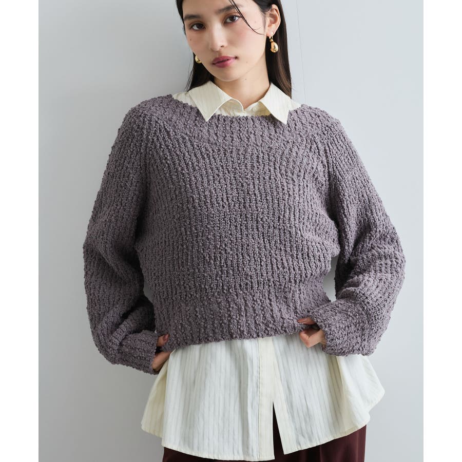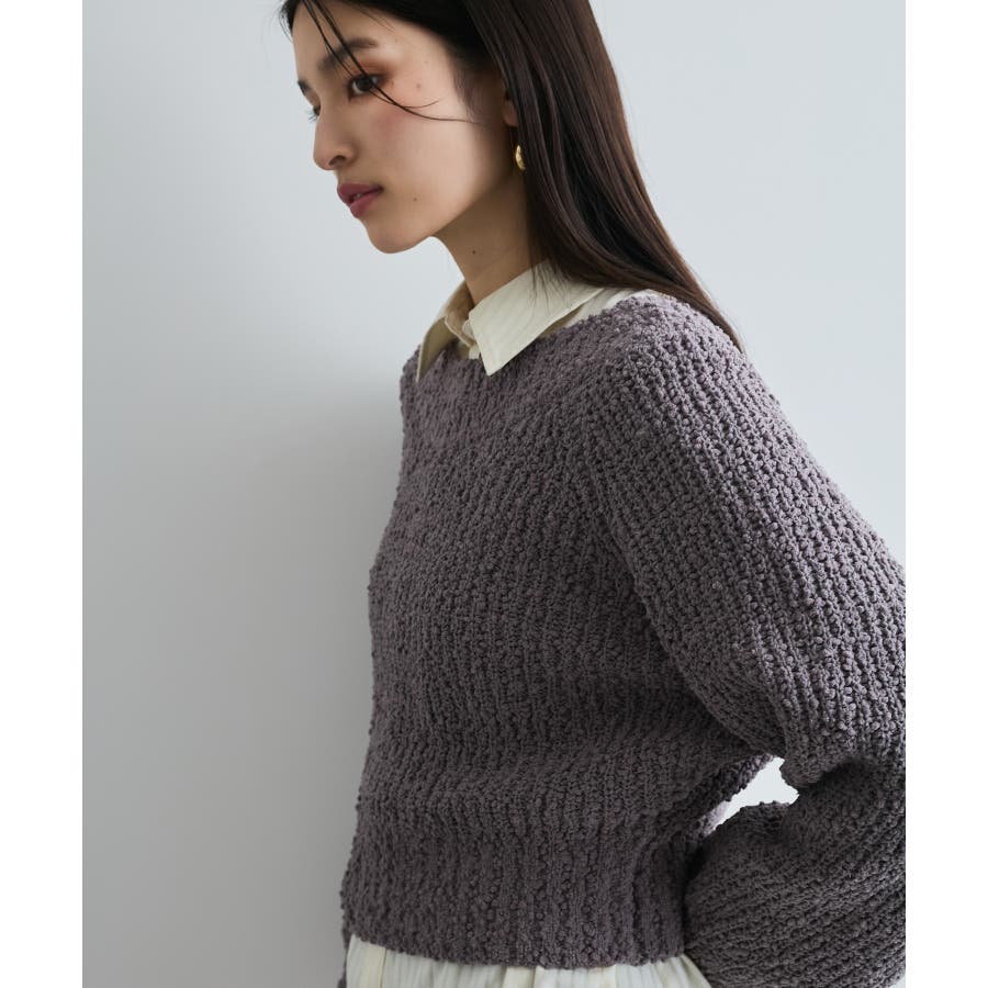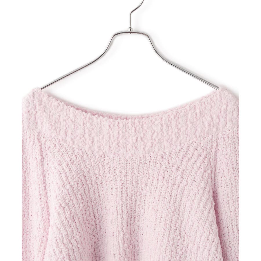 ポコポコとした糸で編んでいるニット素材。柔らかくてチクチクしない素材。