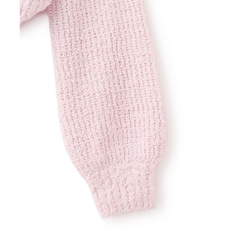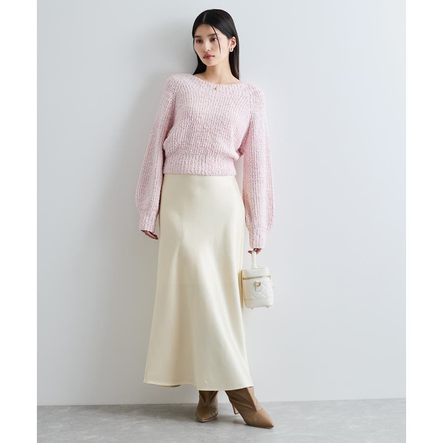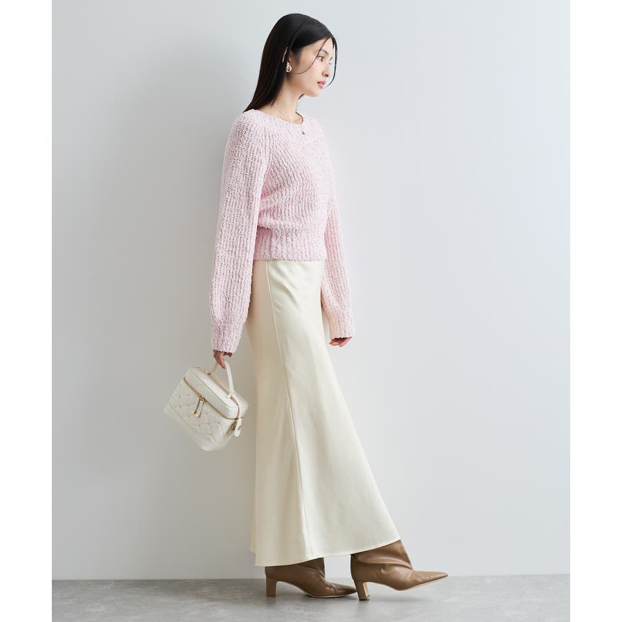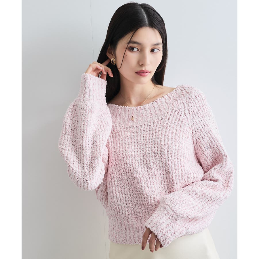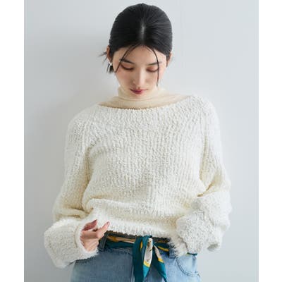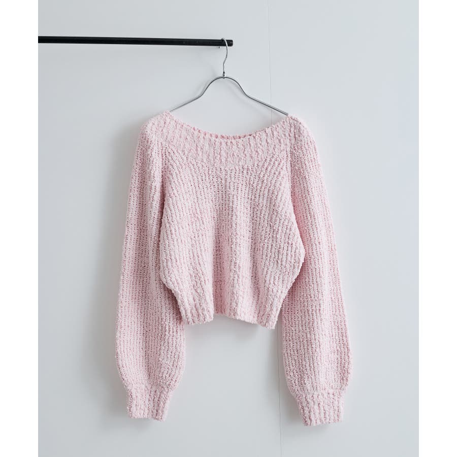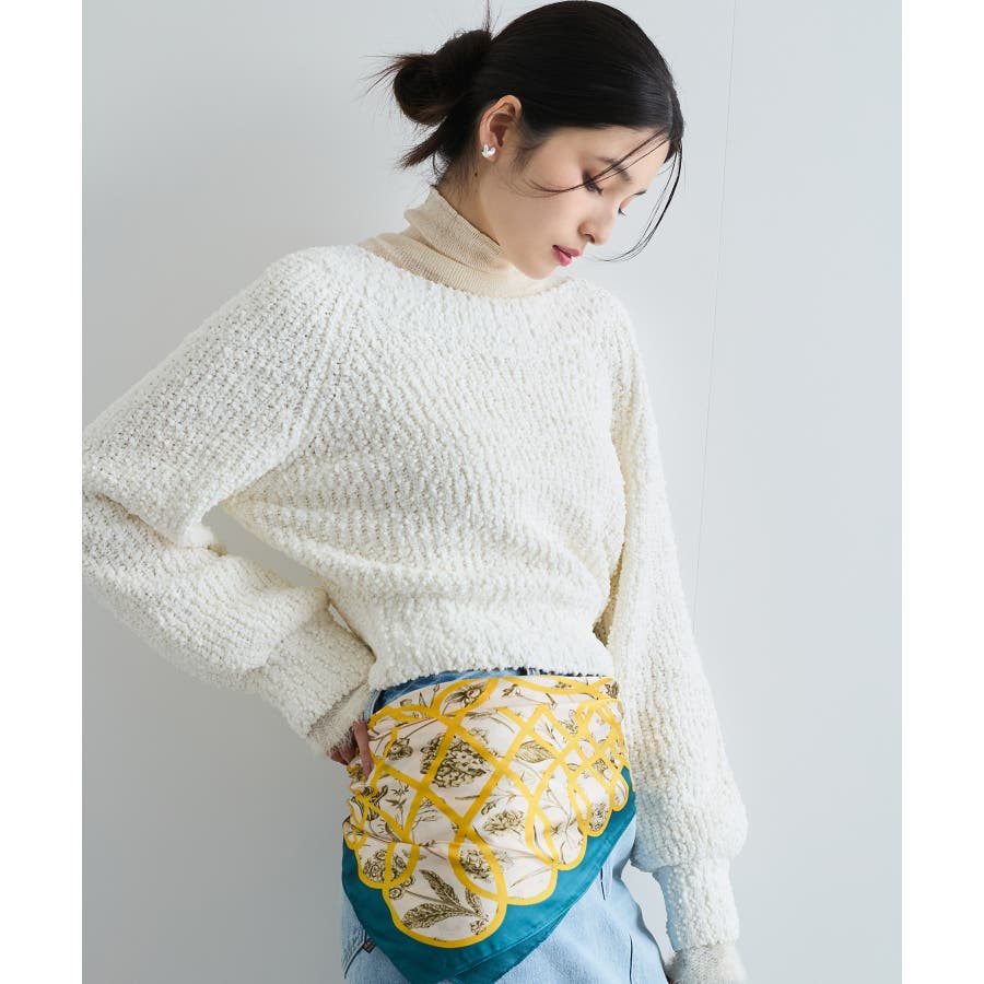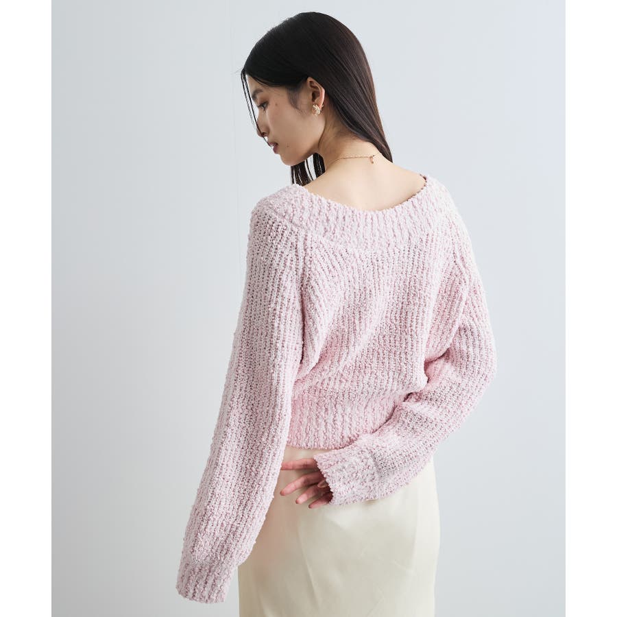ポコポコとした糸で編んでいるニット素材。柔らかくてチクチクしない素材。