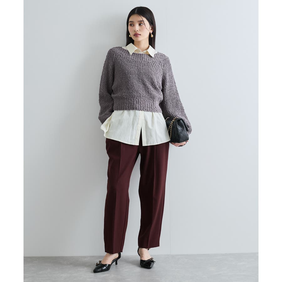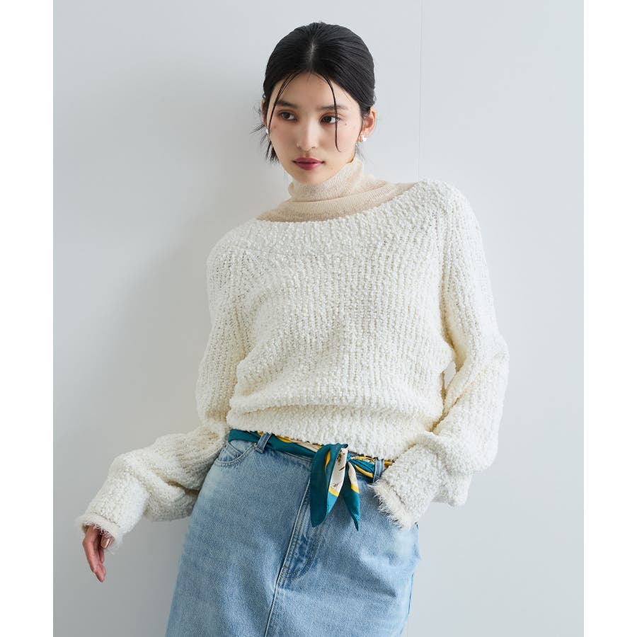 ネックがやや広めなので、キャミソールやタンクとのシンプルなスタイルからシャツやタートルネックとのレイヤードスタイルもおすすめです。