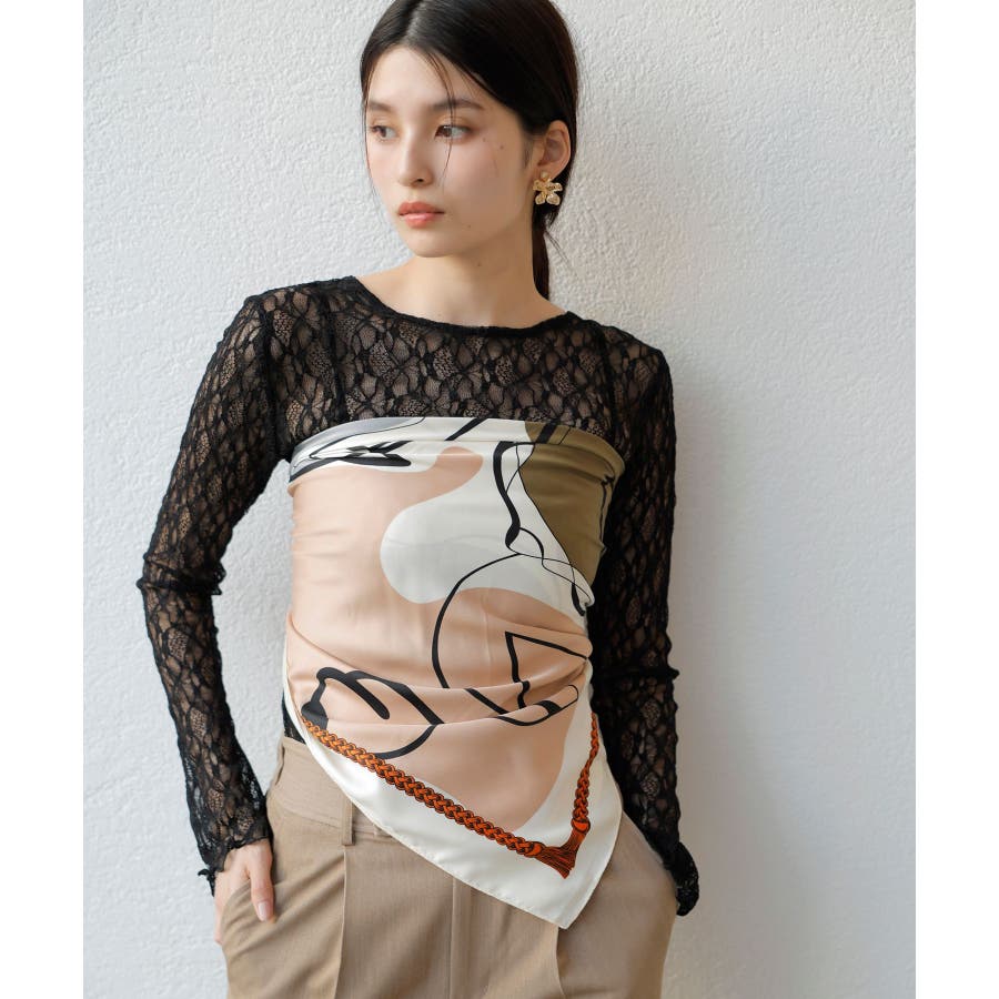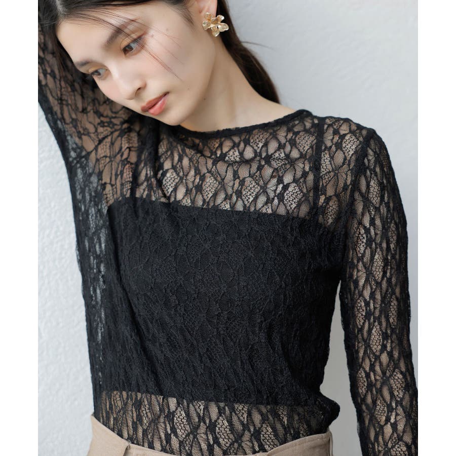 クルーネックインナートップス(レース・チェック・ラメ・シアー)