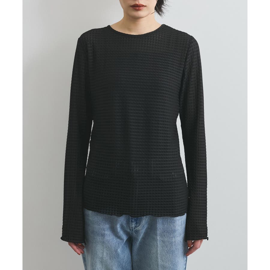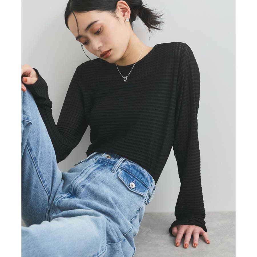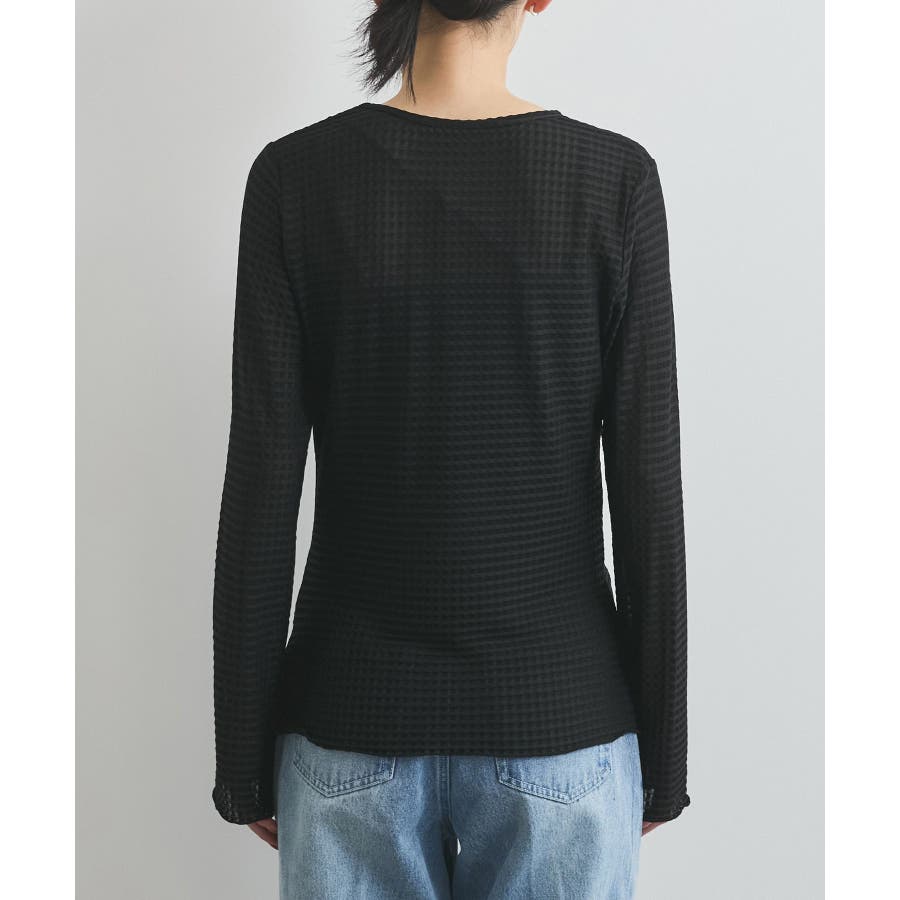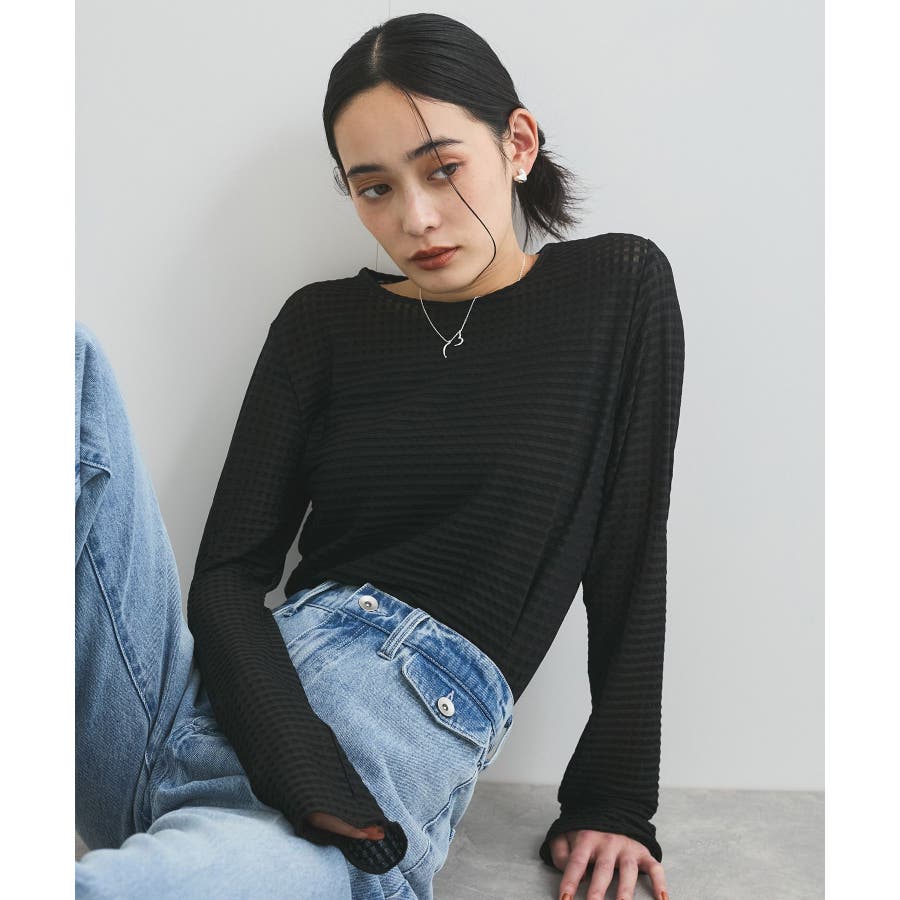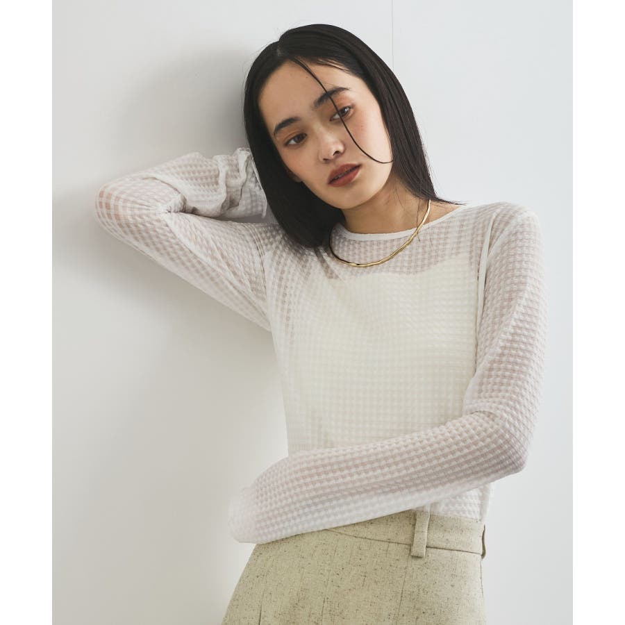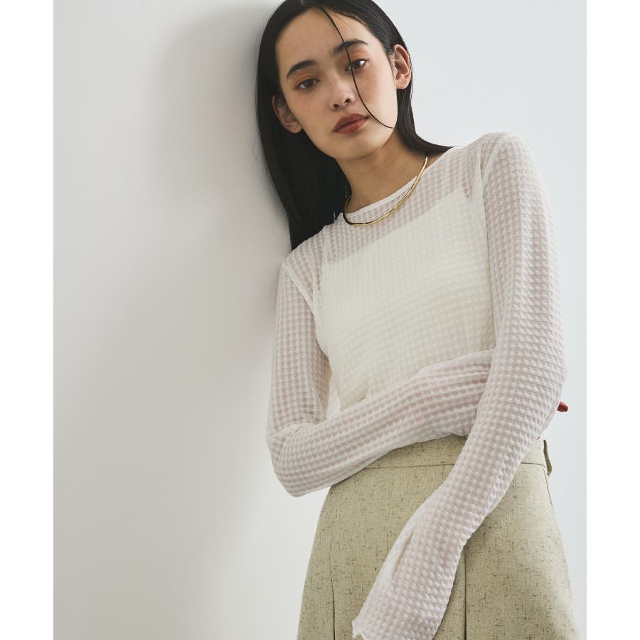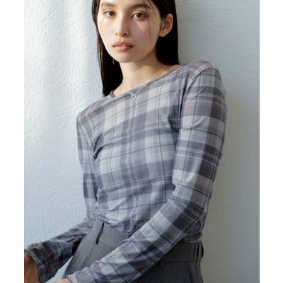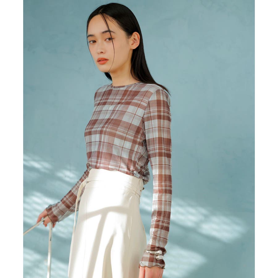 チェック柄:シアー感のある薄手素材にチェック柄プリント。
