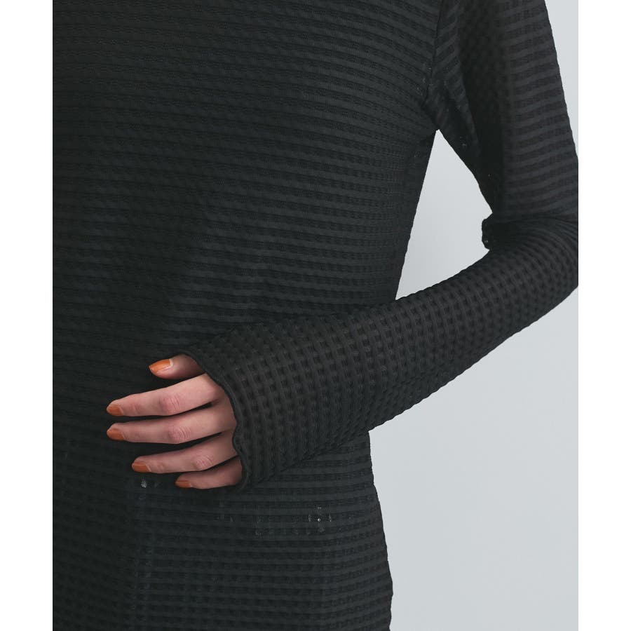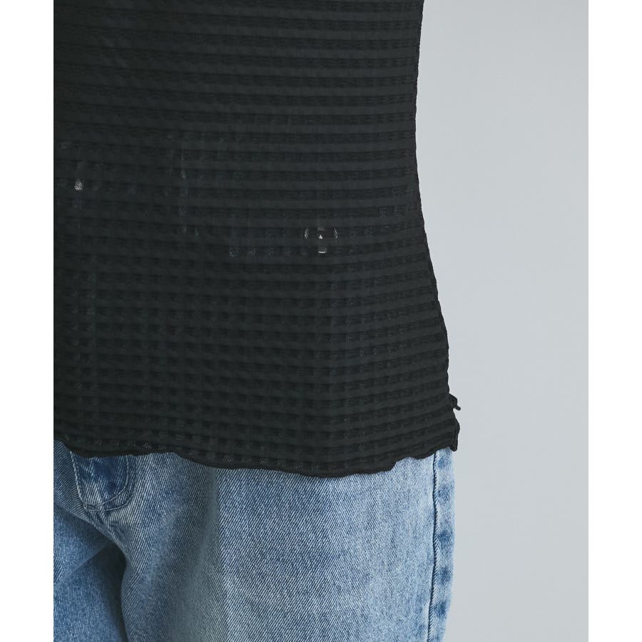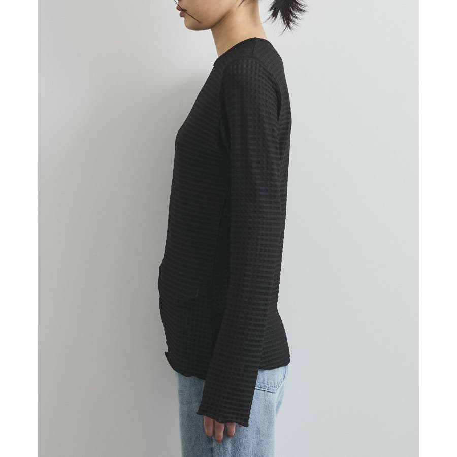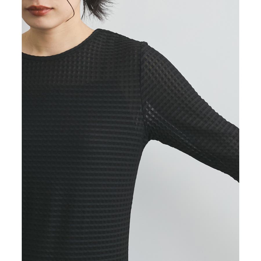 シアー無地チェック柄:やわらかな肌ざわりの着心地の良い表面変化素材を使用しています。