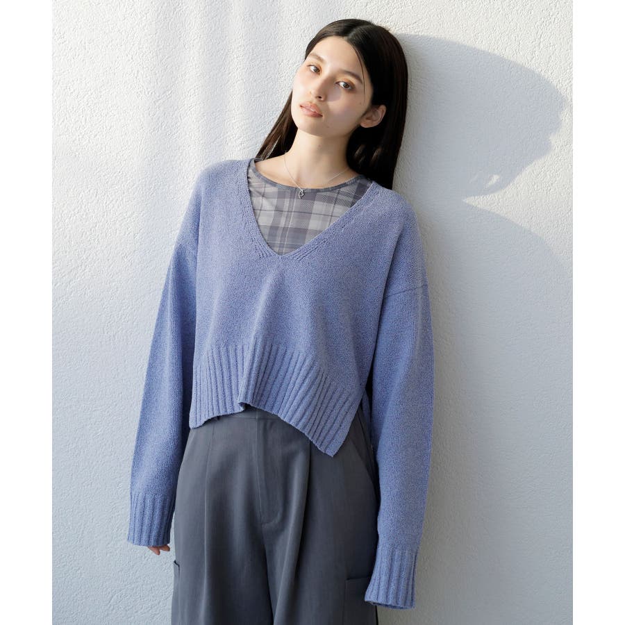 衿ぐりの重ね着にポイントになるクルーネックインナープルオーバー。