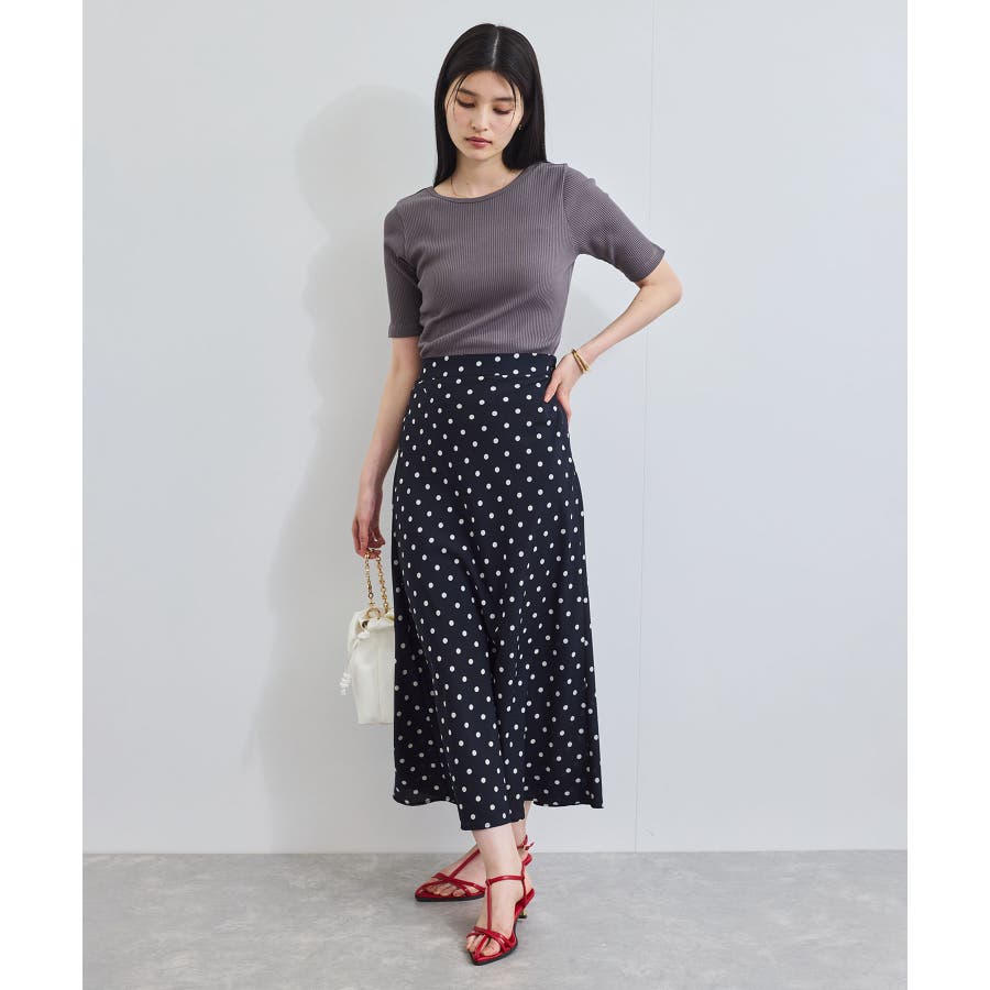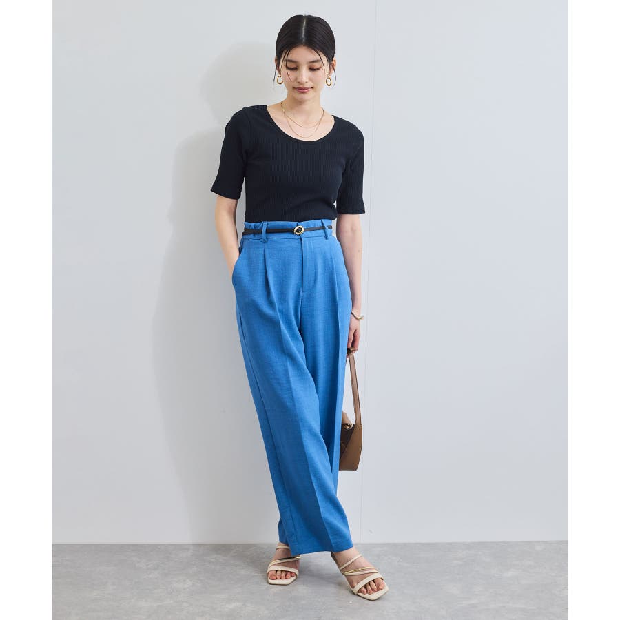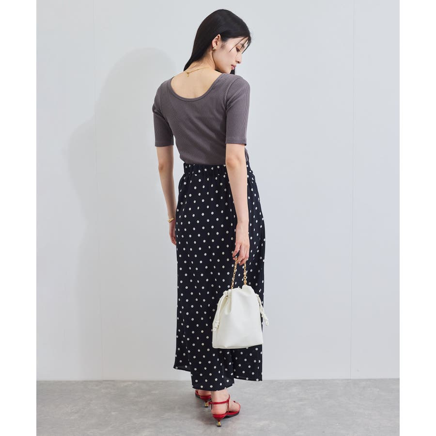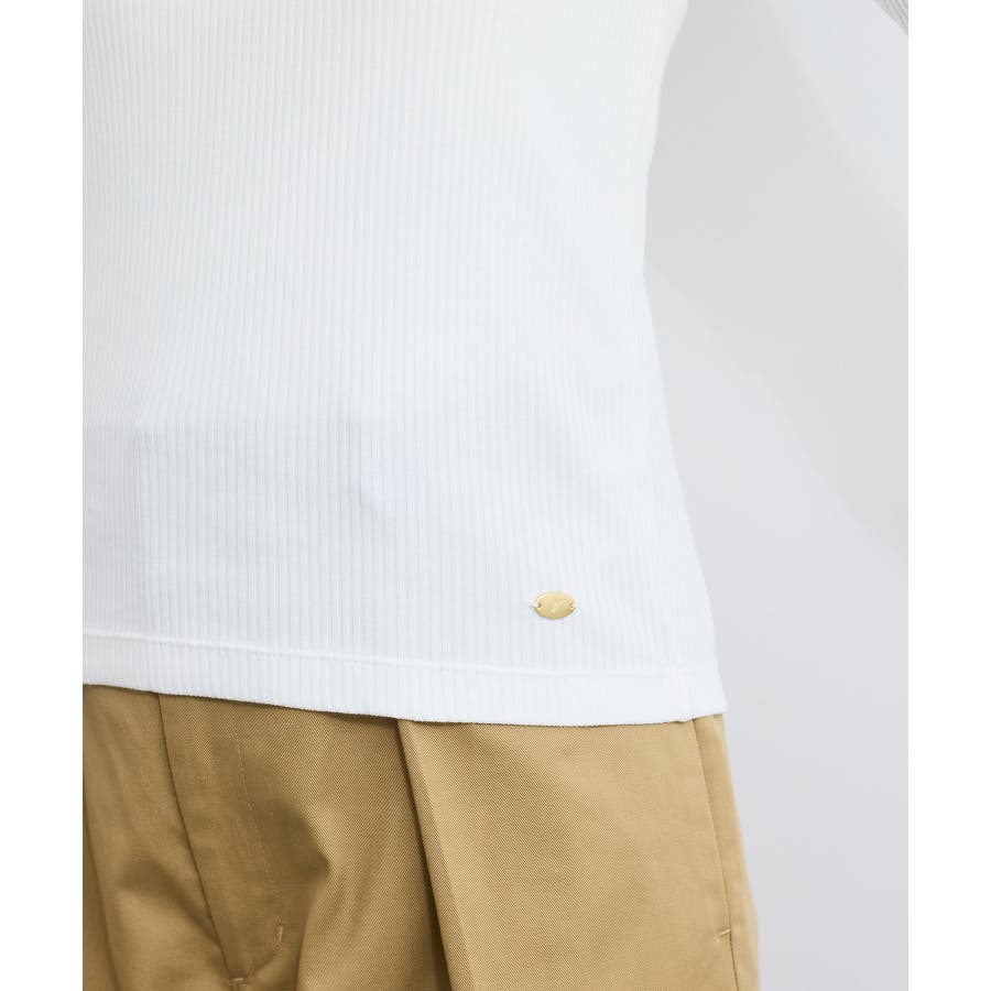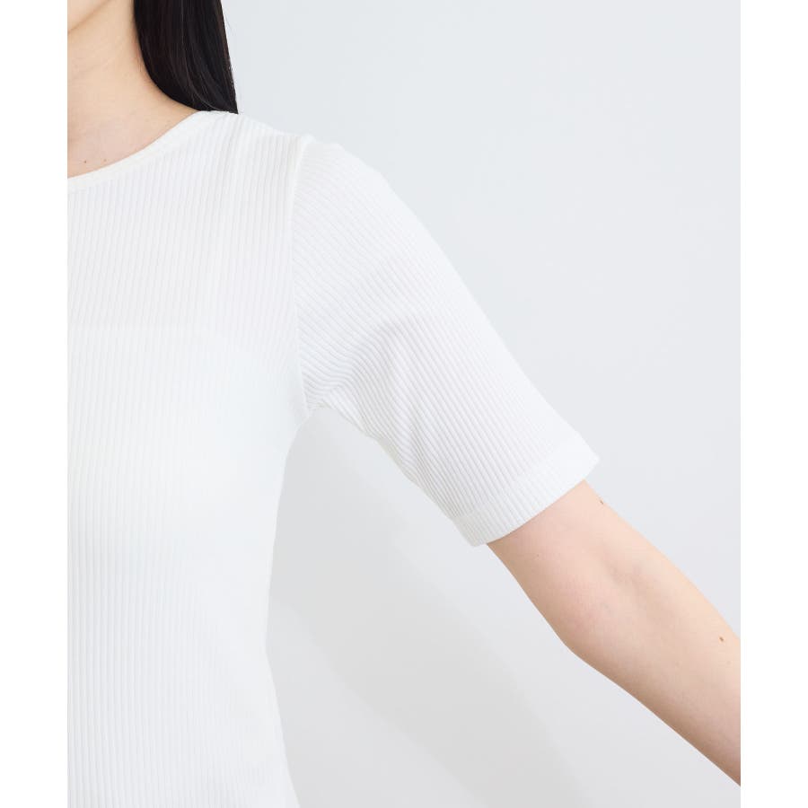 デコルテがきれいに見える浅めのクルーネックと程よい深さのクルーネックの両方がコーディネットによって楽しめる前後2WAY五分袖プルオーバーです。