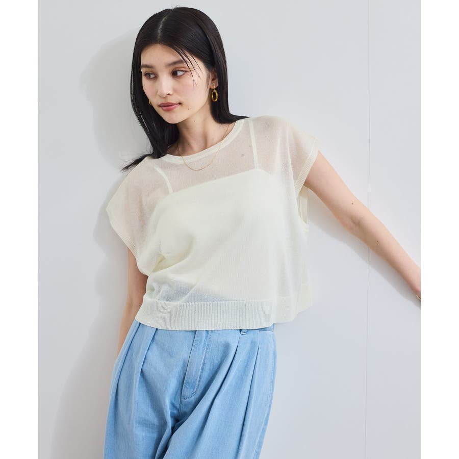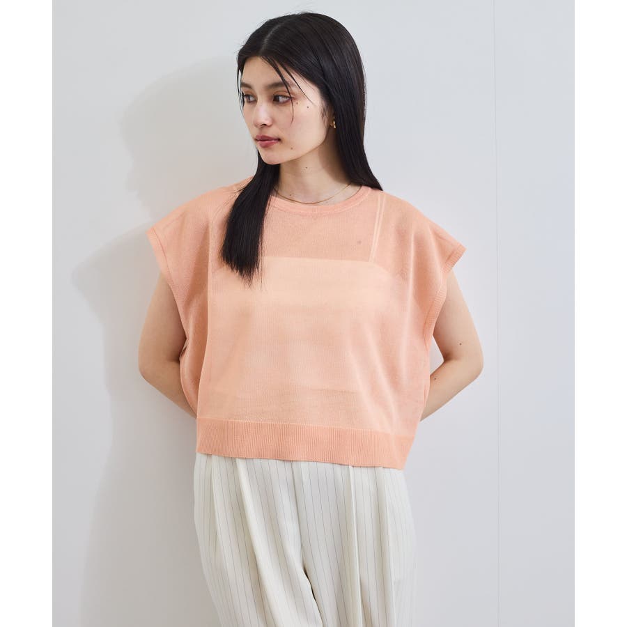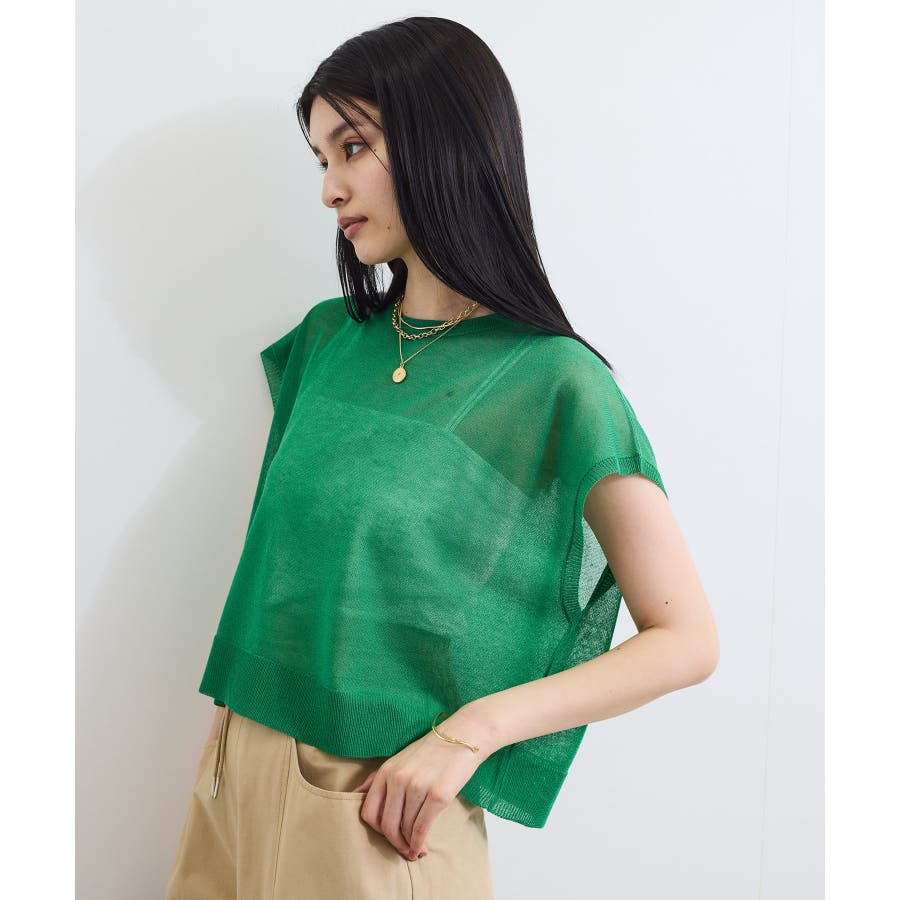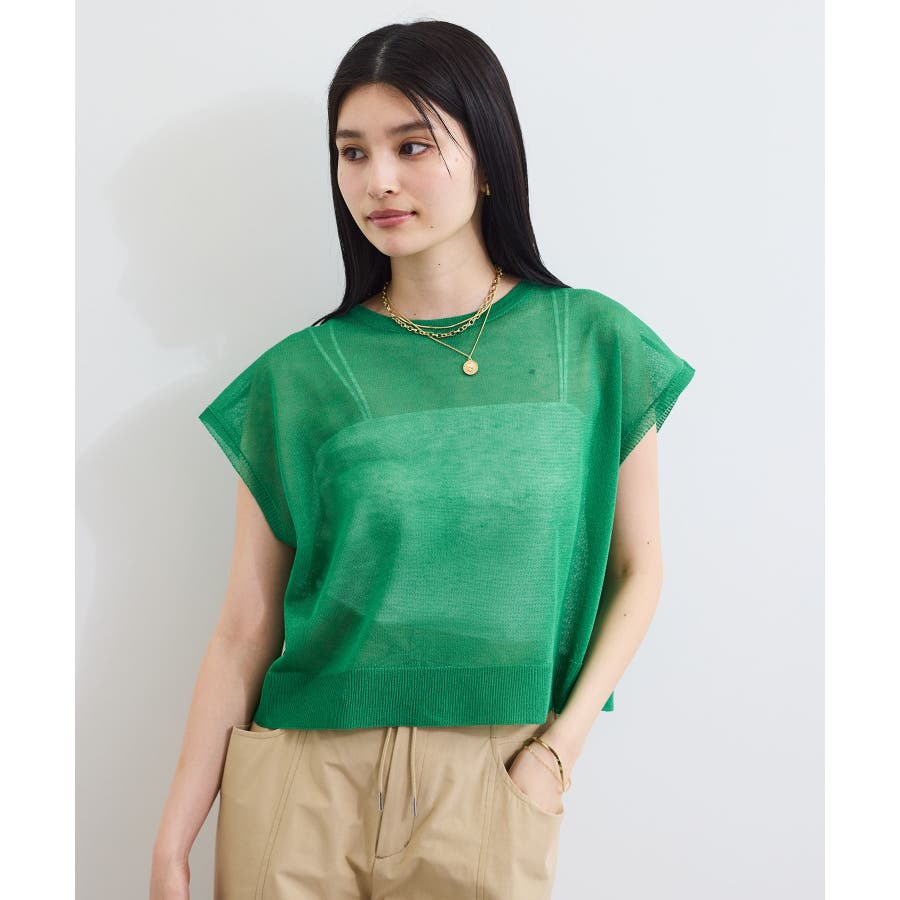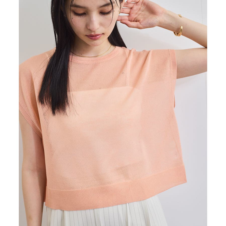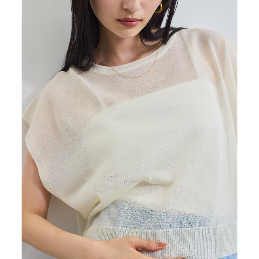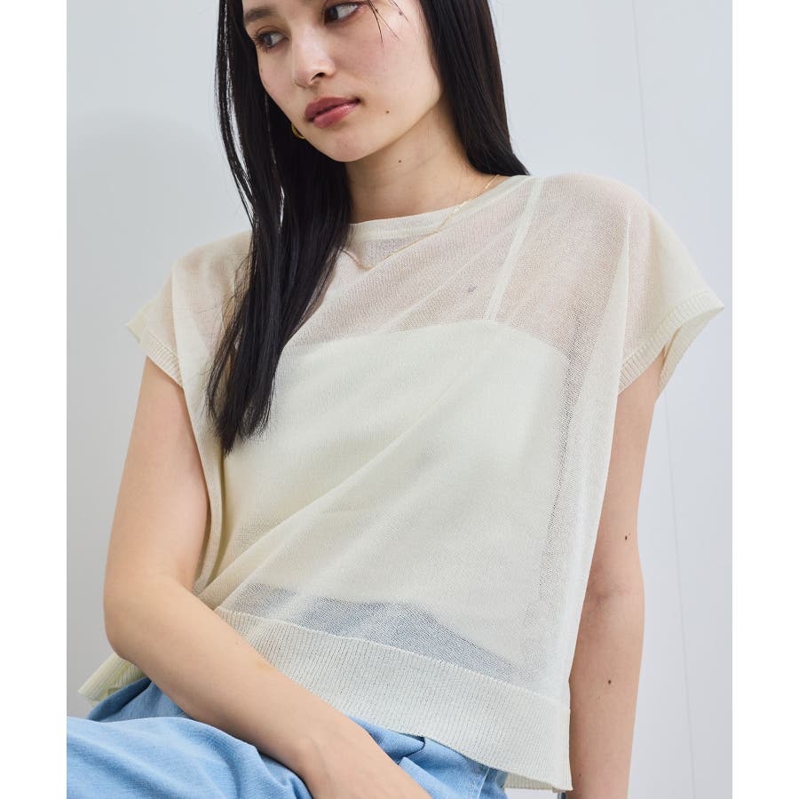 程よいシアー感とざっくり簡単なシルエットのシアーニットトップス。