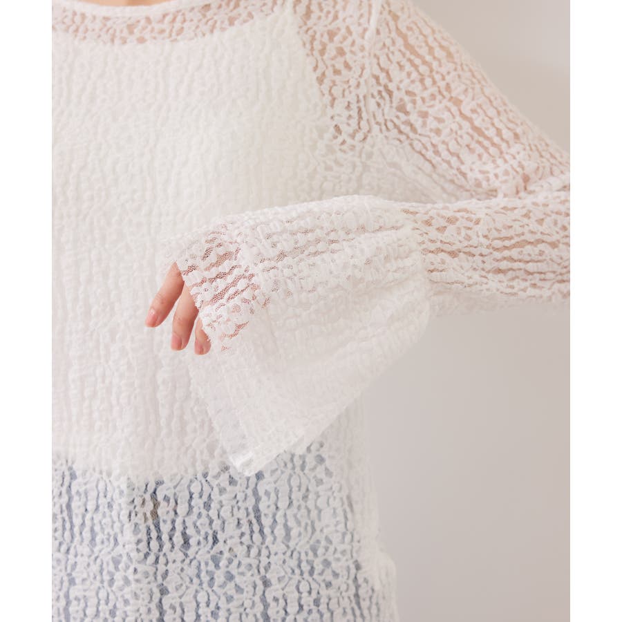 着用しやすいよう袖口のレースの分量など拘りコーディネートのアクセントになるようにしています。インナーで着ても、1枚で着ても着れロングシーズンでお楽しみ頂けます。