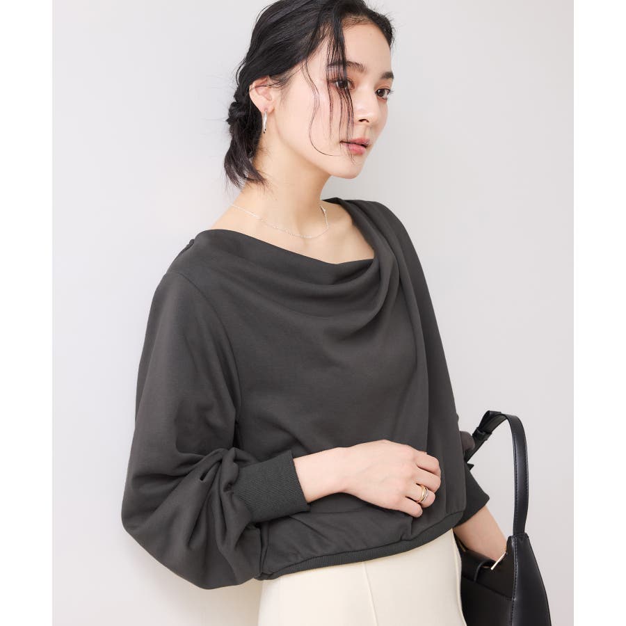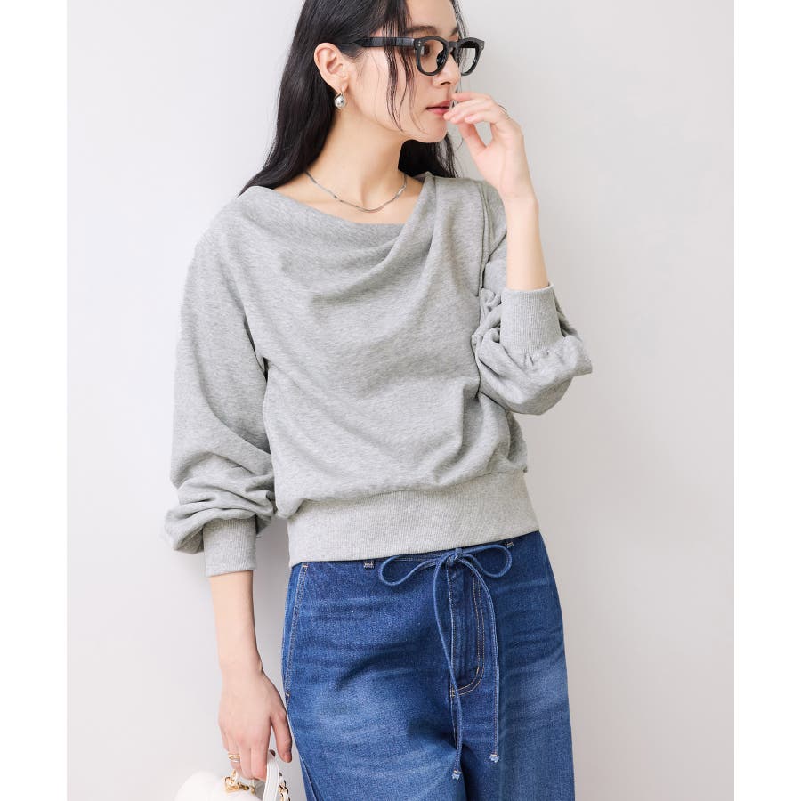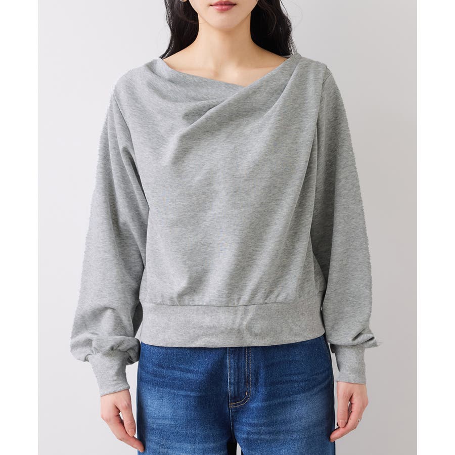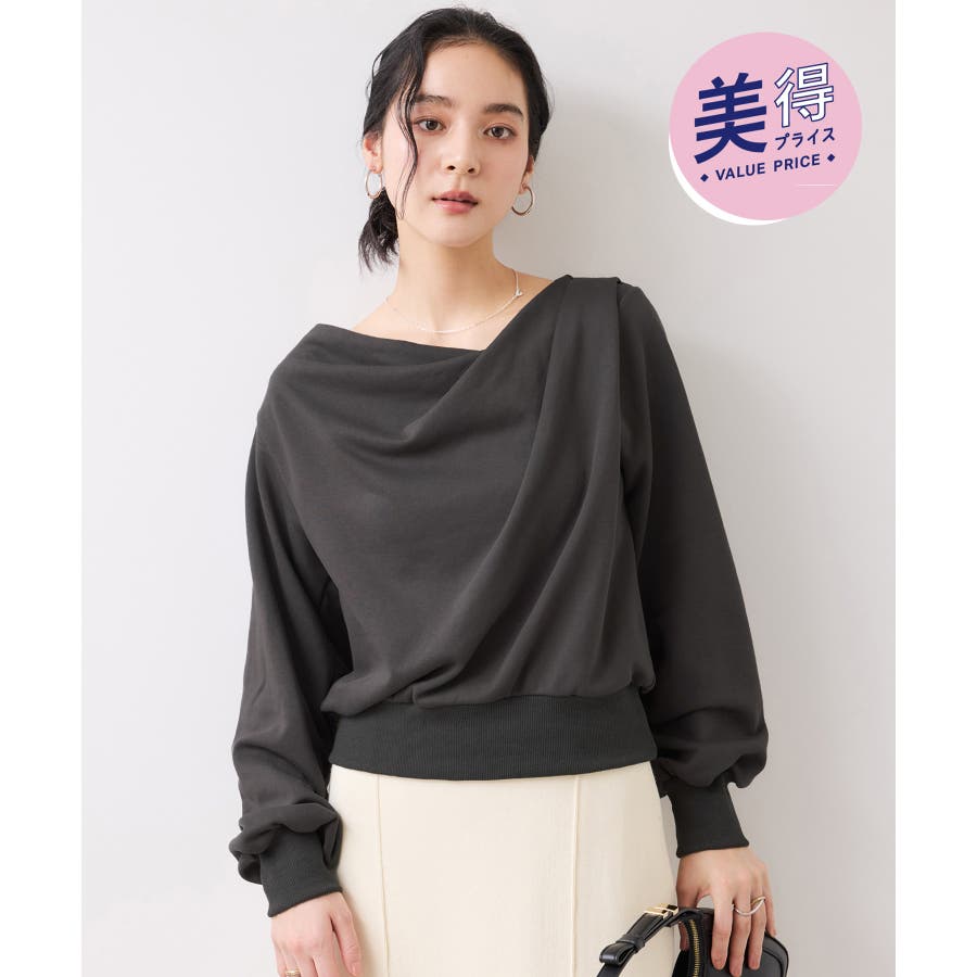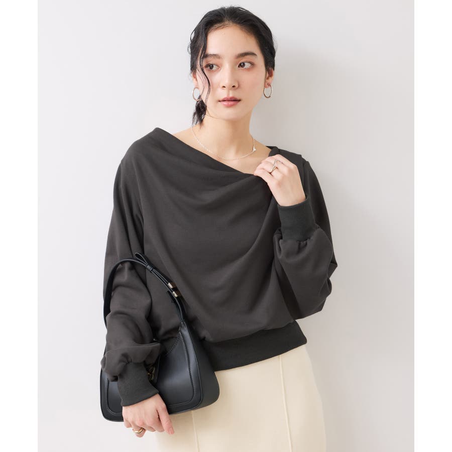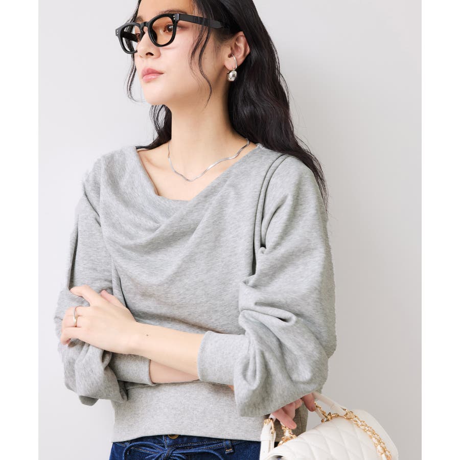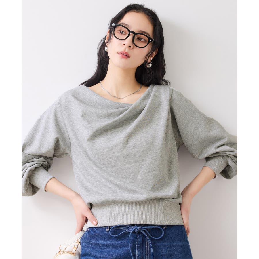 一枚でも華やかに。胸元のドレープデザインがレディなスウェット