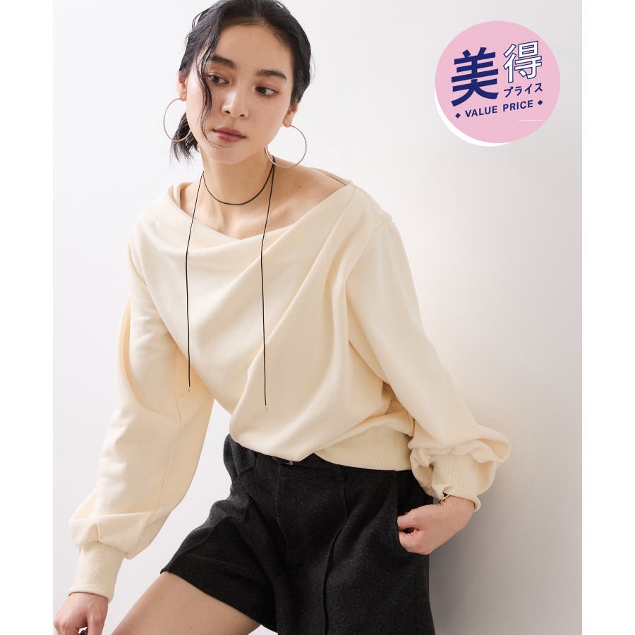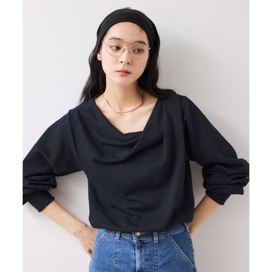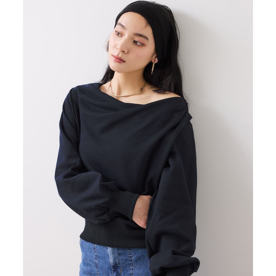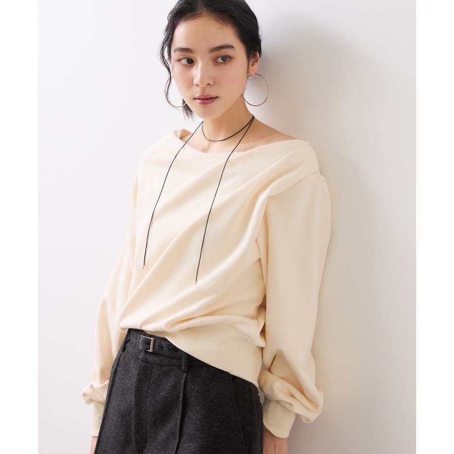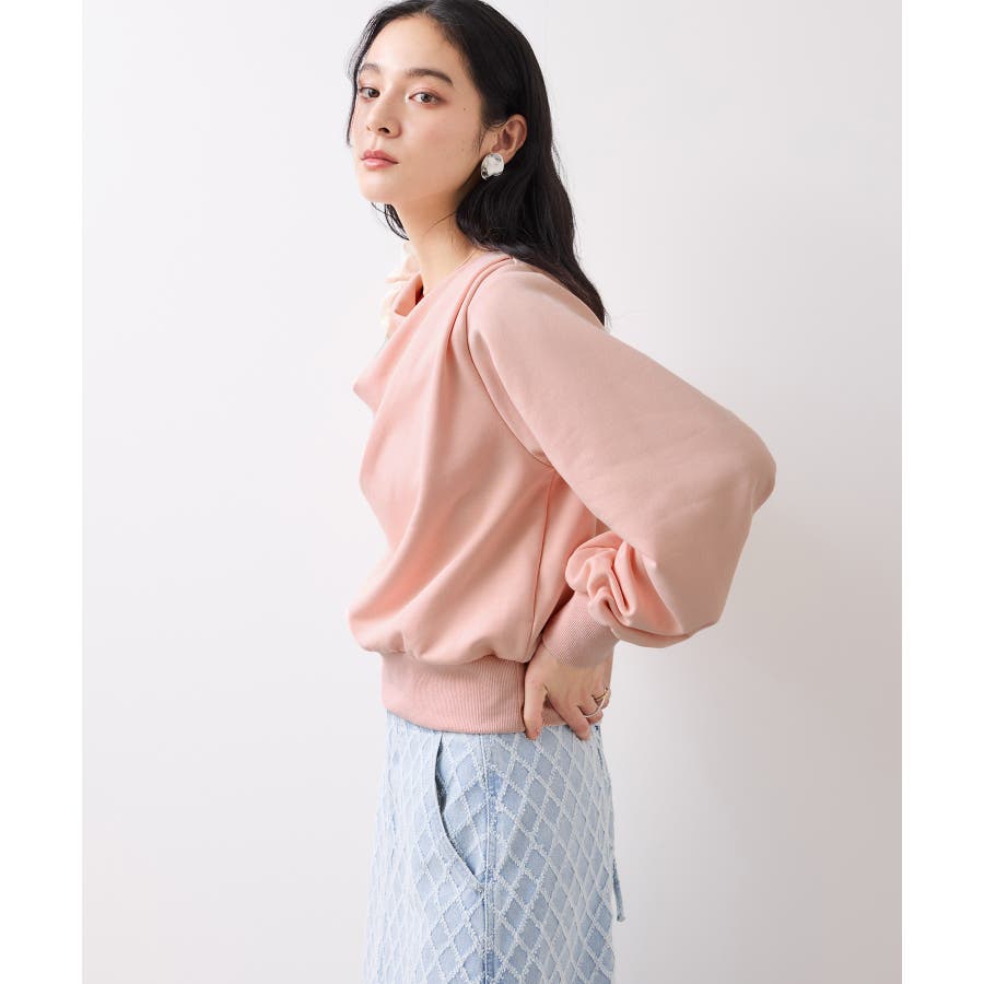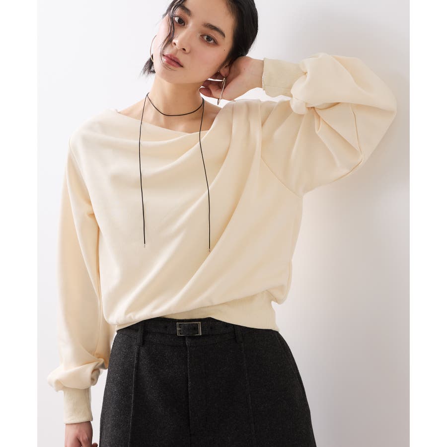 一枚でも華やかに。胸元のドレープデザインがレディなスウェット