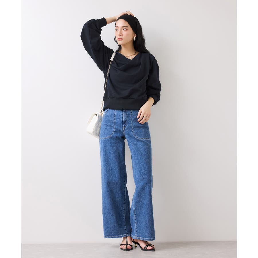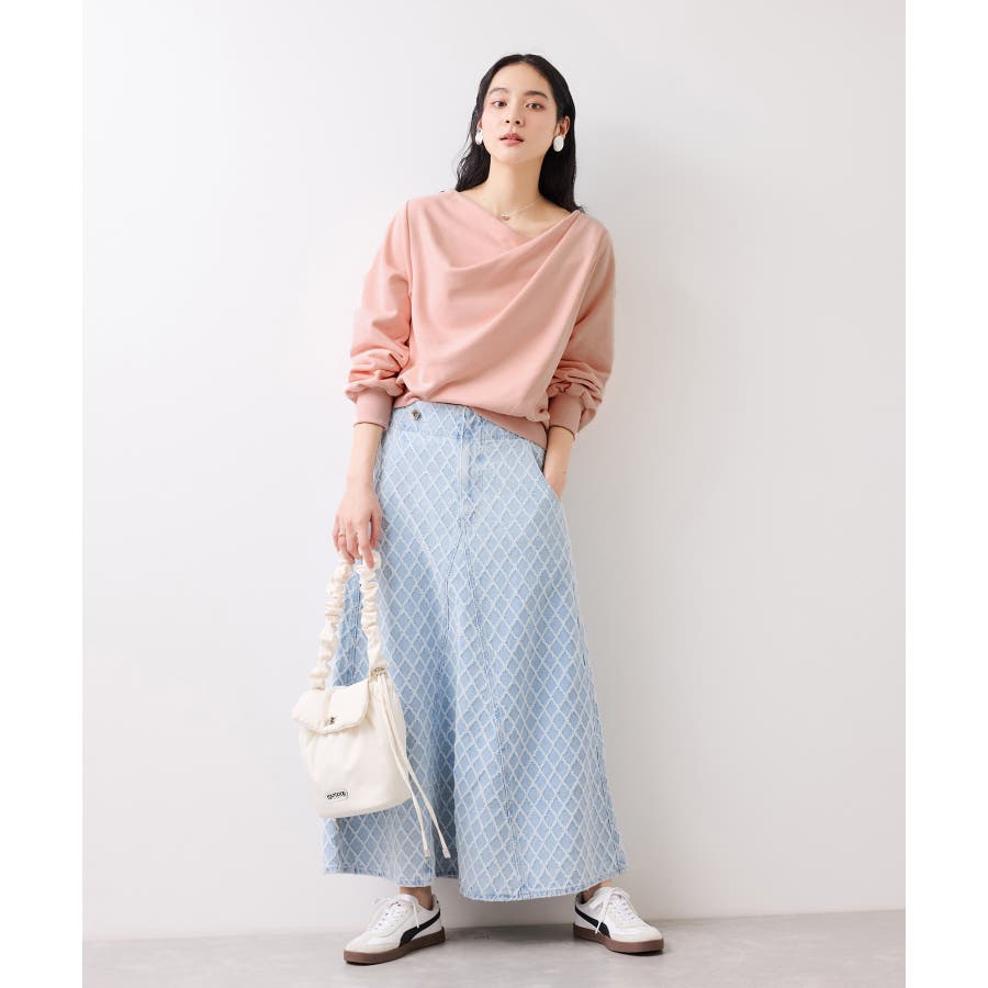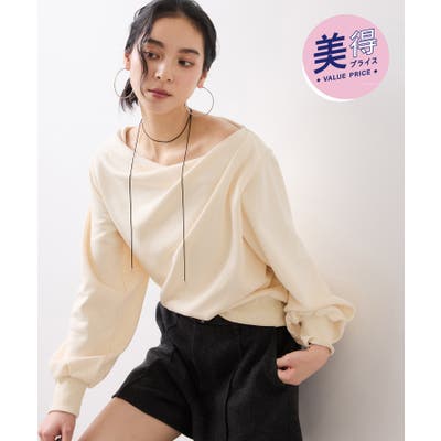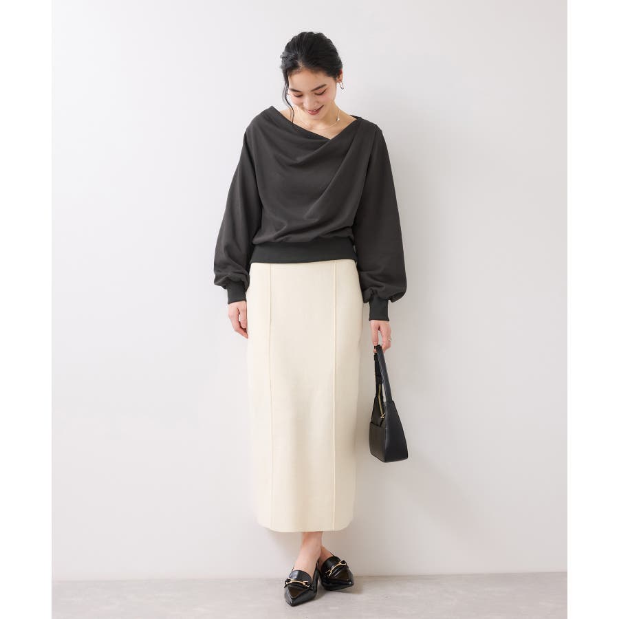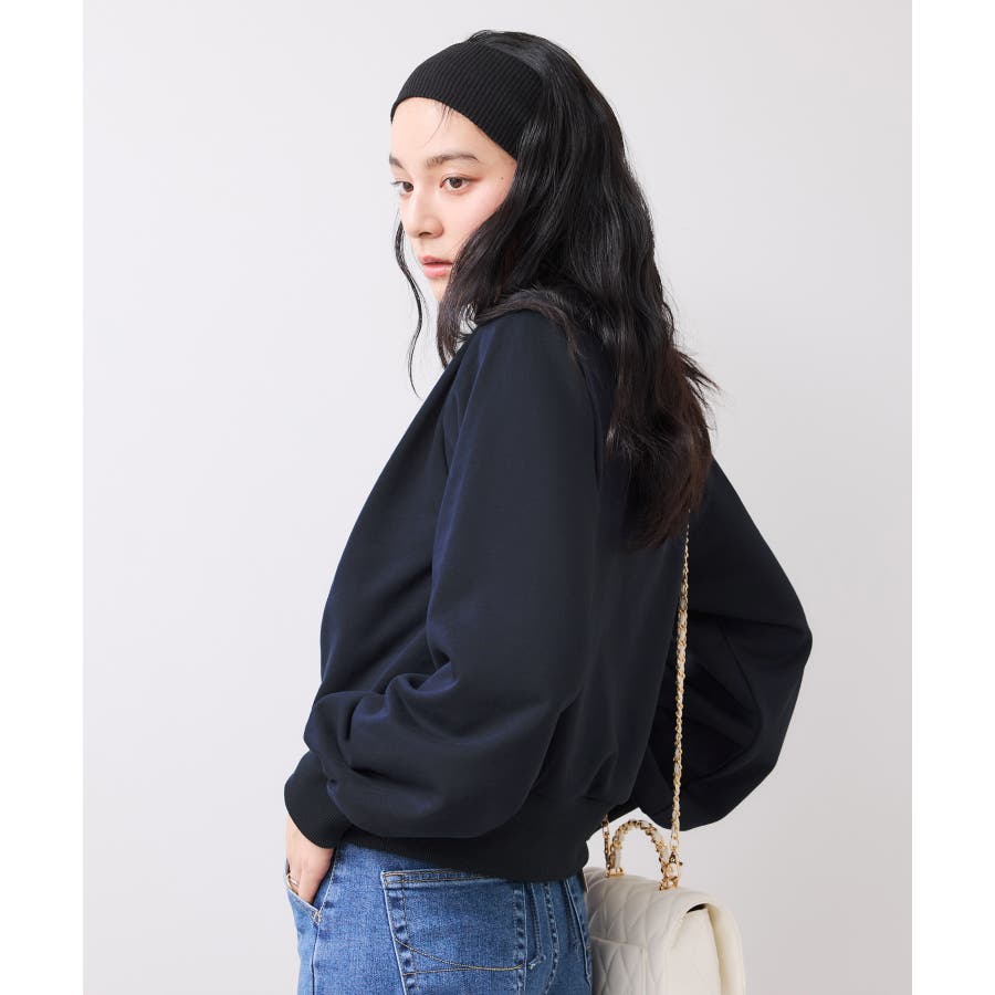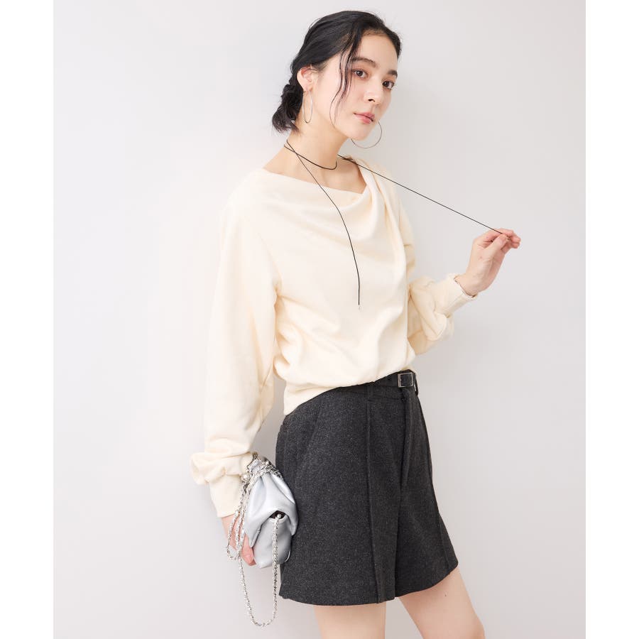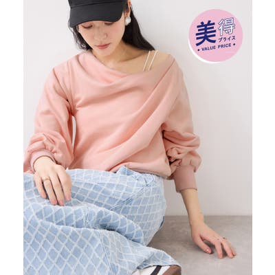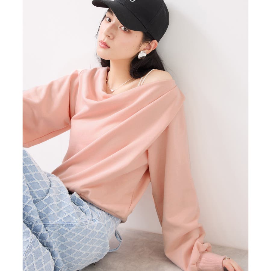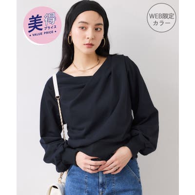 一枚でも華やかに。胸元のドレープデザインがレディなスウェット