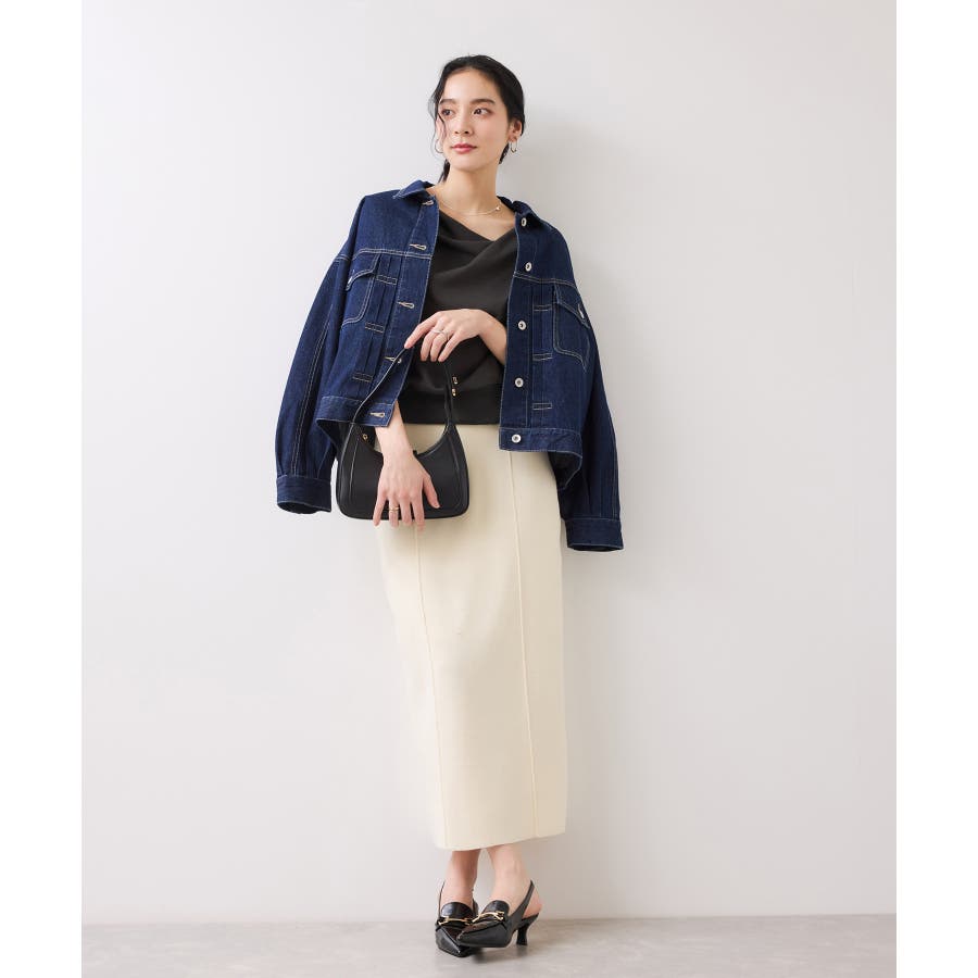 着丈もコンパクトに仕上げているので腰回りすっきりなスカートとも相性〇。マーメイドスカートでフェミニンに仕上げることもできます。