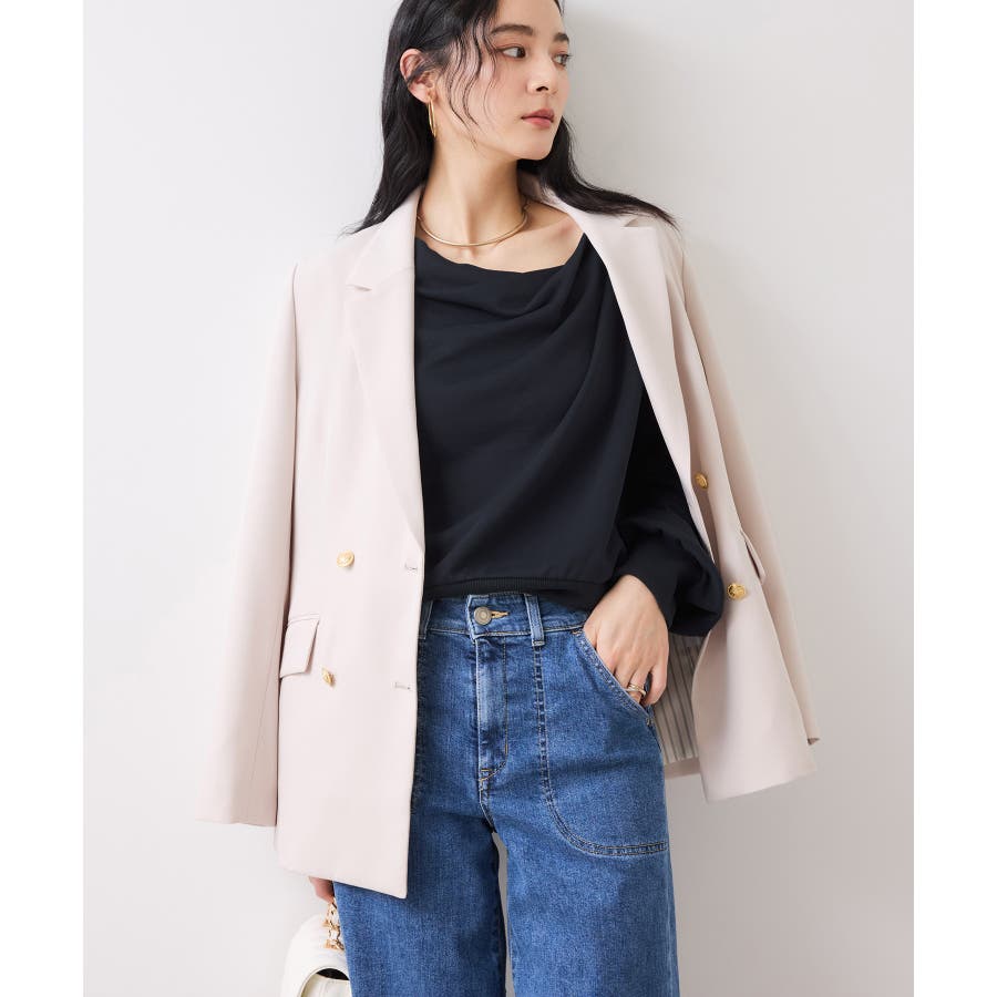 胸元の流れるようなドレープデザインがこなれ感のある1着。シンプルなボトムスに合わせても、上品なコーデにしてくれるレディライクなアイテム。
