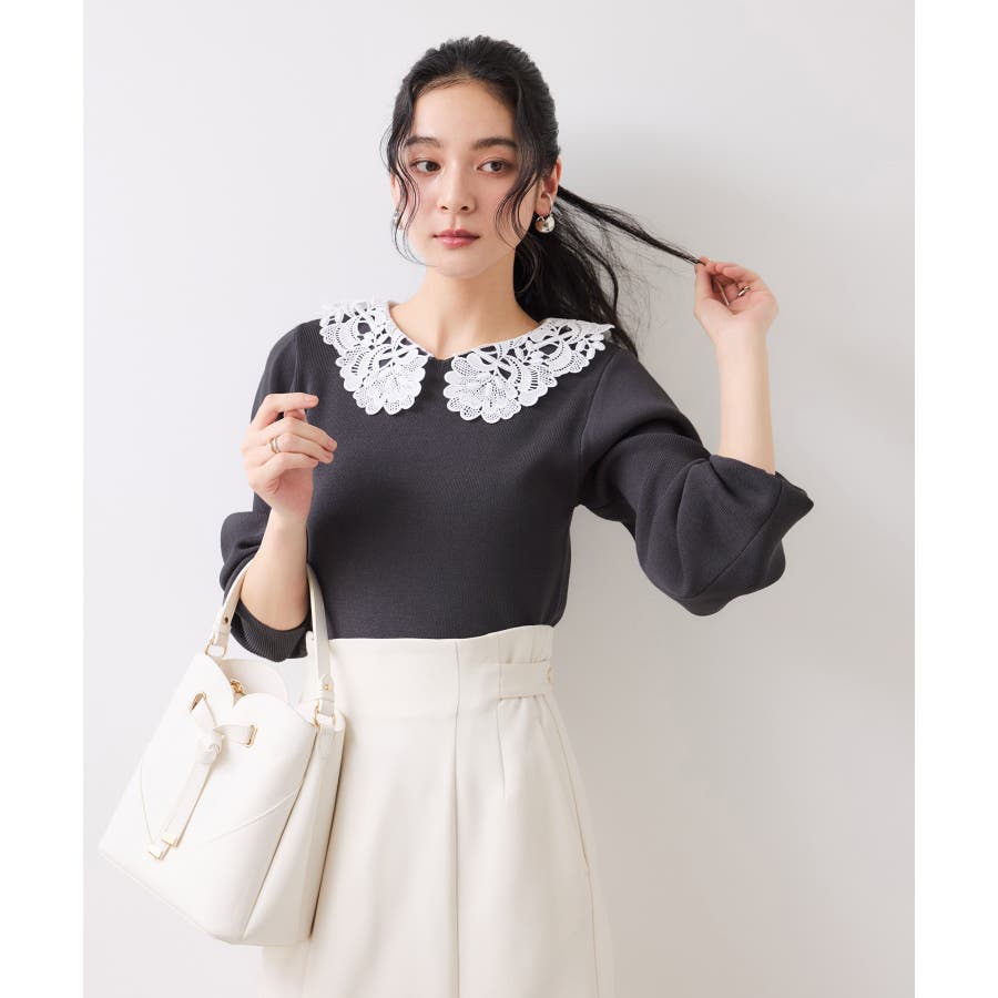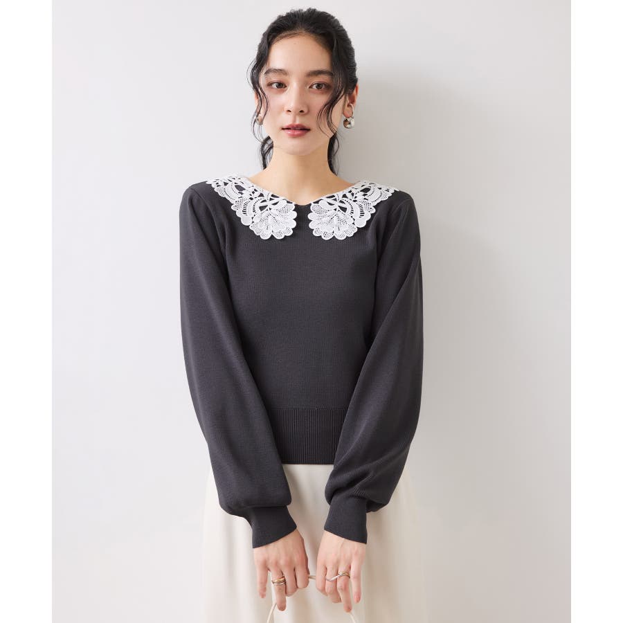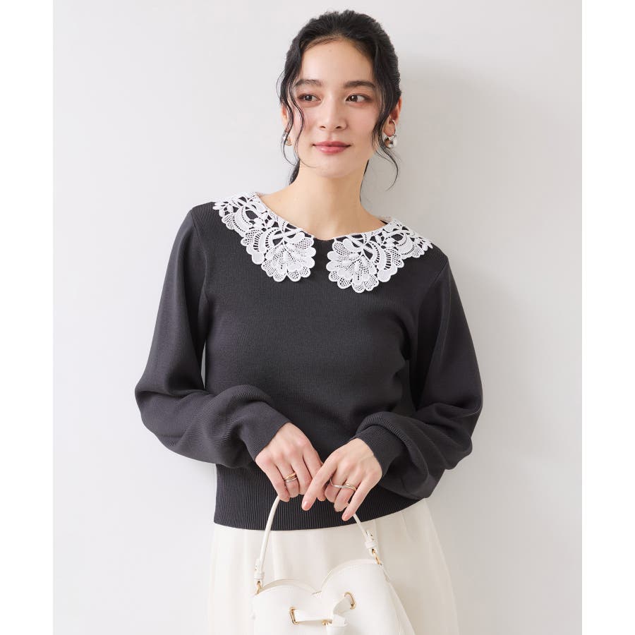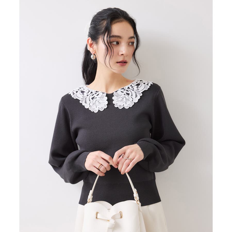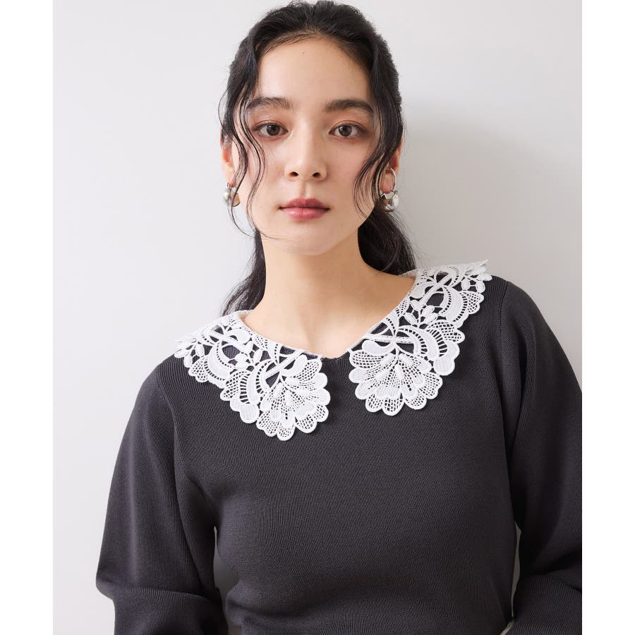 大き目のレース襟が目を引くデザインポイント!レースの柄を利用し襟を象ったこだわりの1枚です。