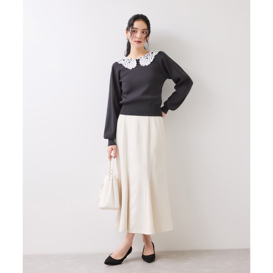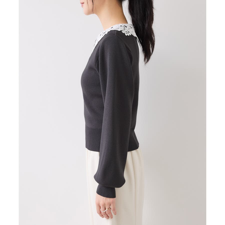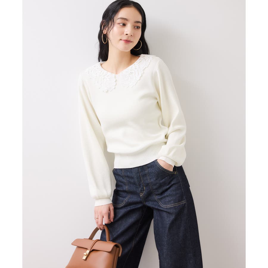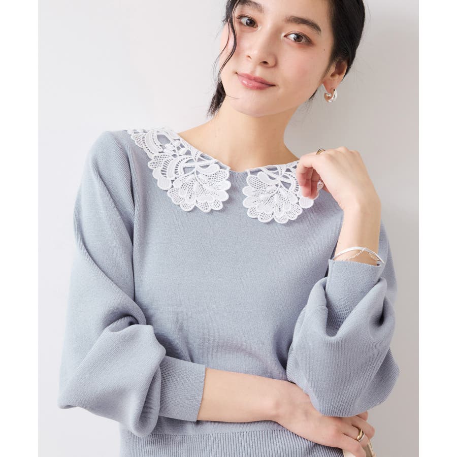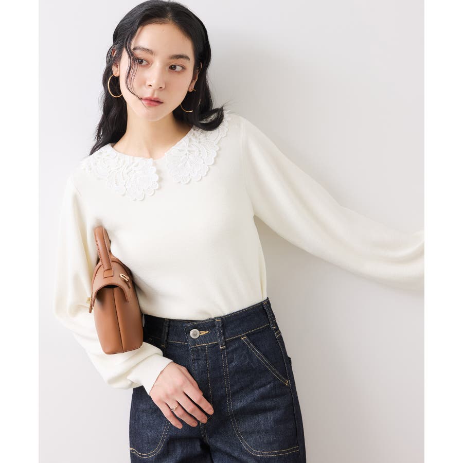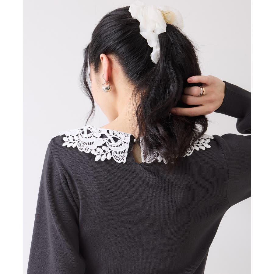 大き目のレース襟が目を引くデザインポイント!レースの柄を利用し襟を象ったこだわりの1枚です。
