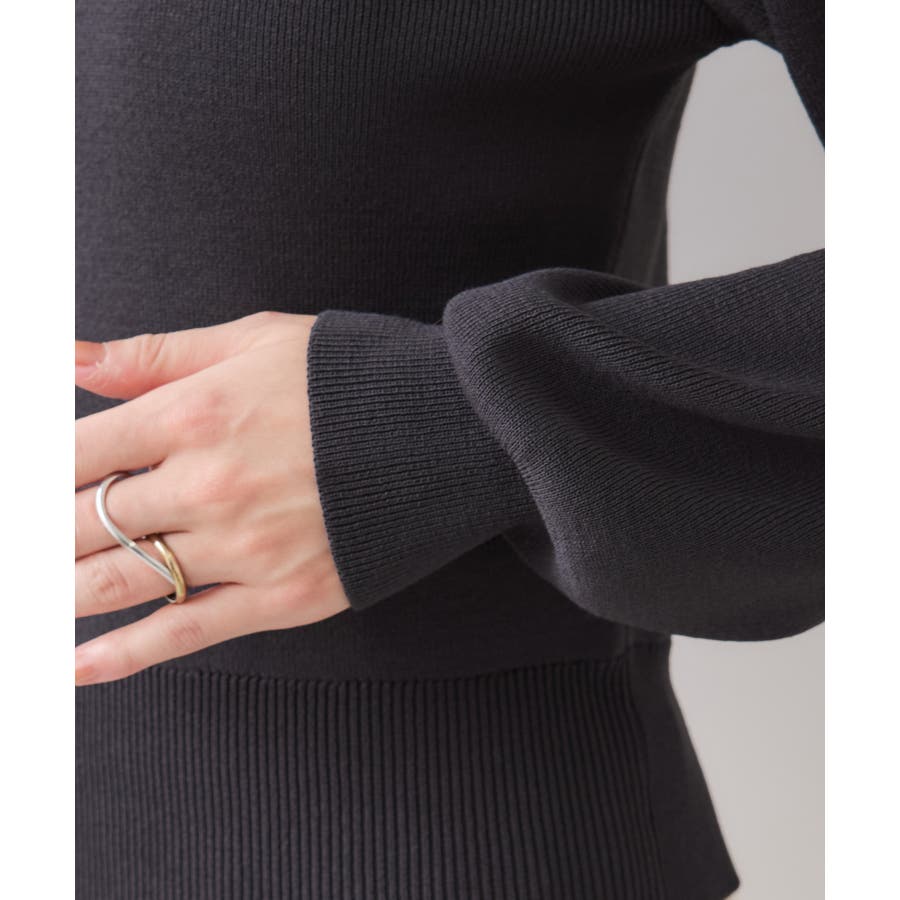 バックは着脱がしやすいよう空きがありパール釦もキュンポイント。程よくゆとりのある身頃と袖にはたっぷりとボリュームを持たせてリブでしっかりと締めたメリハリのあるシルエットに。フェミニンな印象で1枚で決まるアイテムです。