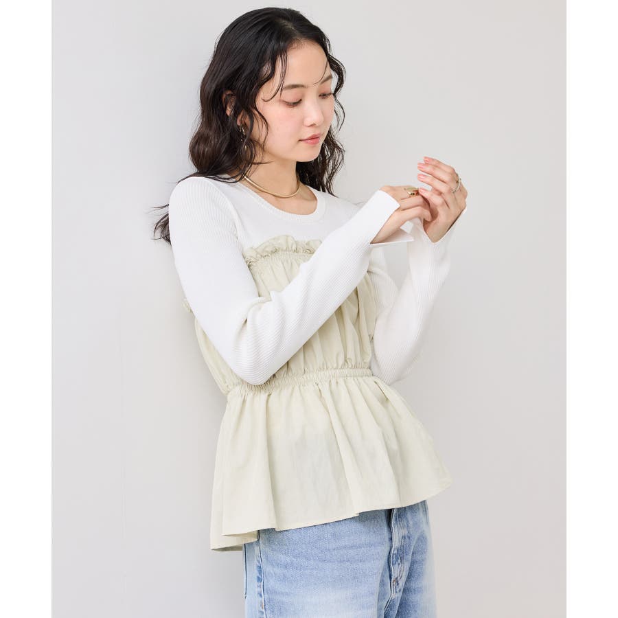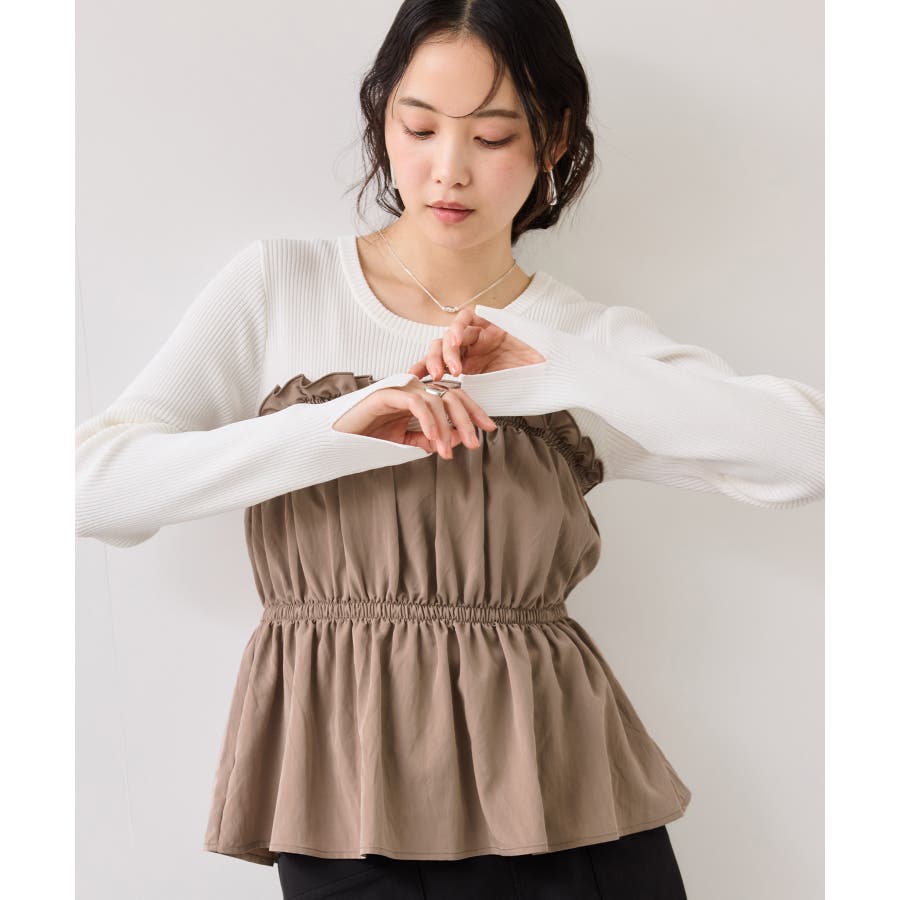シャーリングビスチェドッキングニット/イージーケア