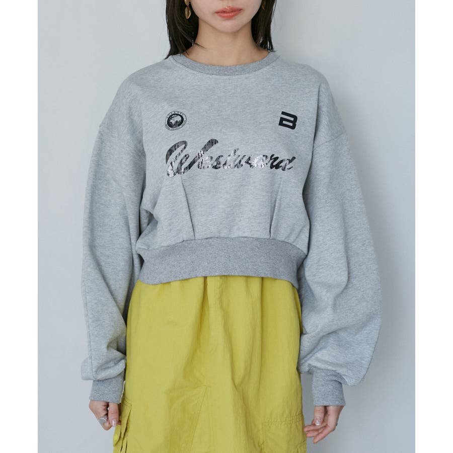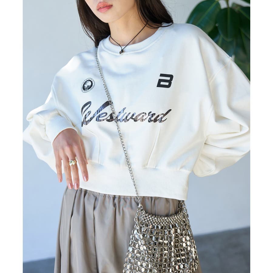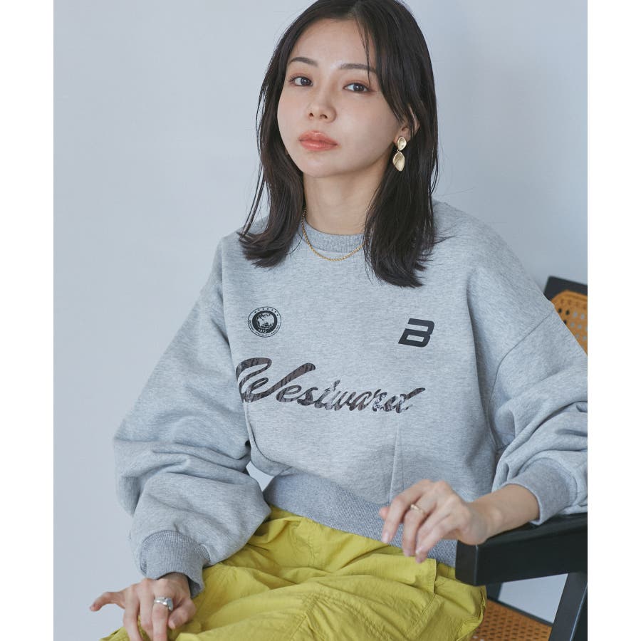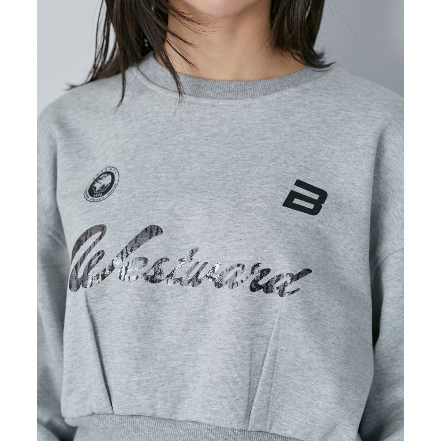 【デザイン・シルエット】 箔ロゴプリントを施したスポーティカジュアルなスウェットです。