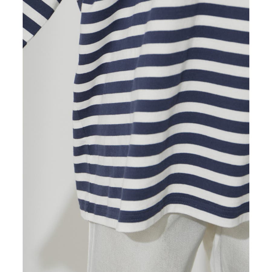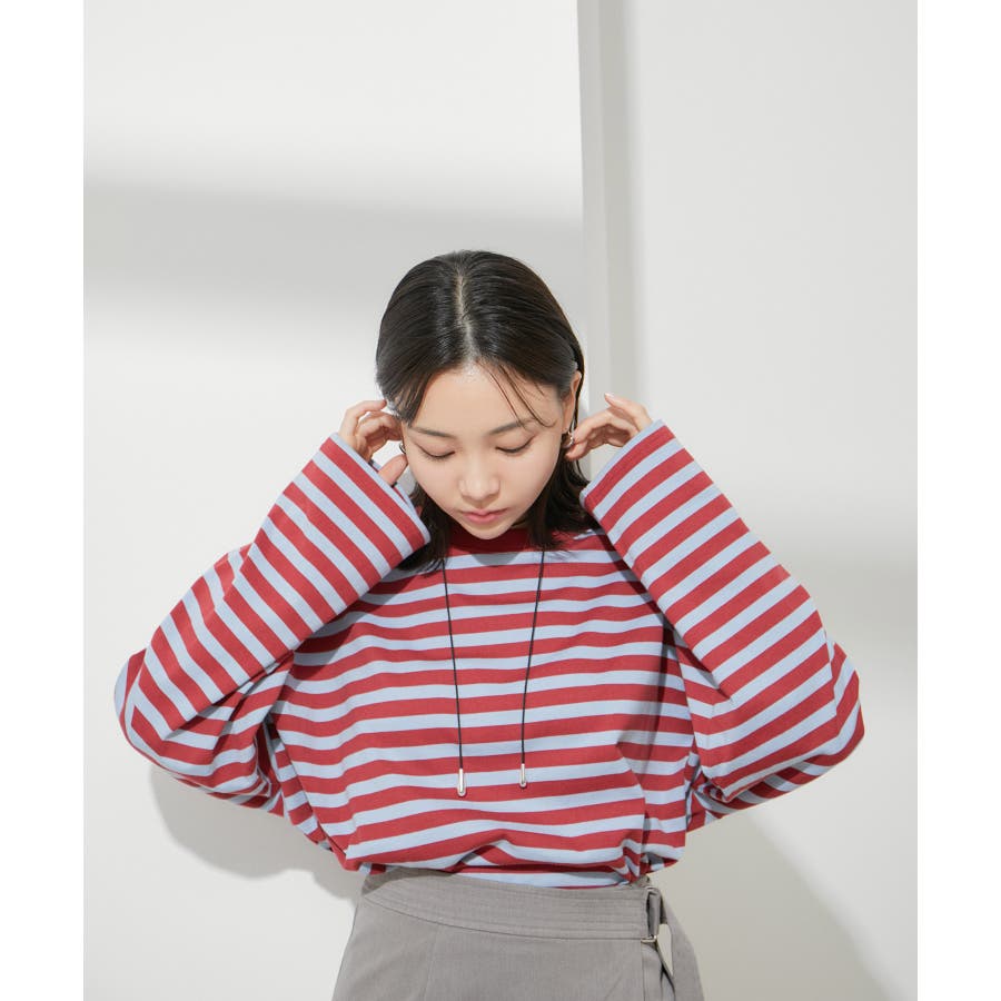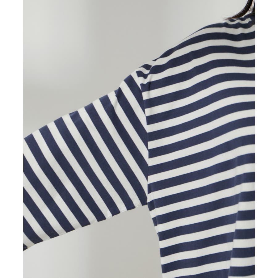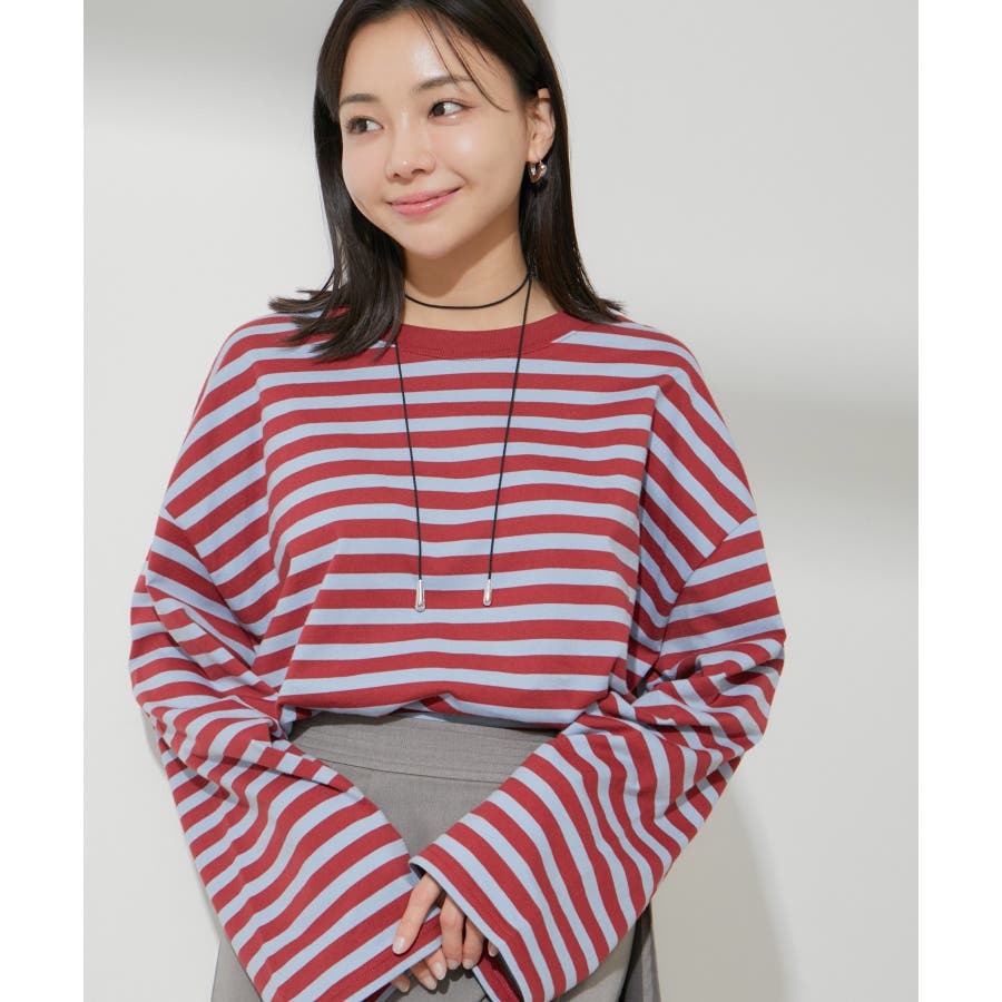 ◆2024春夏◆ 【デザイン・シルエット】 ワイドスリーブのオーバーサイズボーダーカットソーです。 ・袖がワイドスリーブになっているのがトレンドポイント。 ・バックネックの部分にぷっくり刺繍でワンポイント。 ・ヒップが隠れるゆったりオーバーサイズ。 【素材】 天竺カットソー素材を使用。 気軽に洗濯機洗いができるのも嬉しいポイントです。 【カラー】 ベーシックなネイビー×ホワイトボーダーと、今年一押しのトレンドカラーでもあるボルドー×サックスブルーボーダーの2色展開。 【おすすめのスタイリング】 袖口がワイドスリーブになっているので、カジュアルになりすぎないところが可愛いです。 デニムとの相性はもちろん、Iラインスカートとの相性も抜群です。 インアウトどちらでスタイリングしても◎。 ----------------------------- 裏地:なし 光沢感:なし 透け感:なし 伸縮性:あり 生地の厚さ:普通 季節:春、秋 ----------------------------- 【モデル着用サイズ】 全色モデル身長:155cm、着用サイズ:F ※こちらは、WEB店舗/アウトレット店舗限定の商品です。 ※画像の商品はサンプルです。 実際の商品と仕様、加工、サイズが若干異なる場合がございます。