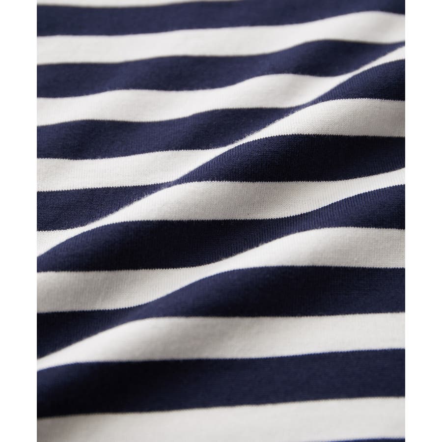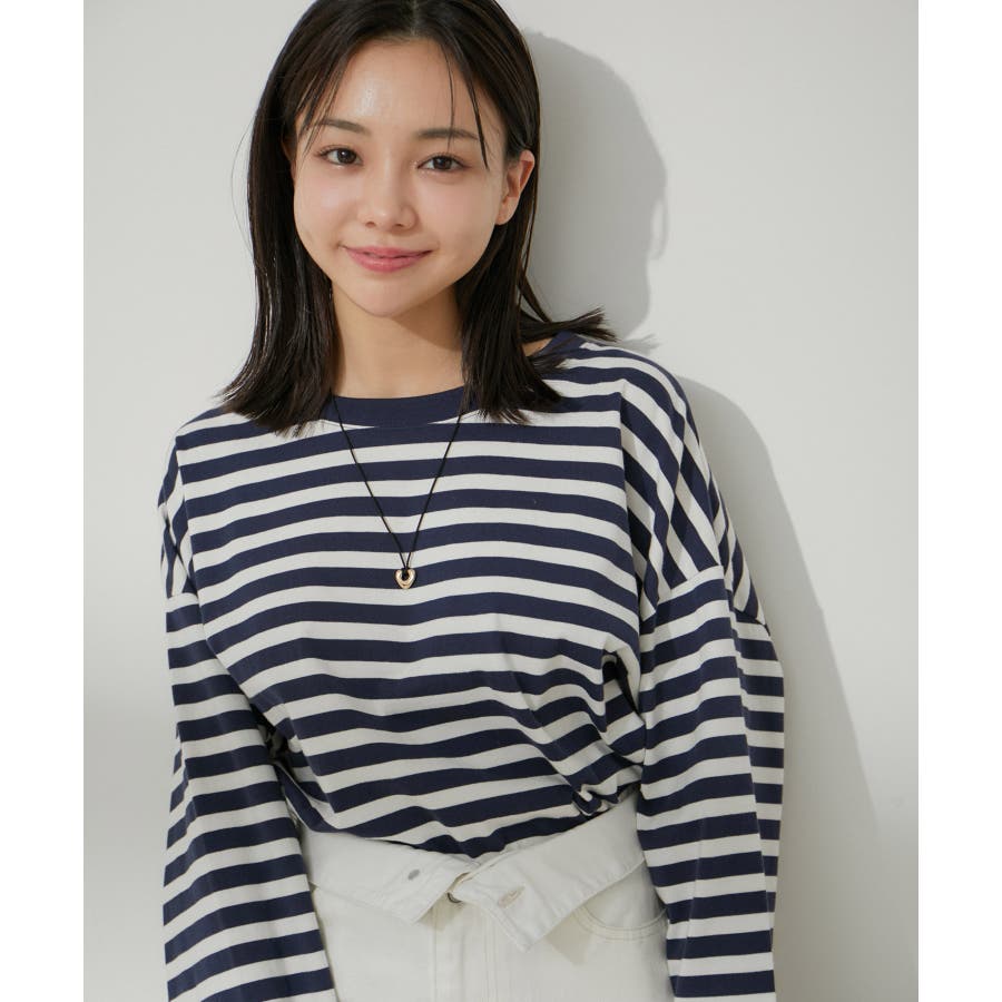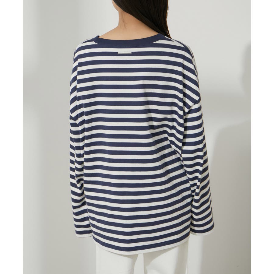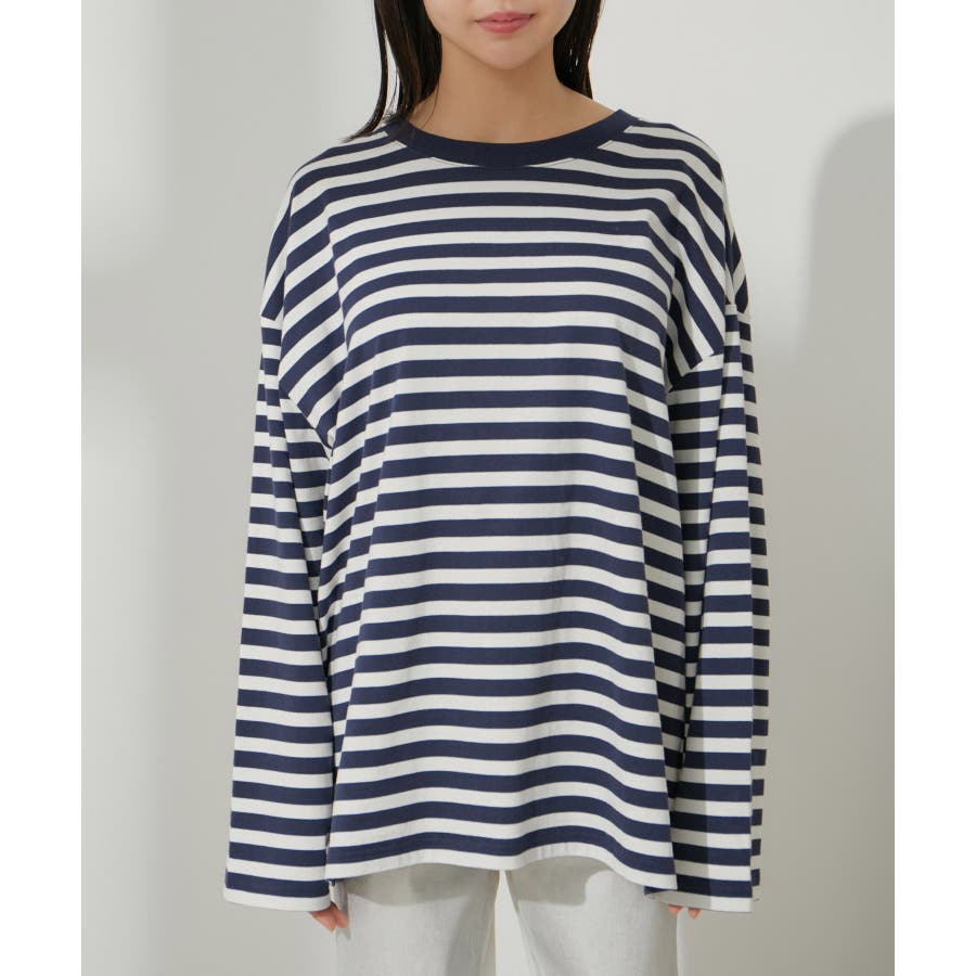 ◆2024春夏◆ 【デザイン・シルエット】 ワイドスリーブのオーバーサイズボーダーカットソーです。 ・袖がワイドスリーブになっているのがトレンドポイント。 ・バックネックの部分にぷっくり刺繍でワンポイント。 ・ヒップが隠れるゆったりオーバーサイズ。 【素材】 天竺カットソー素材を使用。 気軽に洗濯機洗いができるのも嬉しいポイントです。 【カラー】 ベーシックなネイビー×ホワイトボーダーと、今年一押しのトレンドカラーでもあるボルドー×サックスブルーボーダーの2色展開。 【おすすめのスタイリング】 袖口がワイドスリーブになっているので、カジュアルになりすぎないところが可愛いです。 デニムとの相性はもちろん、Iラインスカートとの相性も抜群です。 インアウトどちらでスタイリングしても◎。 ----------------------------- 裏地:なし 光沢感:なし 透け感:なし 伸縮性:あり 生地の厚さ:普通 季節:春、秋 ----------------------------- 【モデル着用サイズ】 全色モデル身長:155cm、着用サイズ:F ※こちらは、WEB店舗/アウトレット店舗限定の商品です。 ※画像の商品はサンプルです。 実際の商品と仕様、加工、サイズが若干異なる場合がございます。