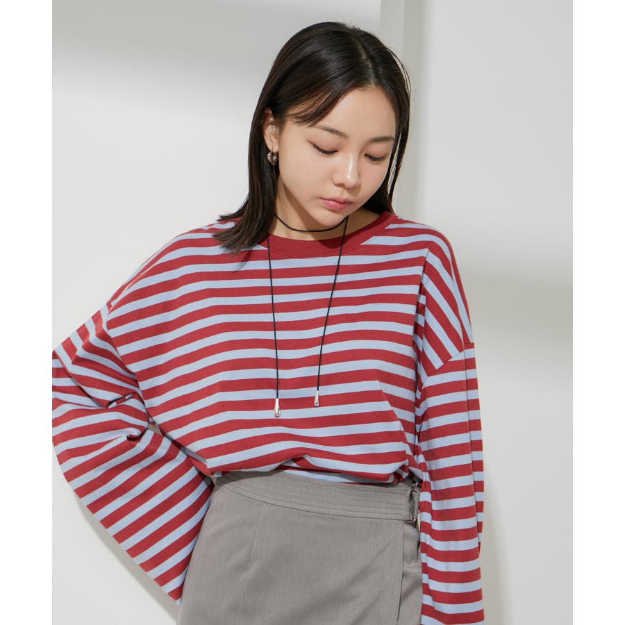 【EC/OUTLET】ワイドスリーブマルチボーダーロングTシャツ【洗える】