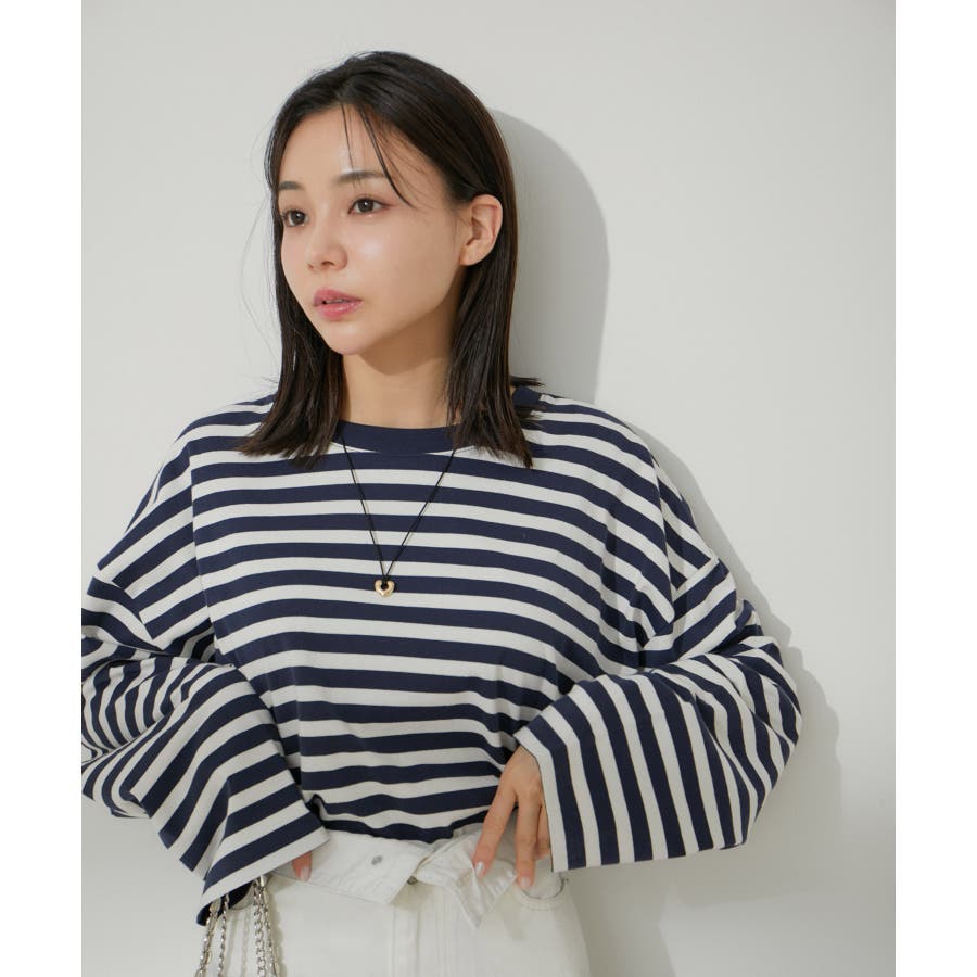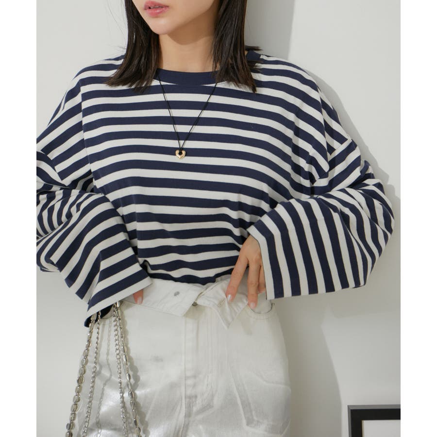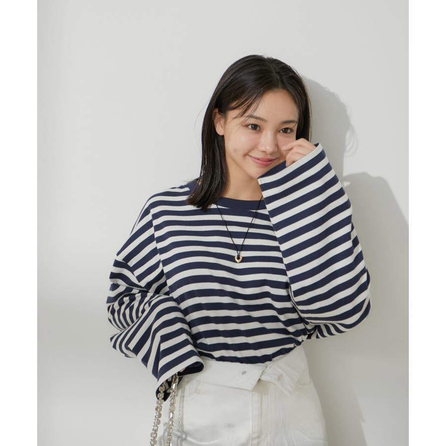 ◆2024春夏◆ 【デザイン・シルエット】 ワイドスリーブのオーバーサイズボーダーカットソーです。