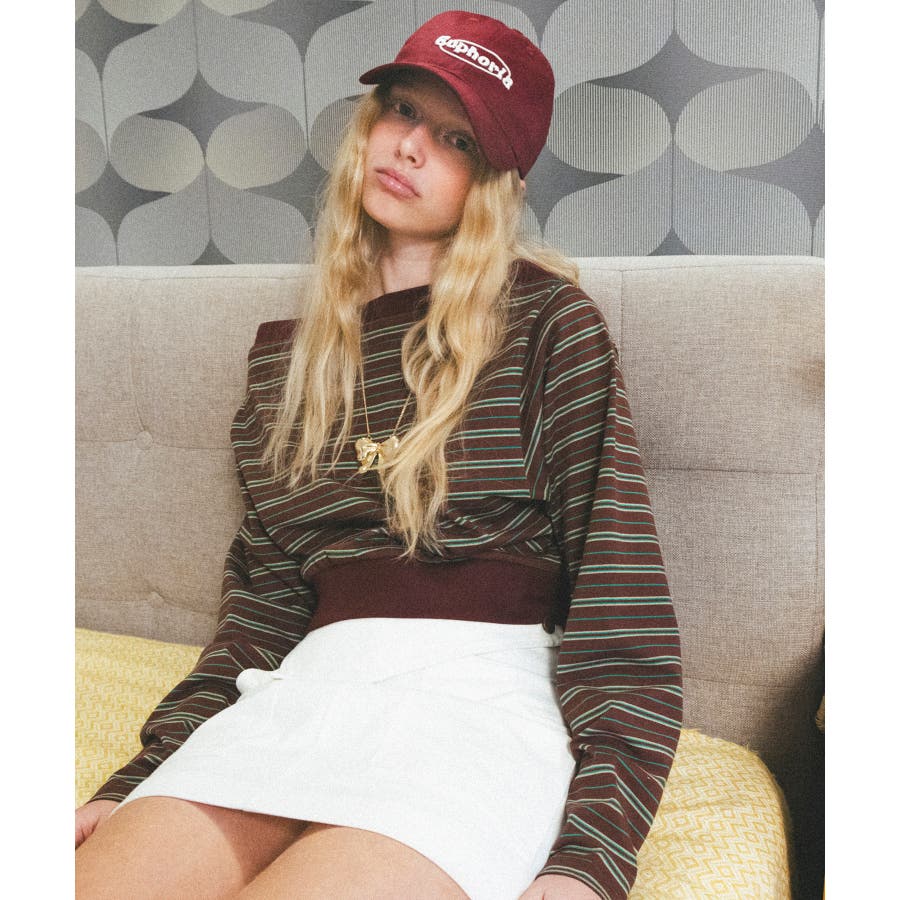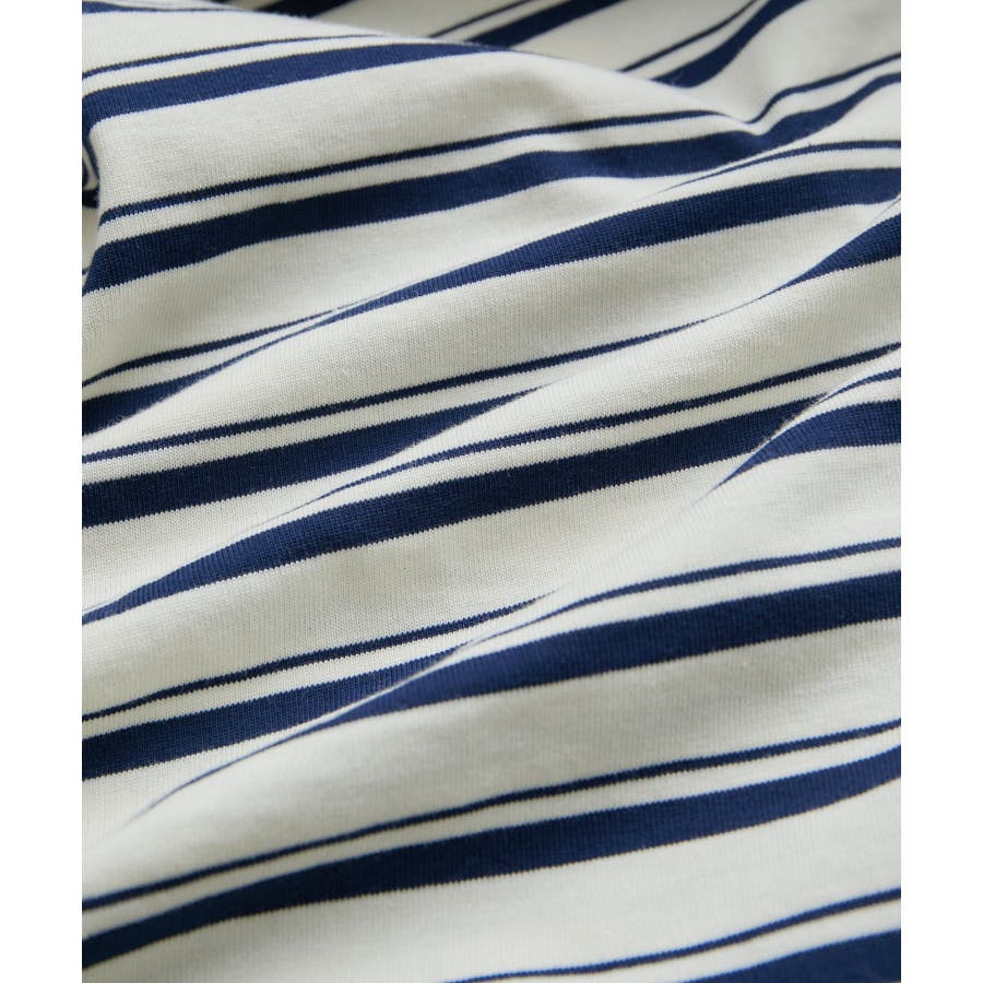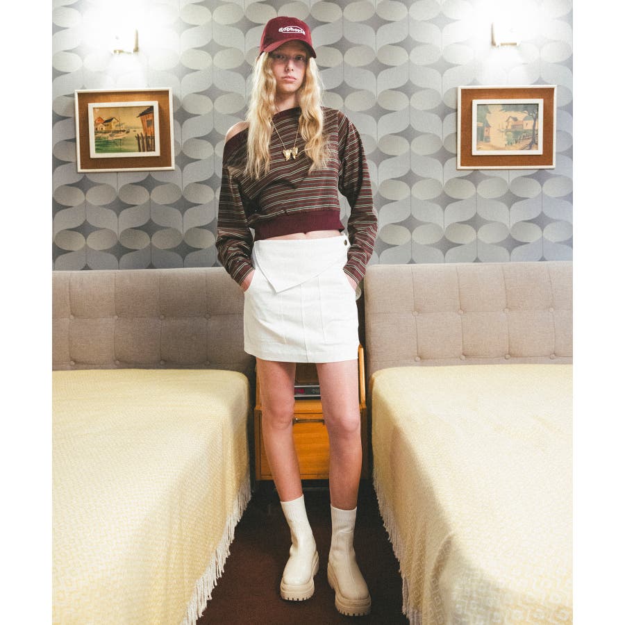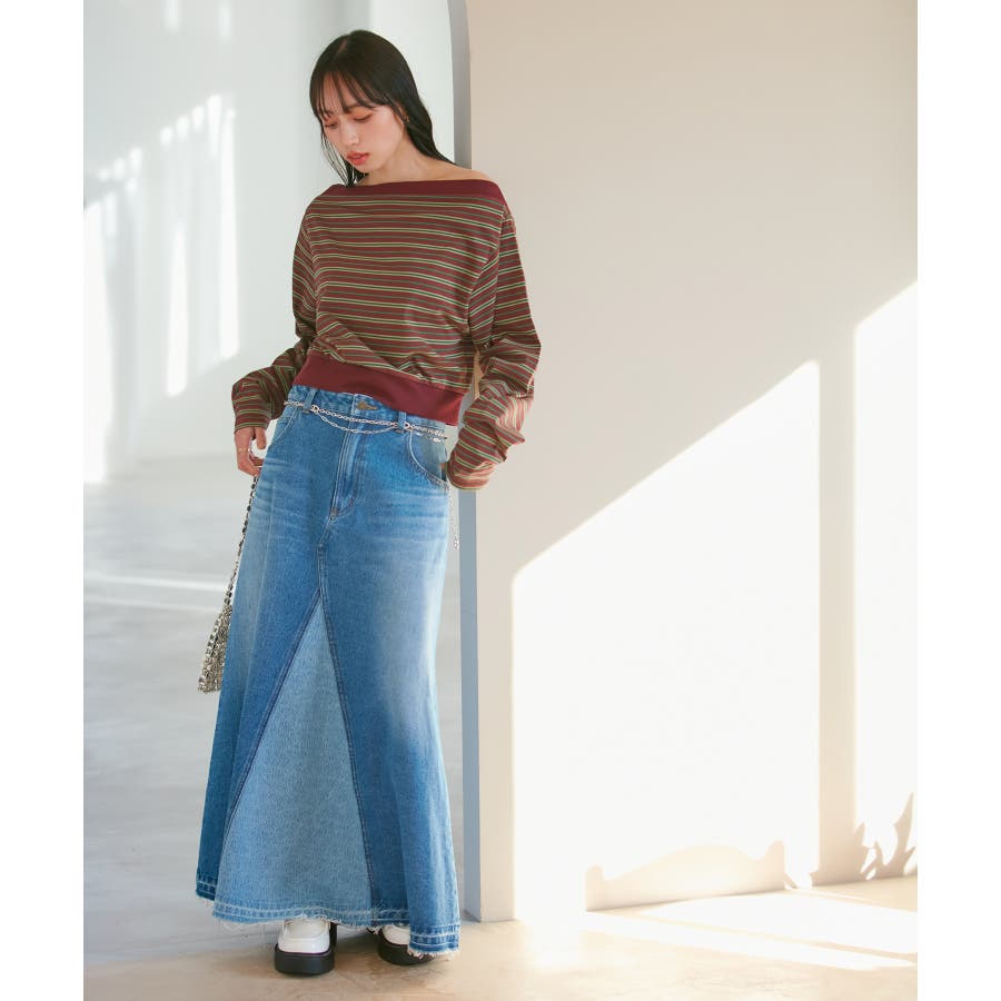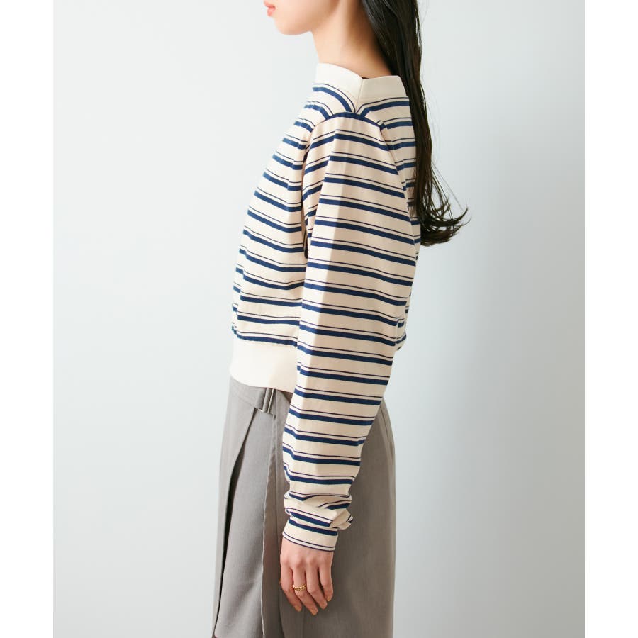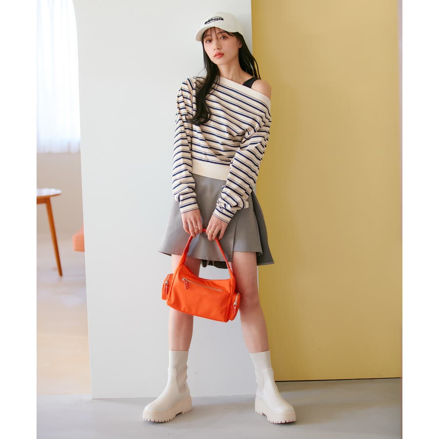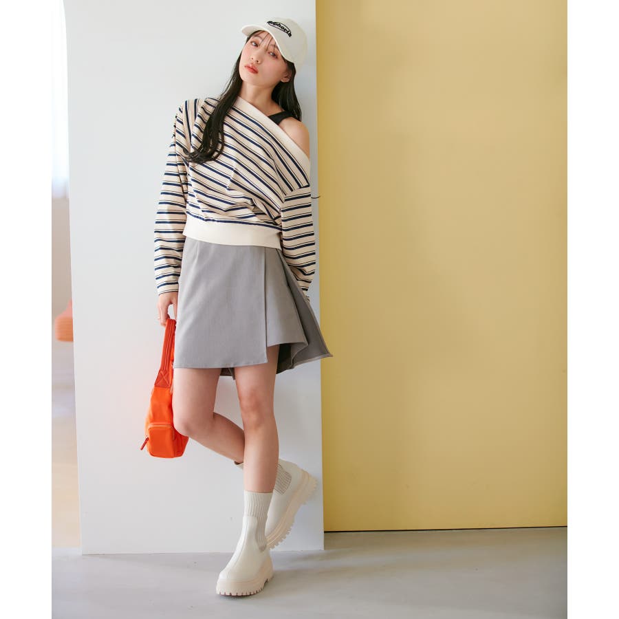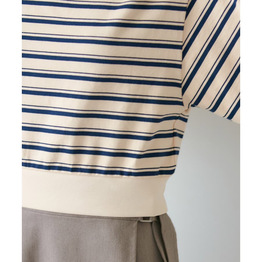 ◆2024春夏◆ 【デザイン・シルエット】 カジュアルな印象のマルチボーダーを女性らしく着くずせるオフショルデザイントップスです。