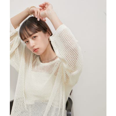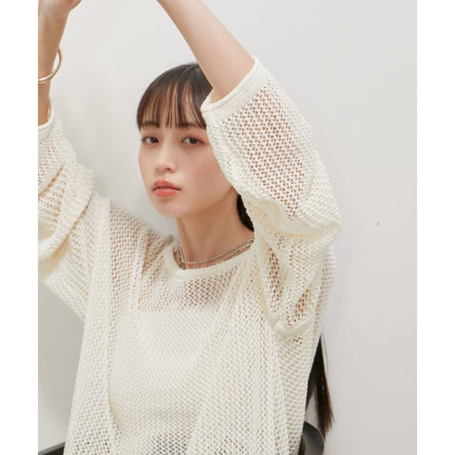 メッシュサマーニットトップス